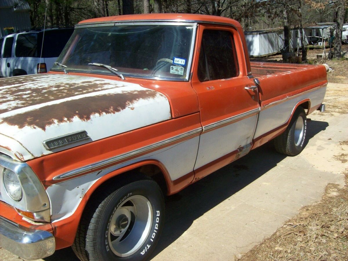 1967 Ford F-100 . TEXAS TRUCK BOUGHT IN DALLAS...RUNS,DRIVES MOTOR IS 351 OUT OF LATER FORD TRUCK. POWER... STEERING & BRAKES TILT INSTALLED WORKS GOOD EVEN BLINKERS.. DUAL EXHAUST HEALTH & AGE IS FORCING ME TO SELL ALL MY OLD CAR, TRUCKS BODY IS SOLID WITH REPAIRABLE DENTS...EXCEPT FRONT LEFT FENDER.. RUST WHERE WATER SET IN FLOORS SMALL TO MED.HOLES ..._HOOD_ IS TOAST SOME ONE TOOK ORIGINAL ONE.. BED GOOD NO HOLES NOT MANY DENTS JUST RUST ..PASSENGER DOOR & LOWER FENDER HAVE RUST & BONDO FRAME SURFACE RUST SOME SMALLER ISSUES PROBABLY?? I HAVE REPLACED THE RADIATOR WITH A NEW ALUMINUM ONE TO MOVE IT AROUND PROPERTY. WAS DRIVEN UP BACK ROADS UNTIL RIGHT FRONT WHEEL CYL.STARTED LEAKING MAKING THEM WEAK I HAVE NOT DONE ANYTHING BUT RADIATOR THE MOTOR DOES HAVE A DRIP ON FREEZE PLUG BY STEERING (EASIER ONE TO GET TO ) TO BE ROAD READY AND LEGAL.....NEEDS AT LEAST BRAKES FIXED WINDSHIELD MIRRORS HORN TIRES??? TRED BUT OLDER THERE ARE PROBAABLY MORE BUT I AM TRYING TO BE THROUGH AS I CAN CLEEAN TITLE AND TEXAS APP ITS NOT PERFECT BUT IS DESIREABLE THANKS FOR LOOKING SEE MY FEEDBACK |