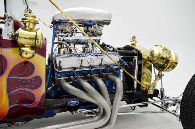 | 1923 Ford T Bucket 1923 Ford T Bucket finished in Burgundy with flames over Wine interior. This beautiful vintage ride was completely built from the ground up using only the highest quality parts and has only been driven 7. 81 miles. It is extremely fast thanks in part to the huge '71 460ci V8 Cobra motor that is estimated to push out over 500 horsepower! The Ford running gear continues with the C-6 automatic transmission and 9" Ford rear end. Also featuring; tube frame. dual quad 4-barrell Holley carburetors. Edelbrock tunnel ram intake. MSG ignition. upgraded disc brakes. dual side-exit exhaust. Tru-spoke wire wheels. Mickey Thompson 14" wide rear tires. woodgrain dash. VDO gauges. rear luggage rack. custom flame graphics and chrome/bronze parts throughout that really makes the car shine. This bucket "shakes the ground" when it drives by and will turn heads wherever it goes! This car has gone through our Cats Exotics 75 point used vehicle inspection and is available upon request. Please Note: If you are viewing this vehicle on a site other than CatsExotics. com. please head to our website for more photos and video of this vehicle! Cats Exotics offers a wide variety of Lease and Purchase options! Call for more details! *If payment example is displayed then payment is calculated to reflect a 20% cash/trade equity down payment for a maximum term of 144 months with an APR of 4. 99%. Rates and terms are subject to change and loans are subject to individual credit approval. Not all applicants will qualify. All taxes and state fees will be an additional cost. OAC means On Approved Credit. The payment provided by this calculation is for illustrative purposes only and should not be considered an offer to extend credit or an offer of sale. Credit application and approval required. Actual payment and interest rate may vary with each individual situation. Be sure to consult a financial professional prior to relying on the information outlined above. These calculations are intended for illustrative purposes only and accuracy is not guaranteed. This Vehicle is Being Sold "As-Is. " Unless otherwise stated in the vehicle description. this vehicle is being sold "as is". No representations or warranties are made by seller. nor are any representations or warranties relied upon by bidders in making bids. Manufacturer's warranties may still apply. Please also note unless otherwise stated assume all vehicles come with only one key and no manuals. Please ask your sales representative to verify for extra keys or manuals. Out of state buyers are responsible for all state. county. city taxes and fees. as well as title/registration fees in the state that the vehicle will be registered. . Vehicle listings and information are subject to change without notice. Vehicles are also subject to prior sale without notice. While every reasonable effort is made to ensure the accuracy of this information. we are not responsible for any errors or omissions contained on these pages. Please verify any information in question with Cats Exotics. |
