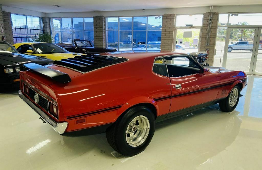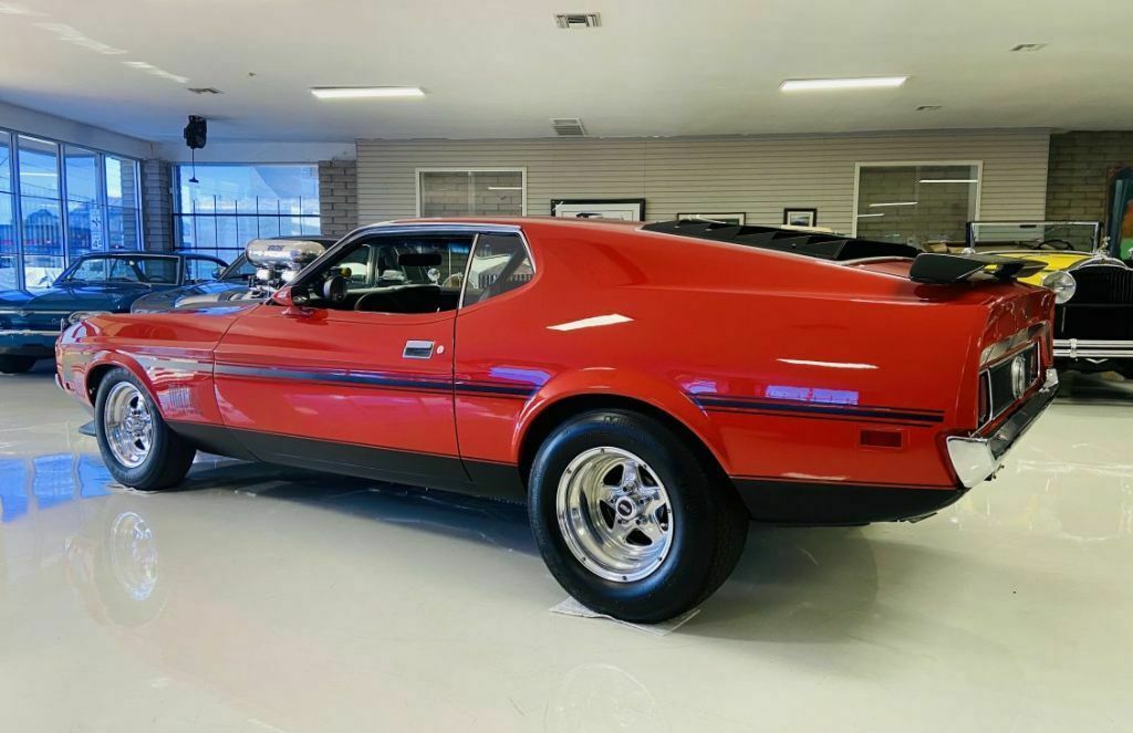 This is a car for the manliest of men. Your chest hair will thicken and your testosterone will increase just by standing in it's presence. It's rumored that whoever dares to drive this beat will ascend to a new level of Alpha - a demigod - amongst the company of Hercules and Chuck Norris. Only 3 men have ever driven this car. When the drive was over, their mustaches had grown into a lush, bushy cookie duster. This may be the car for you.... if you can handle it. This 1971 Mustang Mach 1 is a Texas car with what is believed to be 26,000 original miles. In 2014 this car had a complete rotisserie restoration, which included a long list of improvements and aftermarket equipment to turn it into the ProStreet drag car it is today. A full list of the build can be found at the bottom of this description. And the answer to big question you're thinking is no, this car was not taken to the track while under it's current owner. The wear and tear on this vehicle is also minimal, suggesting it has not been driven very hard ever. Mechanically, this car is in very good condition. With 700hp, this car really pulls and sounds amazing. Shifts are harsh, but intentionally so due to the B&M Shifter. This car has hardly been driven since it's restoration. The only things we noticed on it, mechanically speaking, were the removal of the windshield wipers and stock tachometer works intermittently (the aftermarket tach works fine). Cosmetically, this car looks quite nice, even up close. The bright red (3) paint looks great, with lots of depth. The interior, by and large, is also very good. We've done our best to capture the blemishes on the exterior and interior throughout the photos. There are signs of wear / age/ minor cosmetic imperfections throughout. This is a terrific car to drive and enjoy and would be welcome at most local and regional shows and events. Our take on this Mustang is simple and accepting of what it is; a very cool, strong running prostreet muscle car. The dyno sheet (we have a copy) is impressive, and this car is a blast to drive. Our inspection has deemed it to be in very good condition and it's ready to be enjoyed. Build Details: - BDS 671 Blower - 427/700 hp stroker engine - Dual 4-barrel carbs - C6 Street/Strip transmission - B&M Shifter with line lock - Caltrac rear suspension - 4.11 9 inch Ford rear end - Detroit locker - Original interior and body panels - Oliver billet rods - World Products heads - Crane roller valvetrain - CSI remote water pump - Mallory comp 9000 - MSD BTM ignition - Hooker comp headers - Magnafuel 275 fuel pump - B&M deep pan - B&M rachet shifter - Wilwood rear disc brakes - Auto Meter Ultra-Lite gauges - Weld Pro Star Wheels - New wiring This vehicle may be viewed at our Phoenix Showroom. For more information, contact Daniel at 1.917.890.4230 or at