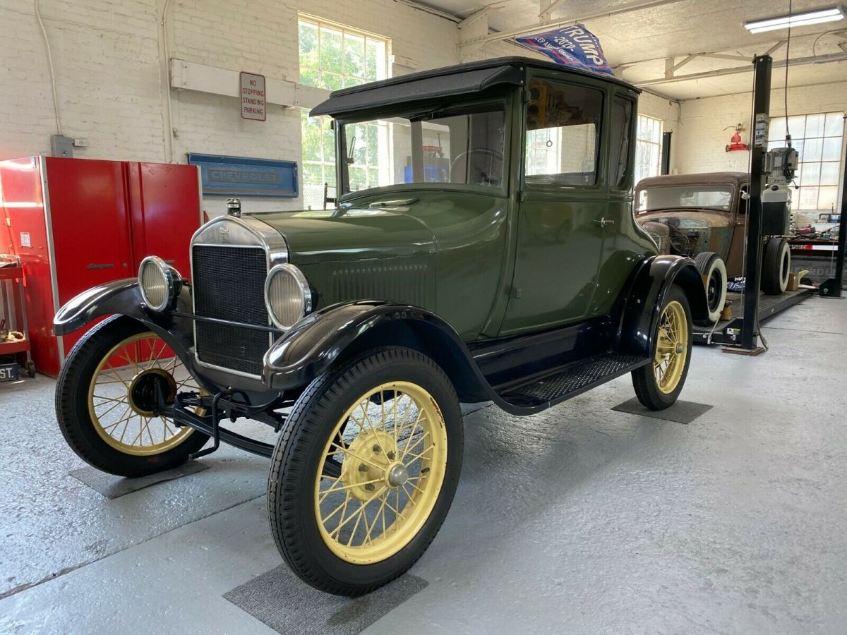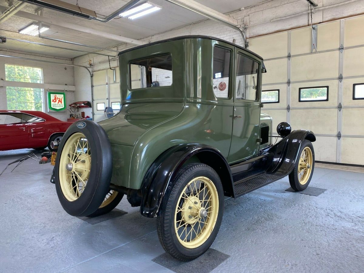 Up for auction is a very nice 1927 Ford Model T Coupe. Owned by the same mad for the last 50 years. This car was redone about 20 years ago. Stored inside garage on jack stands ever since. Even after all those years, I installed a battery and the car came to life right away. The car runs well and sounds nice. The interior is tip top with exception of the gas gauge lens. The glass is all very nice. The top is perfect. The tires hold air and 2 of the tubes are new. It is very well preserved but could use a professional detail. The fenders have a few chips from things bumping into it during the years of storage. The paint on the wheels is chipping. The headlight wires are a little brittle. If the pictures do not answer all your questions, please e-mail or call 517 748-3067. If you include a phone number in the e-mail, I will call you. This vehicle is being sold in "as is" condition with no warranty implied or otherwise. The description is to the best of our ability but is for information only and does not constitute any type of warranty. You are encouraged and welcome to inspect the car or arrange for an on-site third-party inspection before you bid. Bidders with zero or negative feedback should contact us before bidding. Buyer is responsible for vehicle pickup and/or shipping and any costs involved. Michigan sales tax or reciprocal state due as necessary. Seller is not responsible for any damage incurred during vehicle transportation. A deposit of 10% is due 2 days of the auction's end. Cash or certified check is ok. This deposit does not provide you with a chance to inspect to decide if you want to buy the vehicle. You already have bought it! Balance is due within 7 days of auction close. For the balance due, we will only accept cash ON DELIVERY (in person) or a certified check. Vehicle and title will not be released until funds clear. We reserve the right to end the auction early. Thanks for looking! |