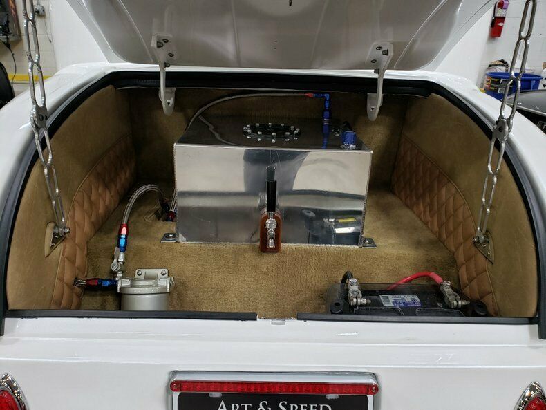 Little Deuce Coupe, Ford 302ci V8 with Dual Quads! Diamond Pearl Finish! Sometimes at Art & Speed, we get vehicles into the showroom that defy the urge to be typical; instead, they dare to be different. Our latest acquisition does precisely that, with a cool-factor that is off the charts! Let us introduce you to this one-of-a-kind 1932 Five-Window Coupe. The first thing you notice on this custom street rod is the stance. With a chopped and channeled body sitting on top of a Z'd frame, it looks mean just sitting still. Completed in 2016, the fiberglass body resides on a custom-fabricated and paint-matched 2 x 3 square tube frame. With a Mustang II-style coilover front suspension, it drives better than its height might suggest. Shod with 15-inch-wide Mickey Thompson tires in the rear and 6-inch-wide Mickeys in the front adds to the aggressive look of this 32 coupe. A set of Wilwood brakes fill the 15-inch American Racing wheels to round out the performance. Beautifully painted in Alabaster White Pearl bathed in clearcoat, this handcrafted '32 Five-Window Coupe with its laid-back grille and Moon tank out front stands out in a crowd. a built-302 Ford engine with twin 500cfm Edelbrock carburetors atop a tunnel ram manifold with a custom-ground cam inside, it means business. All of that power is fed through the chassis to a C4 automatic transmission coupled to a Ford 9-inch rearend. Ceramic-coated headers and stainless steel exhaust give this coupe the appropriate rumble to match its looks. Stepping inside, you see the interior uses custom-fabricated, aircraft-style bucket seats and two-tone diamond-pleated leather. The chrome steering column adds a nice touch to the rather simple interior as your hands around the billet steering wheel trimmed in matching leather for style and comfort. The center console is also matched in two-tone diamond-pleated leather with a bonus of custom stainless cupholders. White-faced Dolphin gauges mounted in billet trim keep you informed on the vitals of the coupe. This fresh '32 Ford Five-Window Coupe is a well-sorted jaw-dropper sure to stop passersby and judges alike. Give us a call or come by the Art & Speed showroom to check out this beautifully-crafted street rod. MECHANICALFord 302 Roller V8 EngineHEI DistributorTwin Edelbrock 1404 Performer 500cfm Four-Barrel CarburetorsFord C4 Automatic TransmissionArmor Hot-Coated Tight-Fit HeadersAHC Coated Aluminum Intake12-Gallon Polished Fuel CellCHASSISWilwood Braking System1/2-Ton Ford 9-Inch DifferentialChrome Tilt-Steering ColumnCoilovers Front and RearSway BarsPaint-Matched FrameEXTERIORBeautiful Alabaster White Pearl FinishHand-Painted StripesExcellent GlassStainless Shows WellAll-New LightsMickey Thompson Performance Tires (29x15x15 rear; 26x6.0x15 front)INTERIORCream-Colored, Fabricated Fiberglass Aircraft-Style Bucket SeatsBillet Banjo-Style Steering Wheel with Black LeatherDolphin White-Face GaugesPaint-Matched DashWood-Trimmed Center ConsoleHI-FI RadioOEM CarpetFlawless HeadlinerInterior Trim in Great Shape |