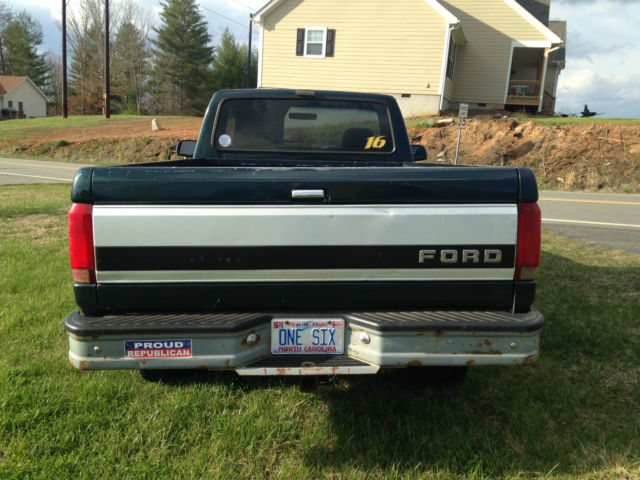 | 1993. 4WD. Automatic. XLT. Long Bed. Extra Gas Tank. Power Windows & Door Locks. Cruise Control. Power Steering. Tilt Wheel. AM/FM Stereo. Towing Package. This is a great driving. very dependable truck. I just recently moved and have no place to park it. so that's the reason it is on here now. Recently changed the transmission filter and fluid. plugs and plug wires. put 2 brand new head lamps in. and just before winter put 4 BRAND NEW MICHELIN TIRES on it!!!!!There is a spot of rust on the driver side quarter panel. as pictured. but truck body is pretty clear of rust otherwise. Truck is used. but has not been abused. It is not a show truck. but it is a clean truck. Recently traded a buddy of mine out of the current upgraded premium front bumper. it is new to the truck. 155k miles. runs great. never any major problems. NONE at this time. 302 engine. has never leaked oil to my knowledge. It is never low when I change the oil. Brand new head liner in the cab and new fabric on the sun visors. Seat has 2 small tears in the fabric. but could probably be sewed very easily. WILL NOT SHIP. MUST PICK UP. |