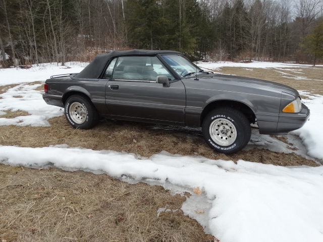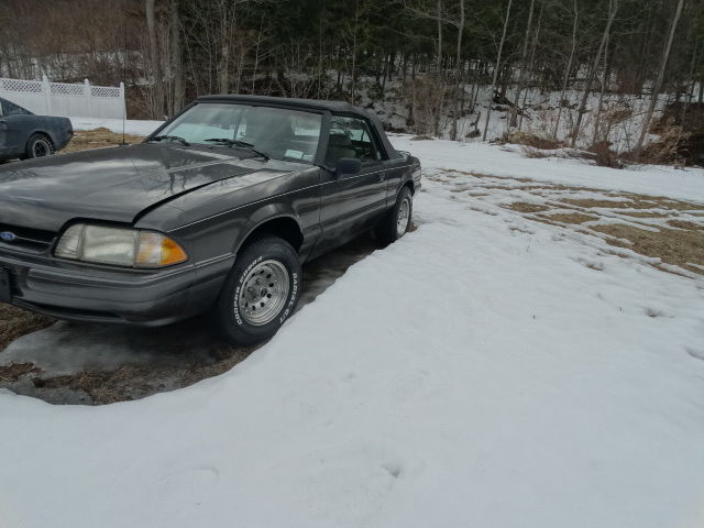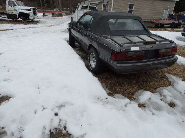| Up for auction is a 1992 Mustang LX Convertible "Parts Car". This car has no engine or transmission. the AC components are gone and the drive shaft is gone. The car has good body panels. Doors. Hood. Fenders Quarters. all in great shape. the car has really nice 4 lug rims with 90% tread on the tires. The interior is complete and in descent shape aside from being a little dirty. all the glass is good. the power windows all worked and are fully intact. The car could be put back on the road with a good drivetrain installed. There is some rust on the floor and some under the trunk. but it is very fixable. I am selling this car as a parts car. the car has a solid body and is well worth my starting bid. this is a "NO RESERVE" auction so if your looking for a cheap FOX body foundation. don't miss this one. If you have questions send me an email and I will get back to you ASAP. |