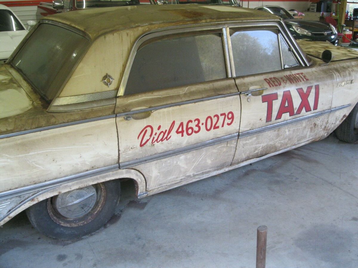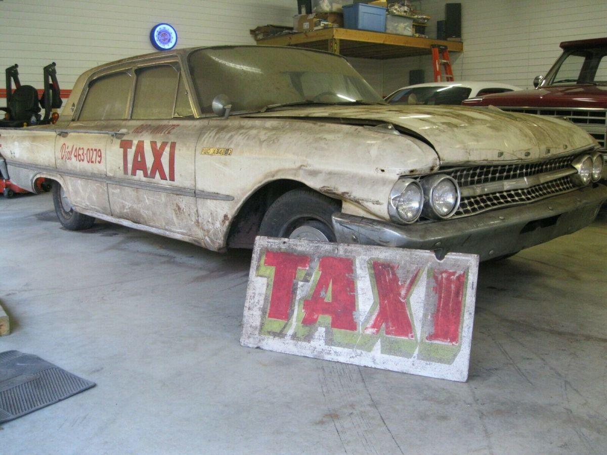 1961 Ford Galaxie Taxi Cab. Just pulled from long term, 50 years, indoor dry storage. Is it a time capsule or a time bomb? Motor is free but I have not tried to start it. This car has so many possibilities. Change the fluid, fix the brakes, put on a good set of tires and make yourself a Road Kill car. Change the whole drivetrain and suspension and do a Hot Rod Power Tour.. Use it for advertising your Taxi business. Use it for your Uber runs. Buy it and have it shipped to your mother-in-laws. Park it out behind the barn and let the chickens roost in it. Again the possibilities are endless. The car is very solid, complete and original. There is some front end damage as noted in the pictures but should not effect the eventual drive ability. All four door panels have plastic covering them. Who knows what might be under the back seat. I am selling the car as found, I thought it needed to be brought back to life. This car will get plenty of attention. Own a piece of ?. You fill in the blank. I am starting the bidding at $99 and selling it at no reserve. I do reserve the right to sell the car before the end of the auction if someone makes a reasonable cash offer for it. Title is clear. I welcome and encourage all potential buyers to look at the car or have someone look at it for them. Good Luck, Happy Bidding and make this beauty yours at auction
