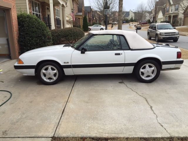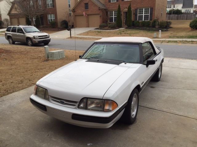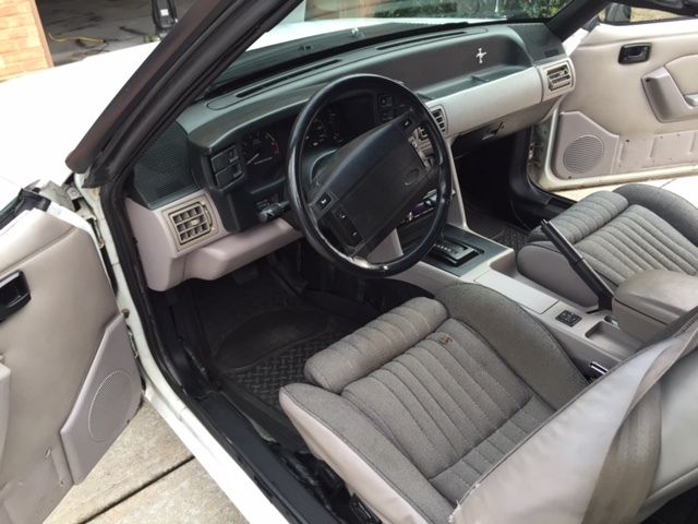 1991 Mustang 5. 0 convertible. 2 owners all original 47K miles. Pony alloy wheels. Upgraded Alternator. Pulleys. Electric Fan. Throttle Body. lower intake. and K and N Air Filters. Car was in storage for 10 years! Carpets were removed and spray on bedliner covers the floor. easy to re-install carpet. Power side mirrors go of and on. but still move manually. Side map pockets have been removed as well. All belts and tires have been replace. no dry rot. Great sunny weather driving car! Extra clean! Tires are in excellent shape. No emission problems. Runs like new! The past 2 years I have driven a total of 100 miles. Great car. I no longer have the time to get it out on the street. baby on the way. A/C ice cold. Excellent condition. Looks & drives great. Must see. Never seen snow. No accidents. Title in hand. Very clean interior. Convertible motor needs to be replaced or re-built. motor comes with car. Top still moves manually. Upgraded Headers come with the car. but need to be installed. Extra Clean Engine! Local Pick up or buyer pays shipping.