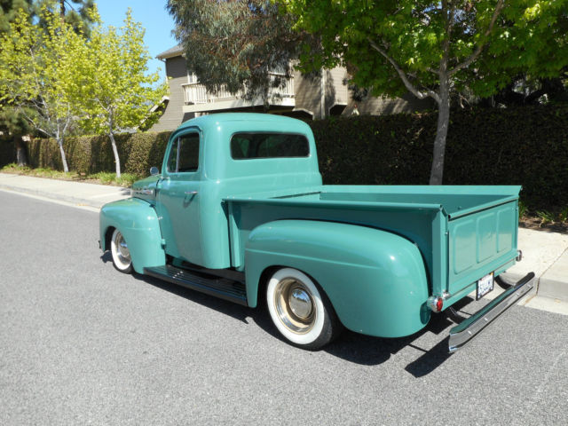 | You are bidding on a 1951 Ford F-1 Truck. nbsp; Truck is a resto-rod. has new 350 crate motor. turbo 350 transmission. nbsp; Stock frame with chassis engineering mustang ll suspension. manuel steering. power disc brakes up front. rear suspension is chassis engineering spring kit with 10 bolt chevy rear end out of a nova. nbsp; update gauges. custom seat. nbsp;Wheels are solids with 48 ford hub cap and trim rings. nbsp;and bf Goodrich Silvertown white walls. Needs minor touches. wiper hooked. ebrake. horn. Buyer pays $500 deposit end of auction with pay pal. Buyer responsible for pick up and delivery. question email linvatec1@yahoo. com |