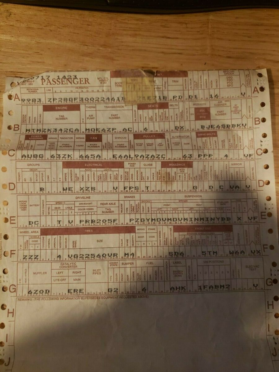 For sale is a 1986 Mustang GT. This car is 100% original. It has never been modified in any way.It has just 43,000 original miles. Option include, PS, PB, PDL, PW, Cruise control, Tilt Wheel, Factory Sunroof, Automatic Overdrive Transmission, Air conditioning (properly converted to 134a by Ford Dealer. all new hoses, condenser and accumulator and works great), Traction lock rear.It has never been repainted, but the paint is shot. It has a bit of surface rust on the hood and roof where the paint has pretty much faded away. This car has no underbody or frame rust, no shock tower rust. It was never wrecked, the body is perfectly straight.The Canyon Red seats, carpet, door panels, console are in great condition. The dash has cracks near the speakers. The headliner needs replaced. A new one comes with the car.There are about 400 miles on the tires and brakes. It runs and drives 100%It has a new Kenwood blue tooth stereo installed. I have the original electronic high power stereo and speakers (they work fine).I even have the original 1986 owners manual on cassette in the glove box.Original Marchal Fog Light covers included. Picture of build sheet above. Clean PA title for this car. A deposit of $500.00 is due within 24 hours of purchase. Contact me with any questions. |