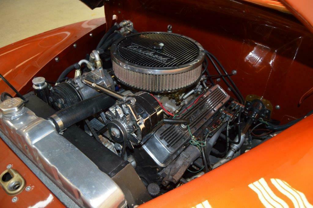 Here’s one you won’t see very often, a custom built 1948 Ford Roadster Pickup. This is a very well built truck from the ground up. · ZZ 350 V-8 engine · TH350 automatic transmission · 10 bolt rear end · Power steering · Power four wheel disc brakes · Vintage heat and A/C · Aluminum radiator · Billet overflow · Chrome alternator · Edelbrock valve covers and air breather · Excellent Burnt Orange exterior base/clear finish · Sanded and buffed to perfection · Painted grille and front bumpers · Custom bed with power tonneau cover · Steel back half, glass front half · Removable soft top · Blue dot headlights · Shaved doors and hood · Air induction hood · Chrome US Mags · Evoluzion 215/40ZR18 radials on the front · Evoluzion 245/45ZR20 radials on the back · Tan leather interior · Matching leather steering wheel · Chrome tilt column · VDO gauges · 850 miles since completed · Billet pedals · Power seats · Power windows · Custom AM/FM/CD stereo · Custom door poppers · Carpeted bed area · Battery relocated to the bed · Battery kill switch · Leaf spring rear suspension · Dynomax dual exhaust · Mustang II front suspension If you’re looking for a unique classic, this one is for you. What a cool looking ride with the top off! For more information please contact Steve at 770-401-7877 or at sparkysmachines@comcast.net |