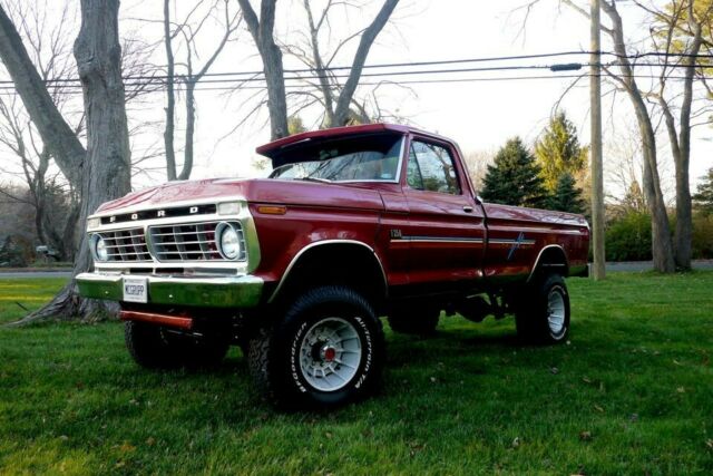 Gorgeous 1974 Ford F-250 4x4. Rebuilt 390 big block motor w/ 4 Barrel Holly carburetor, Edelbrock Intake, Hedman Headers, Flowmaster Mufflers, Accel Distributor + Iginition Coil, Taylor Ignition Wires, 3.5" Autometer Tach on column, and kill switch. Motor was redone on Ford assembly line.Engine hood opens two ways: clamshell and flipfront. Headliner stereo w/ bluetooth. All-terrain tires. 3" body lift w/ additional 3" suspension lift. Includes car cover and 1974 Truck Shop Mechanics Encyclopedia.New engine as about 25,000 miles on it. Body has approx. 110,000. Vehicle pre-dates 17-character VIN; however, original VIN is F26YEU63314.