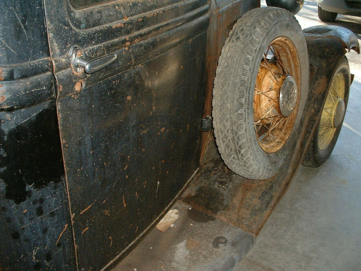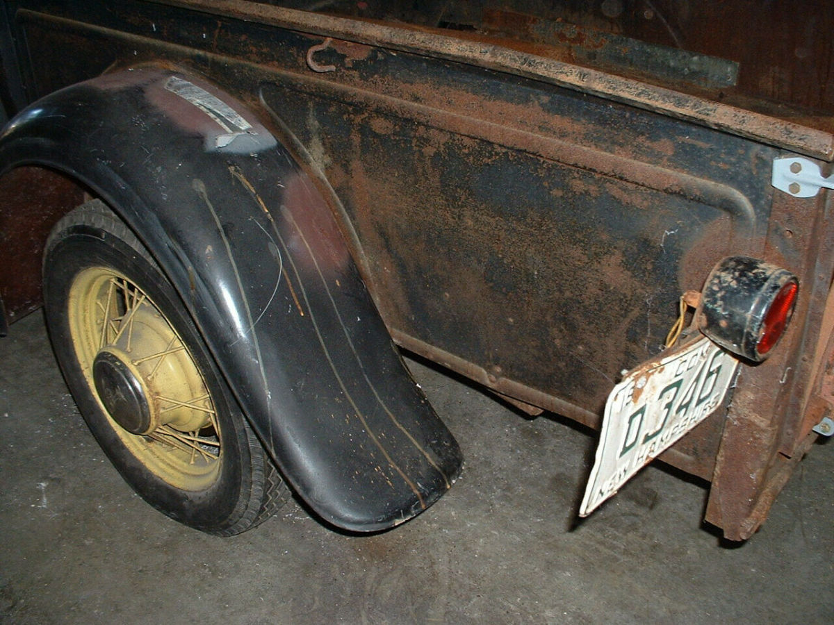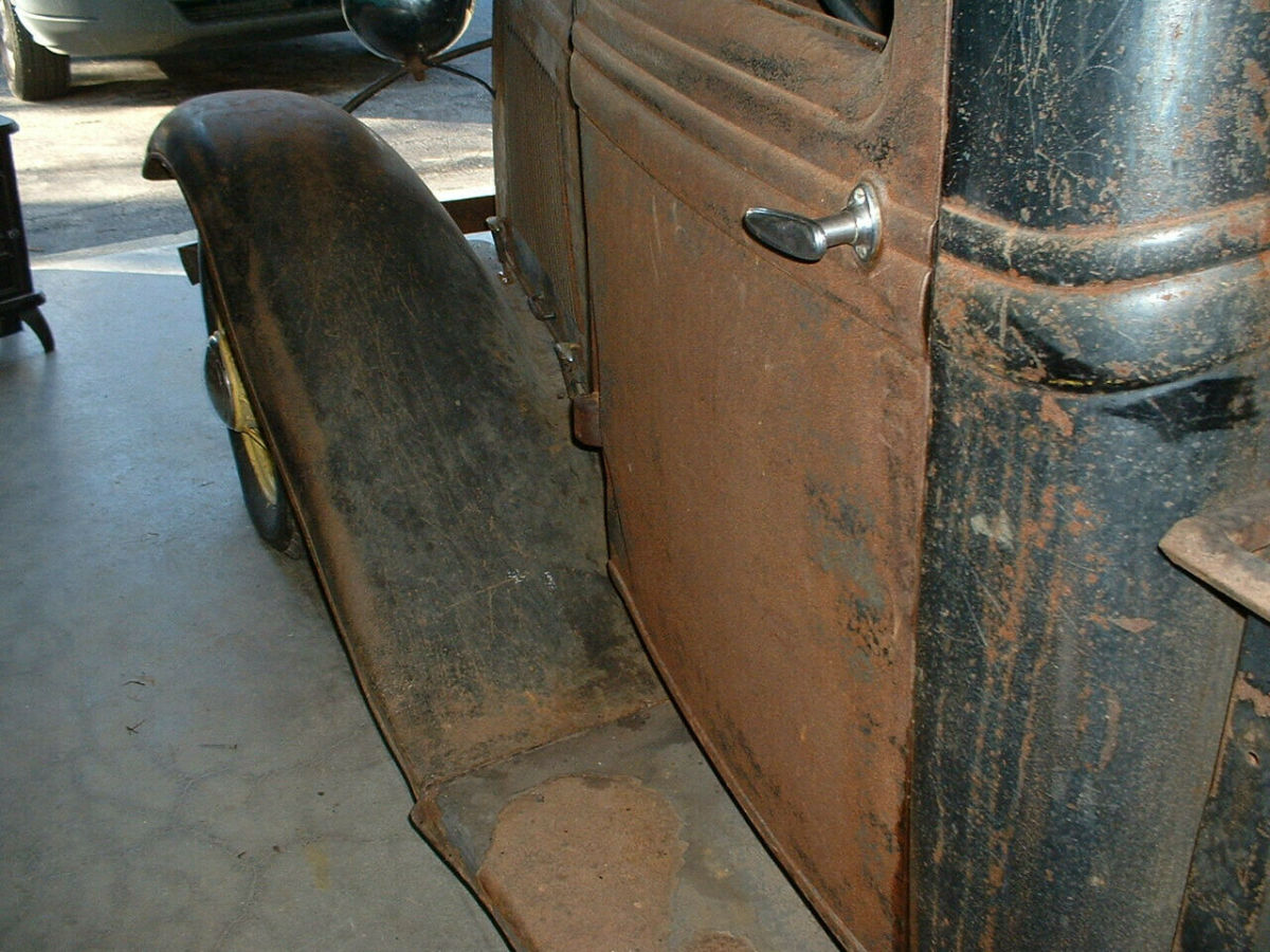 Rescued survivor, in need of restoration, street rod, rat rod, or whatever you choose. Bed has rust, Cab metal is in excellent shape, Left door needs repair at lower hinge, Front fenders are rough, but repairable, rear fenders are fiberglass. Tires and wheels are in very good shape.(has some broken wheel studs) .It's equipped with rocky mountain brakes, has a side mount spare and lots of patina. engine turns free, haven't tried to start it. Was stored in 1961!!