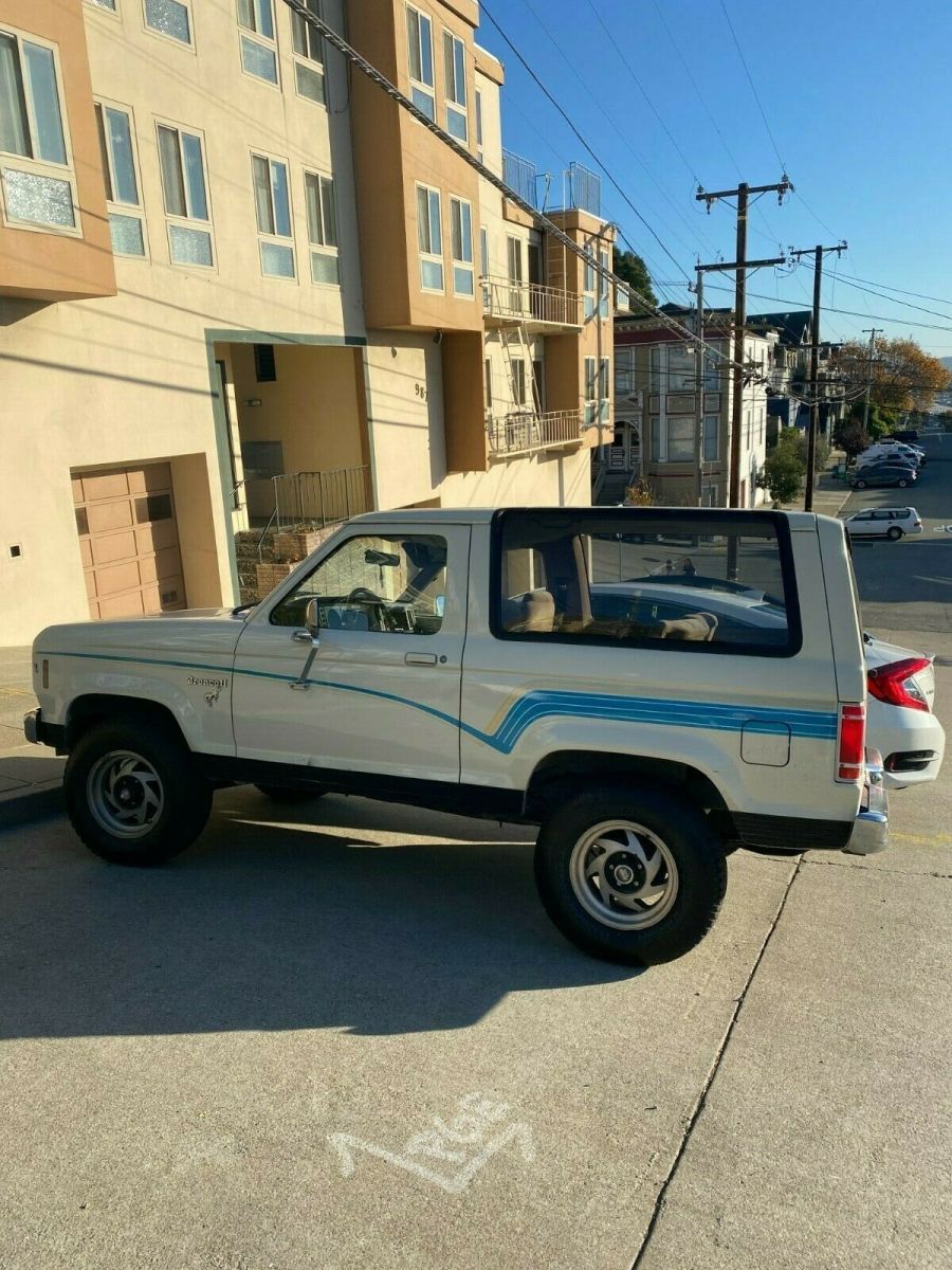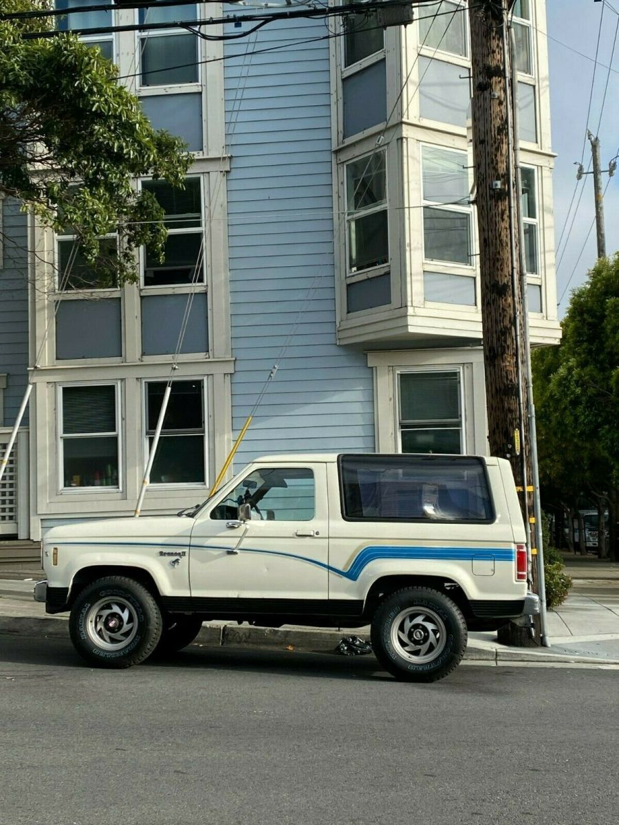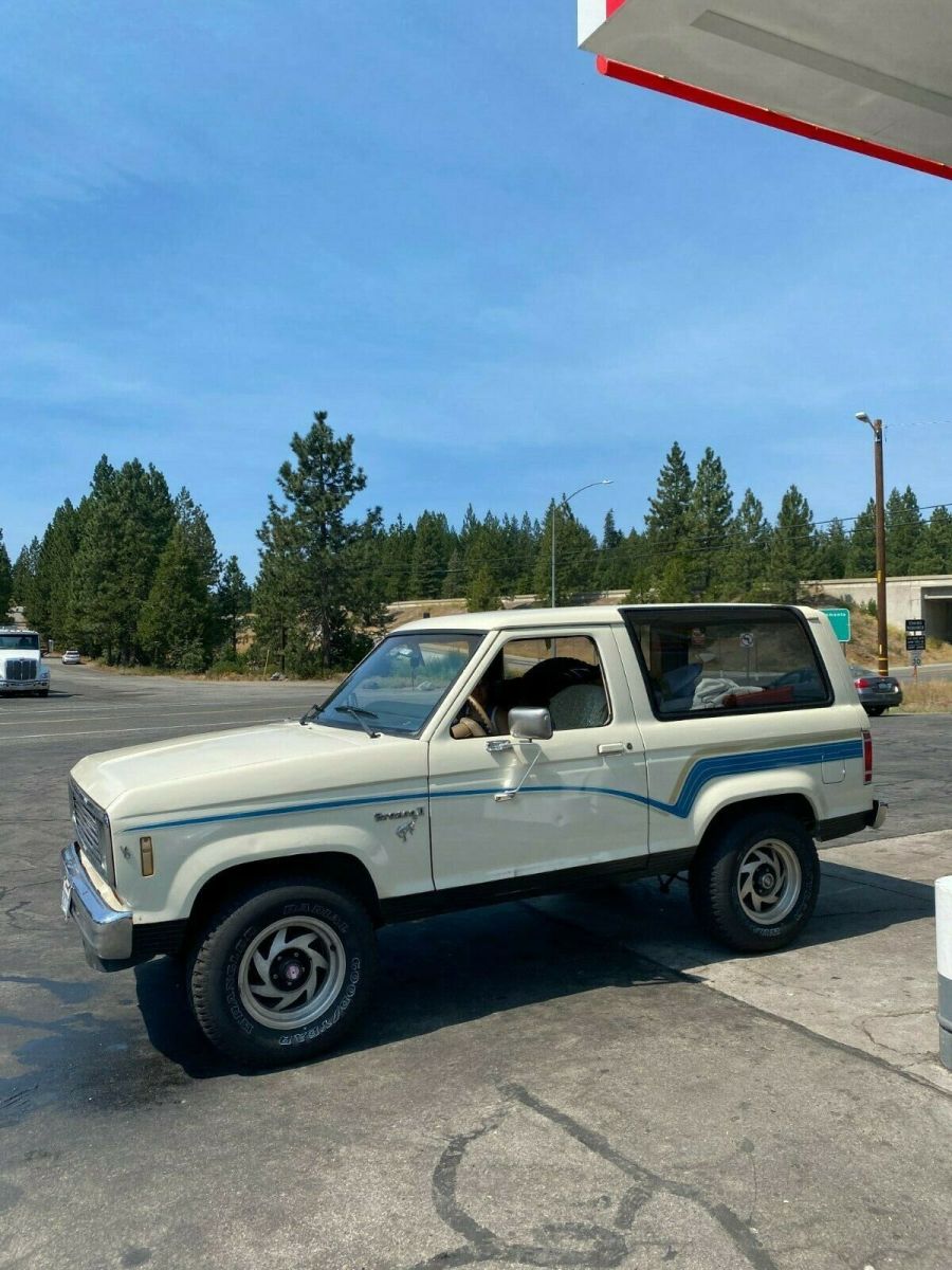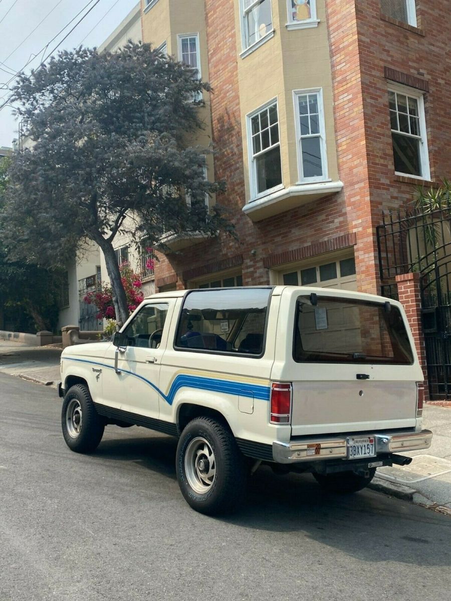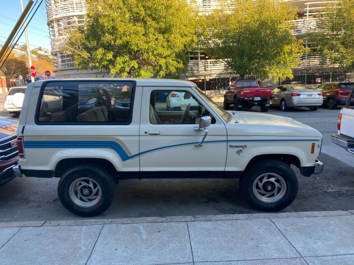 1985 Ford Bronco II. Tan with blue and gold stripes down the side. Retro tan cloth interior in great condition with normal wear and tear and seats in the back. Minor wear and tear on the dashboard and headliner is tearing off / will need to be replaced. Brand new stereo + front speakers (back speakers do not work but sound is still good if sitting in front) with bluetooth/USB capability. Brand new off-roading tires with a new spare tire as well just purchased in August 2020. The carburetor has been rebuilt with over $3k worth of additional work put into it over the past 6 months including a brand new fuel pump, fuel filter, battery, carburetor gaskets replaced, etc. Runs great with California registration and passed smog in April of 2020. PLEASE READ! While this car runs well, it's vintage and 35 years old. Ideal next owner is someone who is knowledgeable & passionate about vintage cars like this as well as realistic about the fact that it will have to be maintained. I've done my best to describe this car as accurately as possible, but please don't hesitate to send me a message if you have any questions! Happy to set up a call for anyone who is interested as well (message for number). Buyer is responsible for pick-up (San Francisco, CA) or shipping. If you're local and want to come for a test drive that can be arranged this week as well.