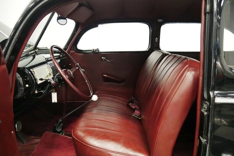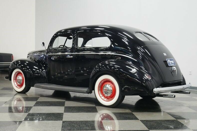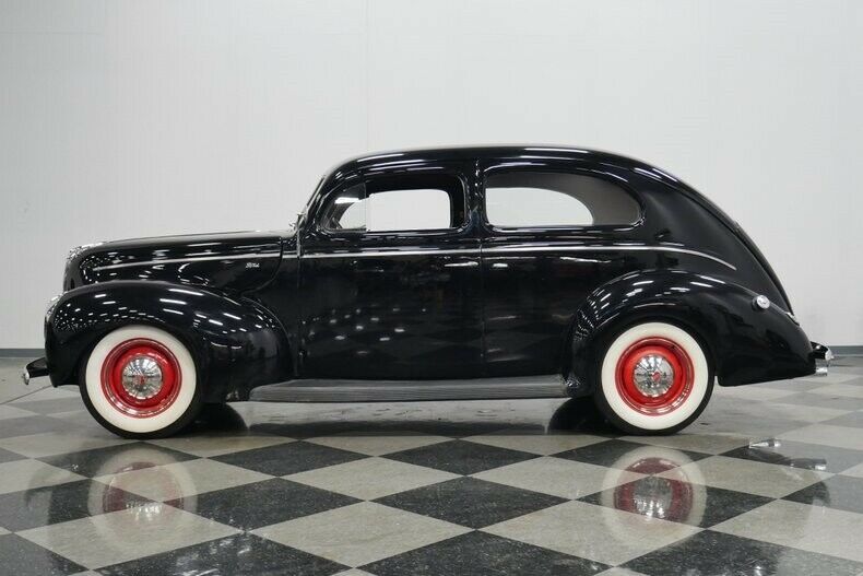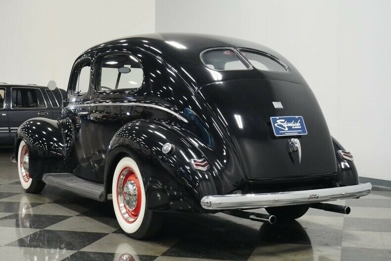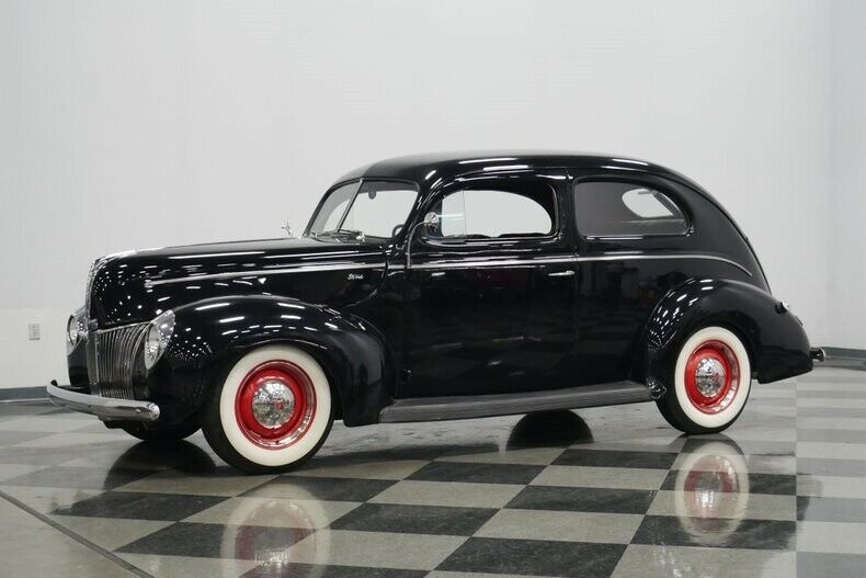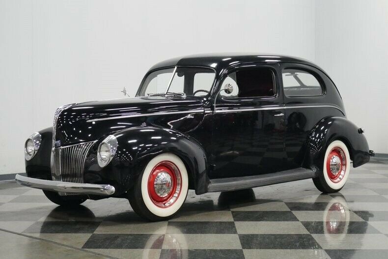 This 1940 Ford Deluxe Tudor Sedan has that classic pre-war look you love inside and out. But with upgrades around the flathead V8, a five-speed stick, and upgraded stopping power this vintage Ford has also been given the right investments to really make it a great cruiser for modern times. The teardrop headlights, alligator hood, and rounded fastback-like style has kept this car an icon. And this one has the right classic look. It was given a comprehensive respray over two decades ago, and today, it balances a high-gloss look with the right signs of a road-worthy car that's been enjoyed. So basically, the first impression is correct-style classic that spends more time on the road than on the back of a trailer. As you continue to look over the whole car, you'll see that this driver-ready feeling is well-earned from the right well-integrated upgrades. But for now, enjoy the look of a true classic with bright red wheels and even brighter whitewalls. And yes, they did make a solid investment to keep the chrome looking newer and shining. The deep red interior has a very classic look. Two rows of pleated vinyl seats, matching smooth door panels, and plush carpeting tell you they made a nice investment balancing vintage style with fresh-feeling materials. The dual-spoke steering wheel, art deco gauges, and smooth dash are all classic Ford. But this has also been updated with nice additions for driving, like seatbelts and a temp gauge under the dash. And have you counted the gears on the floor shifter yet? You're going to want to show off the motor everywhere you park, and so this is ready for primetime. Ford's 239 cubic-inch flathead V8 is a big red beacon in the center of the engine bay's dark inner walls, and there's plenty of added polish for that extra touch of flair. One of the reasons for showing it off is that the classic style also has plenty of well-integrated handy upgrades. The 12-volt electrical system, alternator in a generator-style housing, Mallory distributor, modern plug wires, and aluminum radiator w/electric fan are all about making this classic as easy as an everyday driver. It's a smooth-running package, and the upgrade to a five-speed manual transmission gives far better ratios to take full advantage of the power. The cherry bomb dual exhaust even gives it a nice tune. And when you're out on the road, the urethane bushings, newer leaf springs, and upgraded front disc brakes gives this an added confidence you don't expect from a pre-war machine Complete with owner's manual, this is the vintage look you love, and the upgrades that make it fun to enjoy for far more miles. So if you love driving your classics, you know this special Ford can't be beat. Call today!!! |