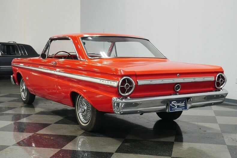 This 1965 Ford Falcon Futura has a well-done color combo and all-around well-preserved vintage appeal. It all makes for a classic coupe with a charm that goes beyond its value price. This is a hardtop classic coupe, and so it really looks good in red. And this is a later application in life, so it retains a nice gloss in the sunshine. Plus, you have all the right brightwork on this complete example, including the wide grille, full trim w/hood ornament, and the full-length tapered side streak that makes this look like an arrow always moving forward. You'll even spot that most of this has a good shine from more recent investment, including the wraparound chrome bumpers. It's a great vintage package, right down to the wire wheel covers. And this really has the kind of straight and clean that tells you this has been treated with respect for decades. Black interiors always look the best against red exteriors. This was also part of the later color change, and they really did it right. That means the red paint returns on the door tops and dash, and the there's a fresher look on the door panels, seats, and carpeting. It's the kind of quality presentation where you'll love keeping all the windows of this pillarless hardtop down so everyone can get a good look inside. You'll also love showing off the time-capsule like setup. Even the details are nice and vintage, like the stylish Falcon steering wheel, Mustang-style heat/defrost sliders, the AM radio that's still there for display, and the correct trunk mat w/covered full size spare. This is a distinct classic, and that feeling continues under the hood. The long red valve cover shows of the lengthy block of Ford's 200ci inline six. Sure, we all know there's some nice V8s that fit under there, too. But there's something extra cool about having the correct displacement powerhouse still in the engine bay. Plus, we have a long maintenance file for this motor, and the way it fires up and run reaffirms this good care. A Falcon like this was all about giving you a nimble feeling that also keeps you in touch with the road. But there are also nice relaxed cruising features, too, like the automatic transmission and newer modern tires. The sale comes complete with the owner's manual as well as the maintenance records. This is a well-done all-around classic hardtop, and so at a price like this, you don't want to miss this deal. Call today!!! |