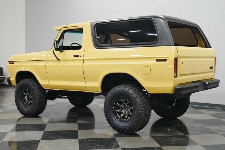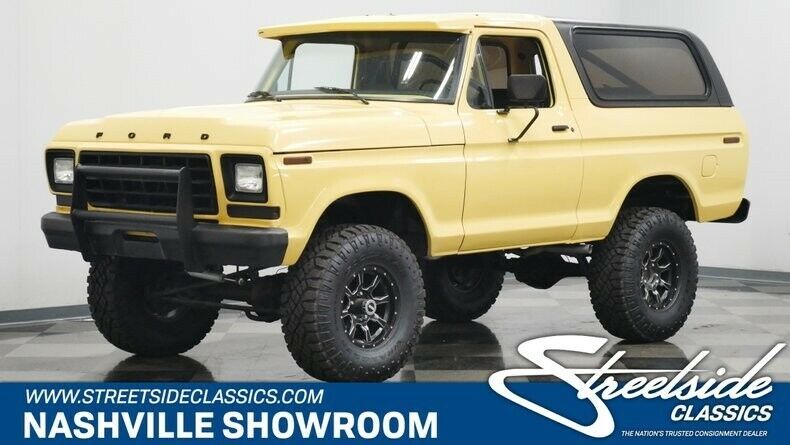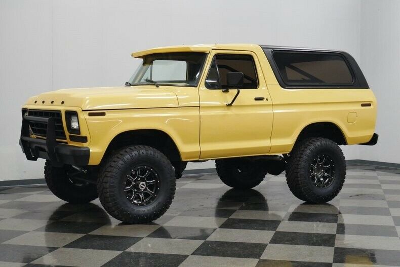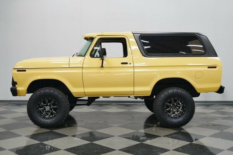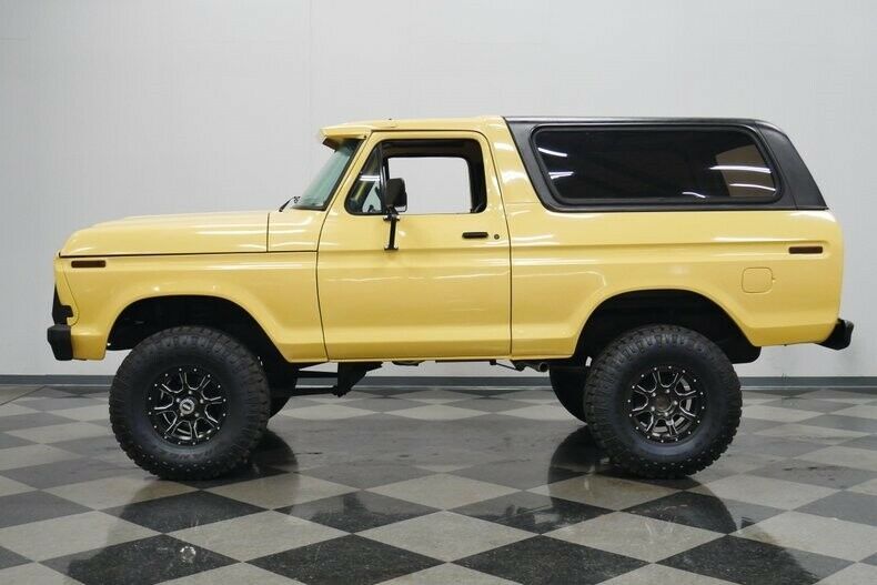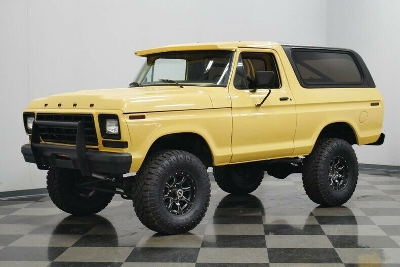 This 1978 Ford Bronco is about size, V8 power, 4x4 ability, and an overall upgraded presence. It all makes for an SUV that's both unmistakably vintage and capable. The second-generation Bronco is where Ford really turned it up a notch. Larger styling, larger engines, and just an overall larger presence. So when it debuted for 1978, it was an instant legend. We really like to see one like this that has been upgraded while still harmonizing with the classic 4x4 style. For example, the color theme is a full custom setup with a glossy Desert Tan for the body and a full blackout accessory setup for an almost two-tone look. This darkness shows off pieces like the special grille that was only around for two years, the wide bumpers, and the removable hardtop. The black also helps integrate beefy off-road upgrades like the front brush guard and 16-inch wheels that hold new Goodyear Duratrac tires. It's a quality total look that reminds us that beauty and brawn can coexist. The interior continues the mix of black and yellow. You have nice features like a new set of low-back front bucket seats, and the rear bench coordinates while also having a comfy cloth insert. As a full-size vehicle, there's plenty of room for all your gear. The key-operated power rear window gives you a tailgate that you can sit on everywhere from ball games to the campsite. And the removable rear hardtop delivers a convertible-like feeling whenever you want. In fact, this one was made for the outdoor lifestyle. That's why you have upgrades like the rugged liner paint on the floor and an added rear roll bar. While the previous generation Bronco stopped at Ford's 302 V8, the second-gen means proper 351 cubic inches of power. This is the kind of motor that loves upgrades, and so they invested in extra muscle with an Edelbrock four-barrel carburetor, Weiand intake, and long tube headers. And the dual exhaust and Xlerator mufflers are new. So you have a strong-running motor that has a great V8 sound. A two-speed 4x4 transfer case, beefy axles, and deep tread on the tires mean this powerful classic can still take you deep into the wilderness. But it also has features like a three-speed automatic transmission, power steering, and power front disc brakes to make it a fine choice for in-town, too. The second-generation Bronco was already distinctive for only being available for two years, and this one added to the individual spirit while also adding power, too. That's why you know this 4x4 will be leaving us soon. Call today!!! |