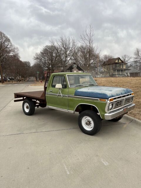 Vehicle Details 1974 Ford F-250 Highboy, 4x4 360 V8 4 Speed, 2 barrel carb, power drum brakes, power steering (leaks at hydraulic ram so belt is removed from pump), AC truck (missing compressor). I would classify this as a drivable project vehicle. The cab is quite clean with minimal rust in the floor pans, there are a few dents on the fenders and drivers door but no rust. The 360 runs good once warmed up, current factory choke does not work. Passenger side exhaust manifold has been replaced, drivers side leaks a little. Clutch feels good with no slipping, transmission shifts through all the gears nicely. Transfer case shifts smoothly, but front drive shaft is twisted in half. Both ends will come with in order to have a new front driveshaft made. Truck runs and drives, has new master cylinder and wheel cylinders but needs front shoes and drums. Let me know if you have any other questions, Ill be happy to answer them. Or if you would like more photos of certain areas. It's a neat old truck with lots of potential. Thank you.