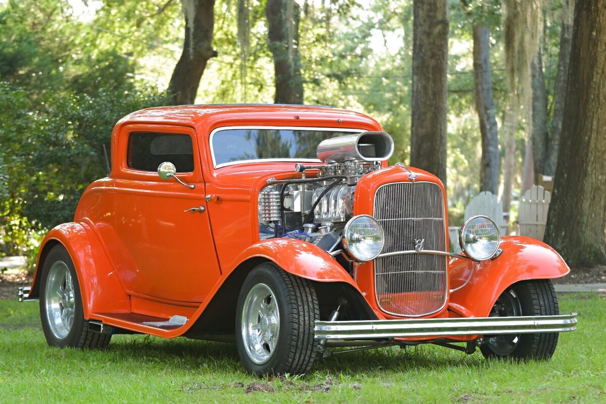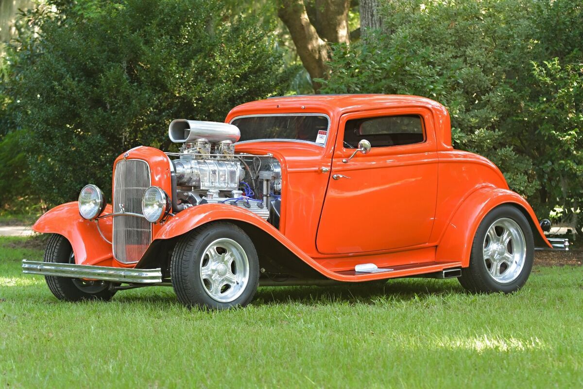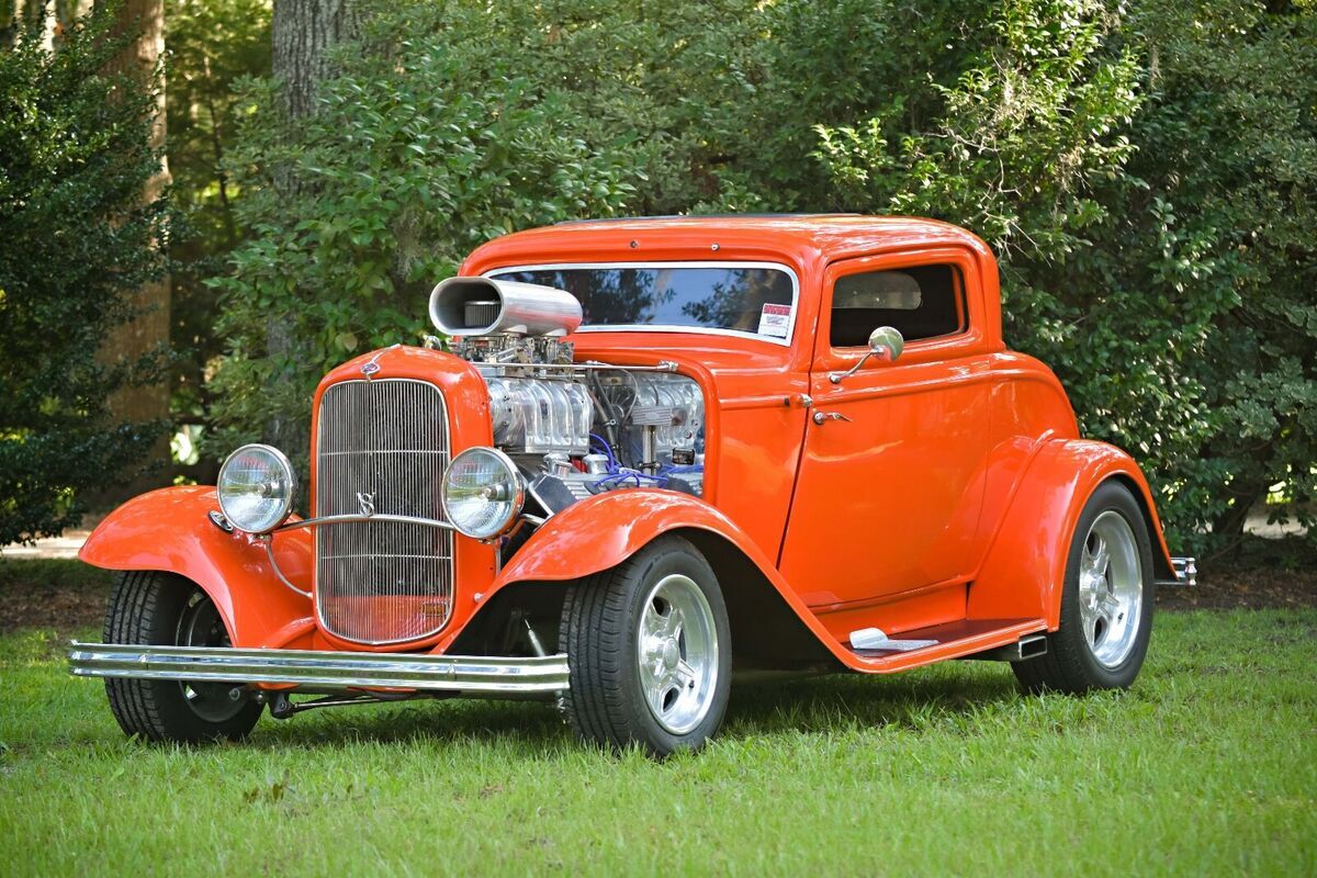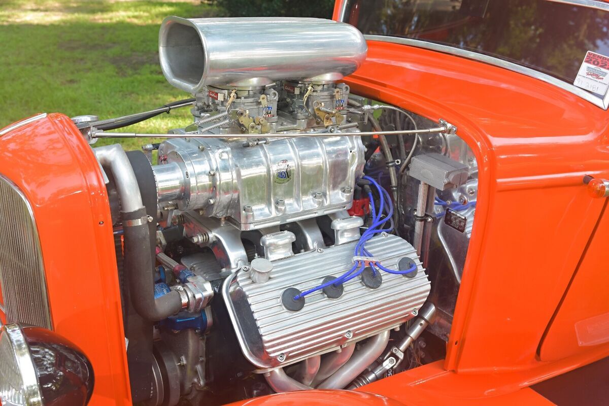 1932 Ford Three Window with everything you could want, all top of the line. Pete and Jakes chassis, 9 inch ford rear end, 4 link suspension with coil over, front pete and jakes drop axle 4 link, 4 wheel power disc brakes, power windows, power trunk, power sunroof, rear view camera, fiberglass body, 4 inch chop top, 392 hemi, 8:1 forge blower pistons, 671 polished blower and intake, ceramic coated headers, 833 semi 4 speed transmission, steel scatter shield bell housing, weld wheels front wheels 15, back 18, bf goodrich tires, only 150 miles driven on this beautiful example of classic looks and modern muscle.