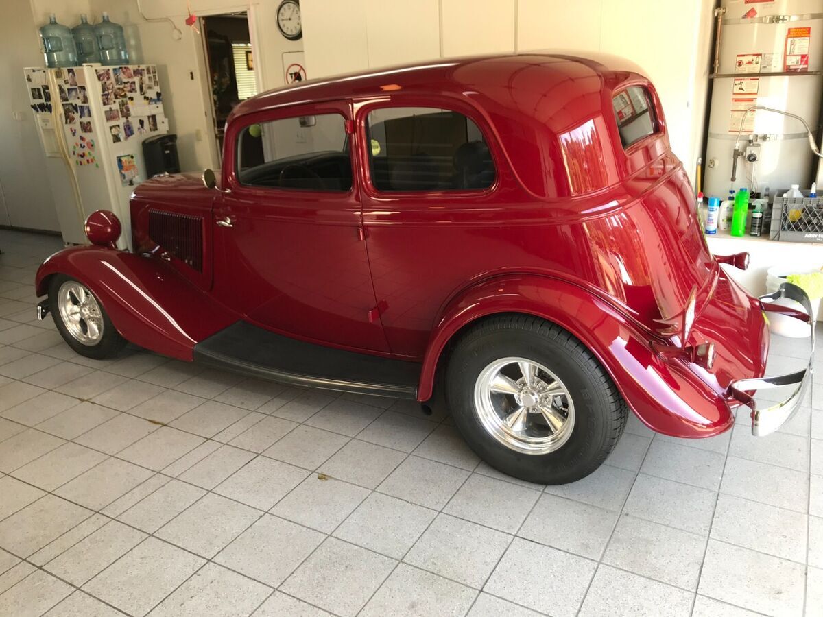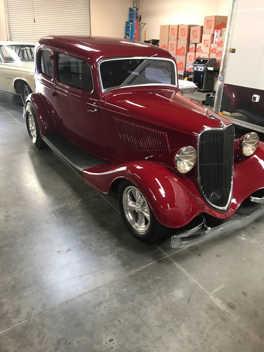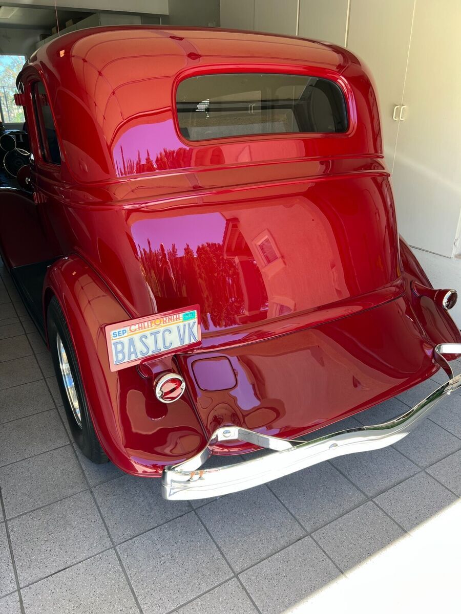 Vehicle Details 1933 Ford Victoria Street Rod. All original "Henry" steel. No history of rust or body damage ever. A truly over the top: body, fenders, grill and hood. Roof has been filled (looks like a factory install) with the original body edge (was custom made). Chevy 383(high end build) with 350 turbo transmission, Modified Jag rear end, traditional front suspension (pieces are chrome plated, powder coated or polished stainless steel). 4 wheel disc brakes, air conditioning and a tilt steering wheel. Hand made dash (one of a kind), Leather interior with aircraft tweed inserts, German square weave carpet and front and rear seatbelts. Nardi steering wheel, black anodized dash, black powder coated handles and manual windows. Just to much to list. Please look at the pictures and ask me any questions. The reserve is way below the cost to build. This is a BEST OF SHOW street rod!!