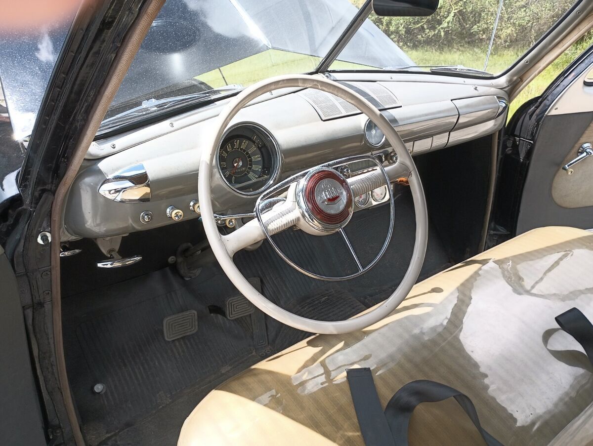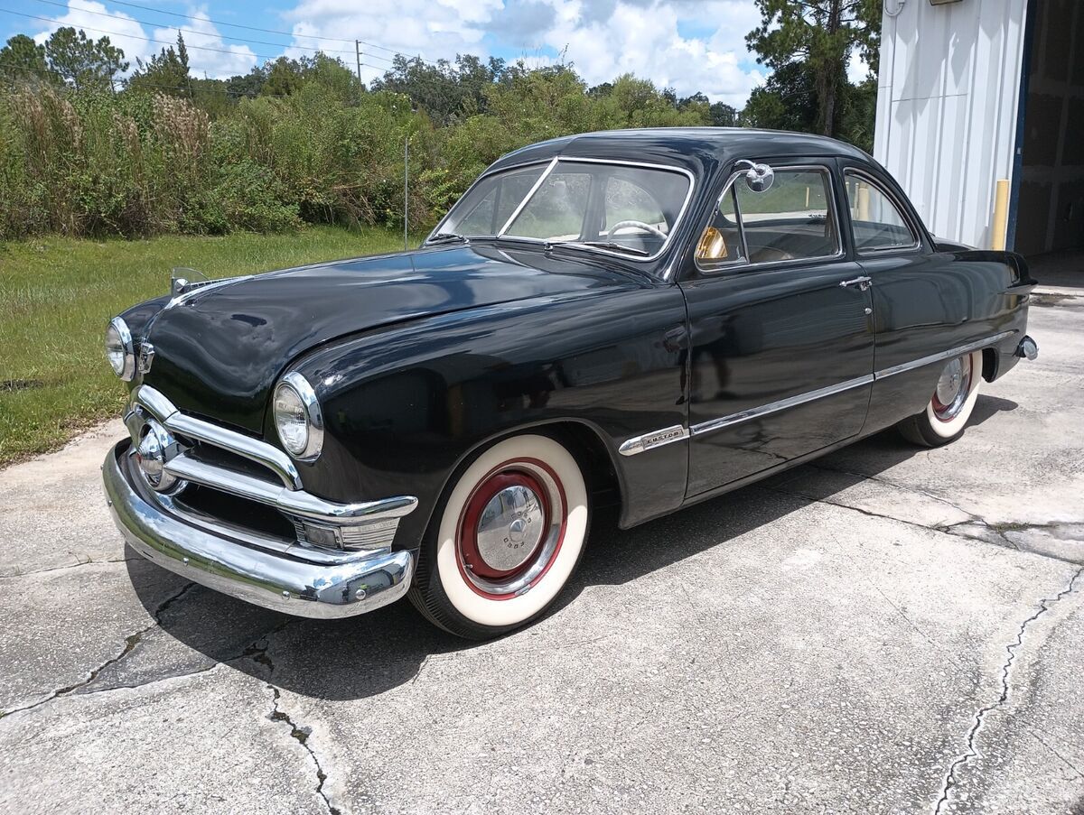 This classic 1950 Ford Custom Coupe is a beautiful addition to any car collection. From a previous collector and his private setting, the vehicle is special. The interior is all original, with gauge upgrades. Seats have been covered since original purchase in 1950. Headliner is original. The paint, body and chrome are excellent. Fuel system and motor are mildly upgraded. Yes a few blemishes here and there but excellent for a 74 year old car.Runs drives and brakes excellently. Its 8ba flathead sports aluminum heads, duel 2 barrel manifold and carburetors and a few choice motor upgrades. Be sure to look at pictures. No leaks or fluid uses here. A rust free floor and door bottoms support its previous care and garaged lifeWith a sleek black exterior and beige/gray interior, this business coupe has a timeless appeal. The car has been well-maintained and has only had 2 previous owners, helping maintain its quality longevity. Whether you're a collector or simply looking for a unique ride, this 1950 Ford Custom Coupe is sure to impress
