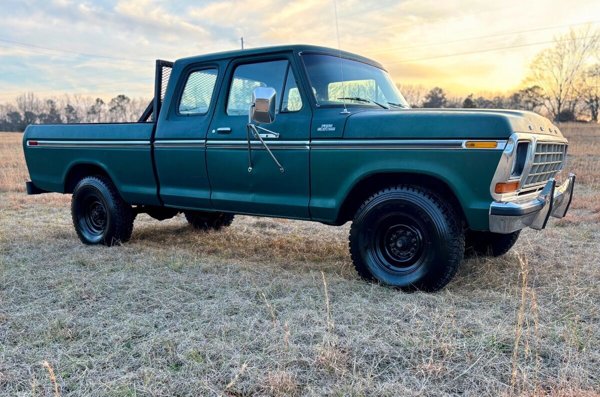 Original Condition 1978 Ford F250, Extended Cab, Short Bed, Trailer SpecialRare Extended Cab - Short Bed Combination90,250 MilesEngine and Drivetrain are 100% original and in perfect running condition. No alterations. Easy to crank. Runs smooth. Shifts gears quietly. Fun to drive.6.6 Liter 400ci V8 EngineAutomatic TransmissionTrailer Special towing package with extra large radiator.16 inch steel wheels with TOYO M-55 33 inch tires, 255/85R16Original exterior green paint has a beautiful patina.Frame is straight and unaltered.A couple love bumps on the body, as seen in the photos.Interior is in excellent condition. Dash board and instrument panel are in excellent condition.Door and window seals are in excellent condition.Has been garage kept for the past decade. Was likely garage kept the previous 3 decades.It drives, it steers, it sounds like a mint condition 1978 F250 truck. Smells good, too!This truck is 99% ORIGINAL CONDITION.The following alterations have been made:1) 2.5 inch lift kit (required to bend the twin I-beam arms)2) the interior seats have been reupholstered3) LED headlights (the original bulbs were retained)4) as a precautionary measure, the gas tank was replaced with a modern aluminum tank5) 16 inch steel wheels