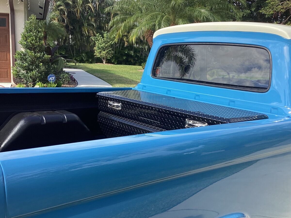 For your consideration is a beautiful, reliable, fun 1965 ford f100 short bed. This f100 has been completely restored. It will be very difficult for you to find a compatible f100 out there. This truck has a 390FE engine rebuilt by wolverine engine builders at a cost of $9,500. The engine is a full roller with aluminum heads and intake. The fuel injection is a multi port system made by Edelbrock. The AC is a vintage air and blows really cold. Power disk brakes, Walker radiator, C6 transmission. Paint is an original ford f100 color. We took an original ford gas fill door and installed in the side of the bed for a factor look and this aloud us to relocate the fuel tank to the rear of the truck, removing it from inside the cab. The fuel tank is aluminum and custom made by Boyd welding. Spray in bed liner and tool box was added to the bed. New suspension, dual stainless steel exhaust (sounds great). The wheels are not my taste and I was going to change them to original steel wheels painted blue (I have extra paint). Then I was going to utilize the original dog dish hubcaps painted white. I have a beautiful set of original hubcaps that are included with the truck. Tinted glass and a trailer hitch.The interior is new, all wiring, led lighting, gauges are new. There’s really to much to list. There’s almost 50k invested in this truck. Look at the pictures and ask any questions through eBay, I’m happy to answer. Please do not ask me to call you. From past experience of selling some of my collection. I get many tire kickers and low ballers that I don’t want to waste my time. If we communicate through eBay and I know your serious we absolutely will talk. This truck does have a rebuilt title, I’m not sure why, I bought it that way and there wasn’t any signs of prior damage. In any event check with your DMV with regards to registering. I believe every state will register. I have had this truck registered in both NJ and FL with no questions. I use American Collectors insurance for all my classics. Shipping is the responsibility of the buyer. I do have a great shipping company that utilizes and enclosed trailer and goes up and down the east coast regularly. I invite in person inspections. Please do not ask for a buy it now. Please do not ask for my reserve price. If you like the truck bid what your willing to pay for it. You won’t be disappointed. Good Luck Bidding.