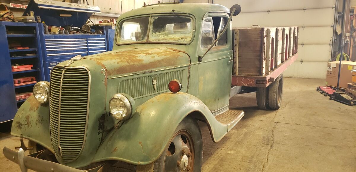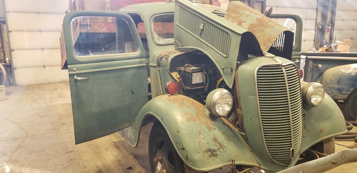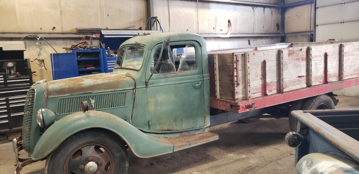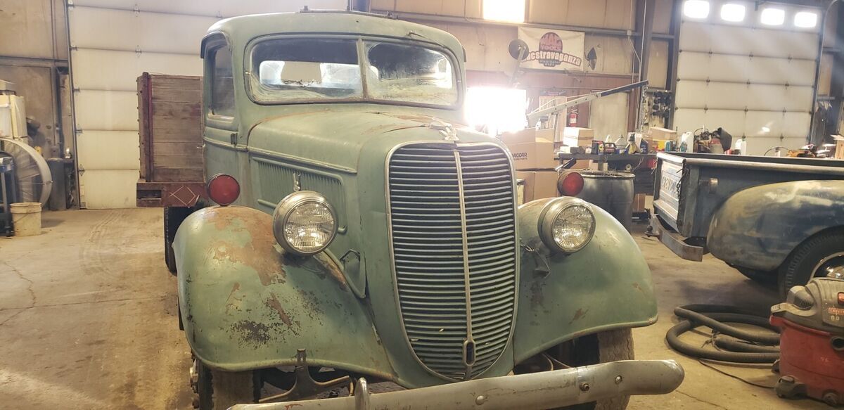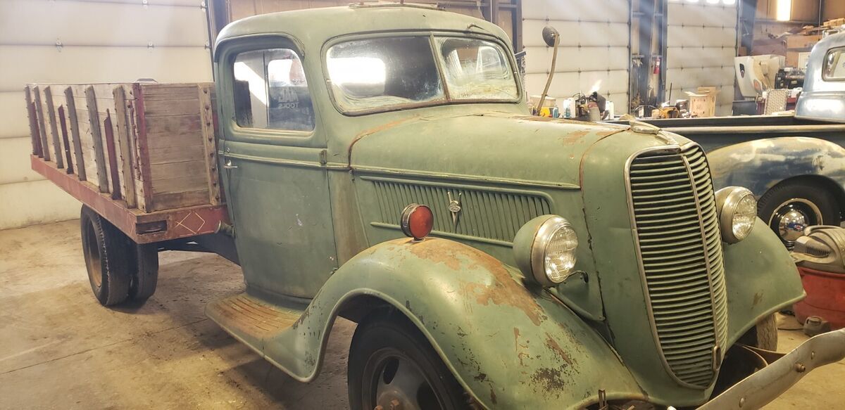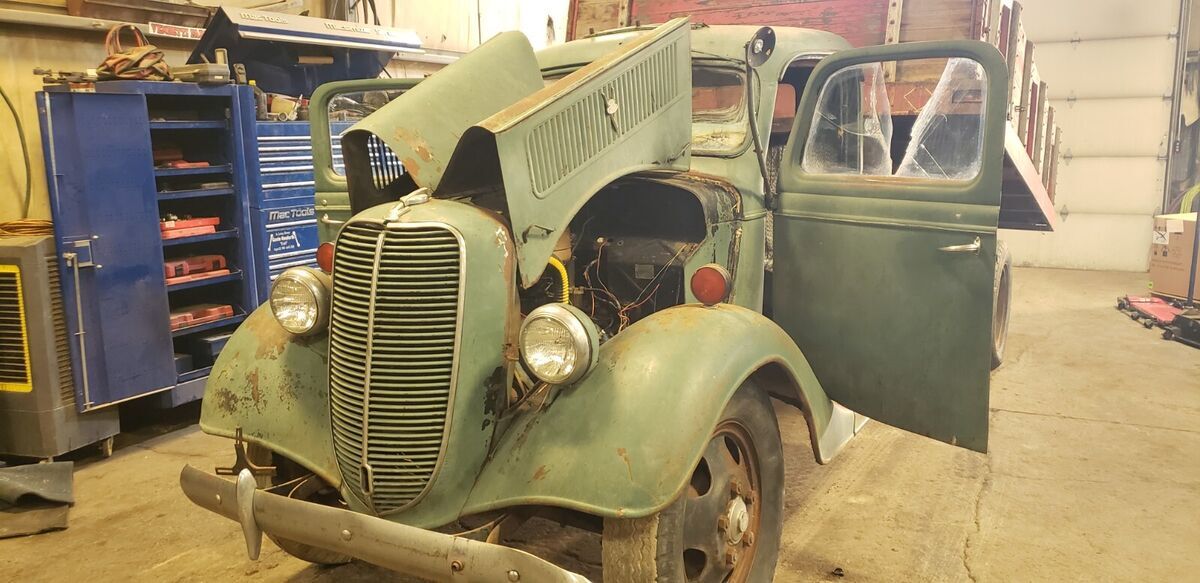 1937 Ford Truck/Flathead V8Kansas barn find!https://www.youtube.com/watch?v=IwA8sI6HHm0 or go to YouTube and search Corts 1937 FordPurchased from the original family here in Kansas, this truck is a true time capsule. Right down to the GB + SA etched into the glove box door - (it later became GB + SB!).Now that is some farm romance!If you are looking for a truly original piece of history, this one is for you. It appears it was painted once, many years ago, but otherwise retains its originality. You can see just with a quick look that it was loved and well taken care of. It spent most of its years in the barn, and due to this it is rust free. It will need some glass, as things were moved around in the barn and broke two pieces, but glass kits are pretty cheap and readily available. About $300 here on eBay.It is getting harder all the time to find pre-war trucks, but finding an original that is this complete and straight is nearly unheard of. The grille is exceptionally straight, the fenders are not perfect, but very nice. The odometer shows 20k miles, and I am nearly positive that is original, as the 1984 title I have shows 17K miles. The engine fires up and sounds great, the brakes work, the transmission shifts through all the gears. It currently has open exhaust - so it is pretty loud!Just a great old truck that is ready for its new owner, and with a little tinkering will be ready for grandkid rides, and parades!I have sold a lot of old trucks here with no disappointments so please read my feedback. Also - this truck will haul nicely on an 18-20ft trailer behind a pickup, or I can help you with shipping. I am fine with it setting here while you make arrangements, as long as it is paid for. Please call or text Cort at 620-786-5172 with any questions.