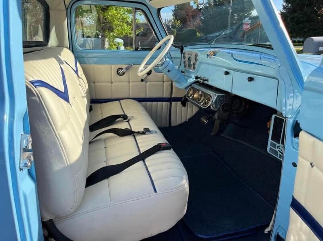 This 1954 Ford F100 has been restomoded with updates to the exterior, interior, and drivetrain. The owner has had it for 1 year and the vehicle runs great. The color is blue and the title is clean. The mileage is 10000. Vehicle Details No rust issues its ready to show. 1956/54 F100 31k OBO This Truck is beautiful and quite unique. Built by an older guy in Texas have his contact info. Cab is from a 1954 model (thus titled as a 54. The frame is from a 1956 F100. Truck was built from the ground up in the early 2000’s. Born in Texas to a retired husband and wife, it became their casino truck and has a beautiful dash and differential cover painted to represent “Lady Luck” The engine is a 350 out of an old Cadillac, has a mild cam upgrade and wonderful sounding exhaust. The front end is completely custom and outfitted with lights from an old Chrysler Windsor. Looks slick if you ask me. It originally came with big white walled tires and wheels. I swapped them out for a more restomod look and went with Vision kidney bean style. I have both sets. Has power steerin, vintage air etc.. truck is well cared for, stays on a tender, started regularly and driven when it’s nice. Paint is still beautiful, looks much better in person. I’d say it’s an 9/10 I drive it.. it’s not babied, it’s enjoyed. |