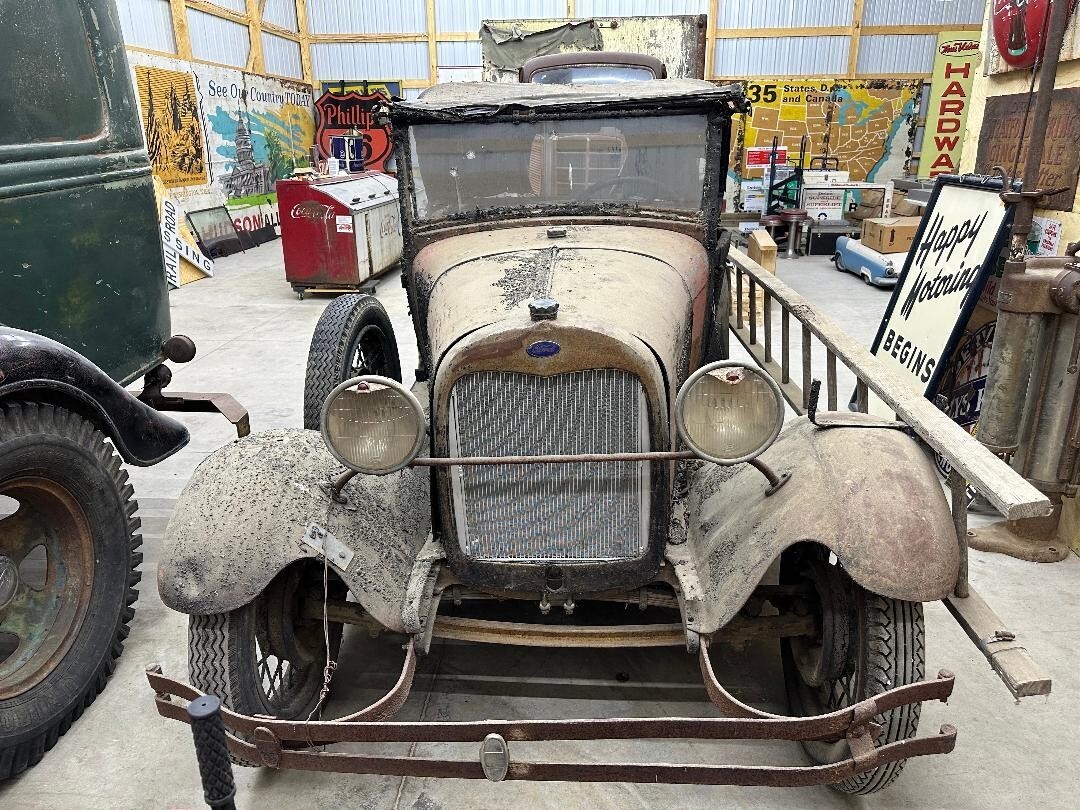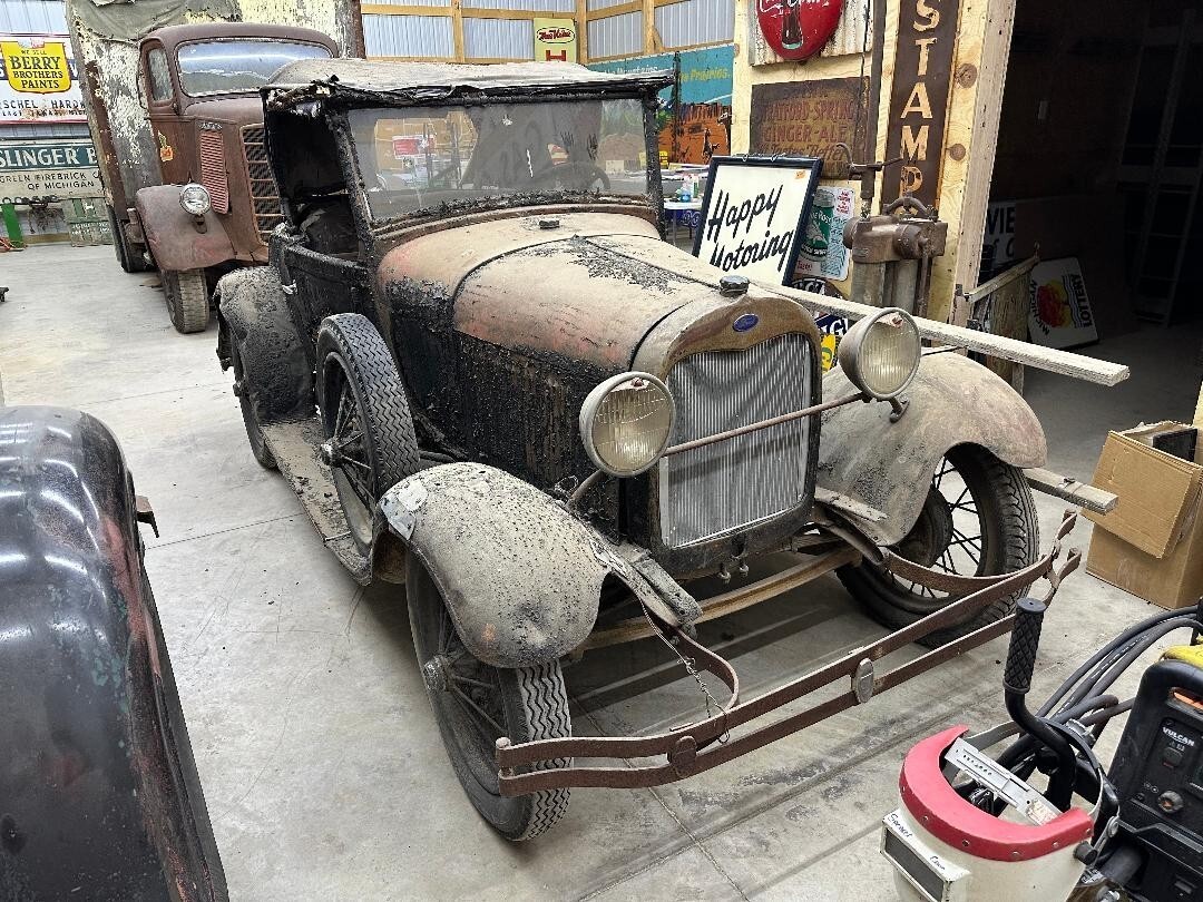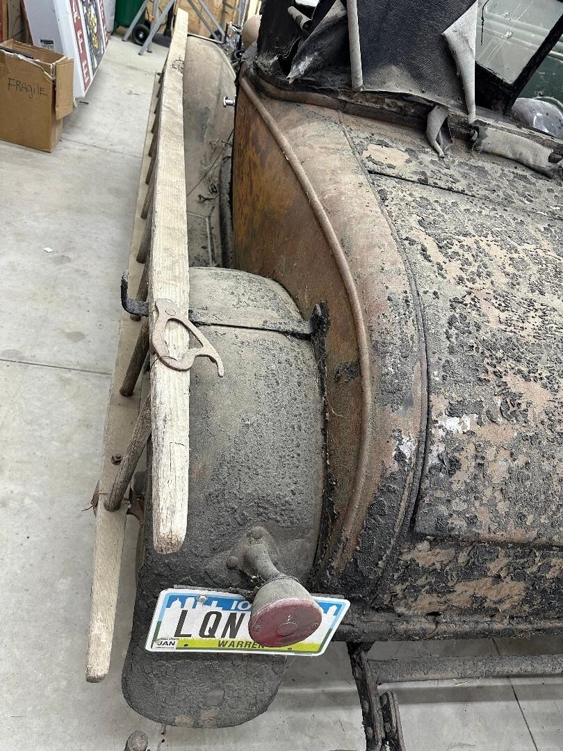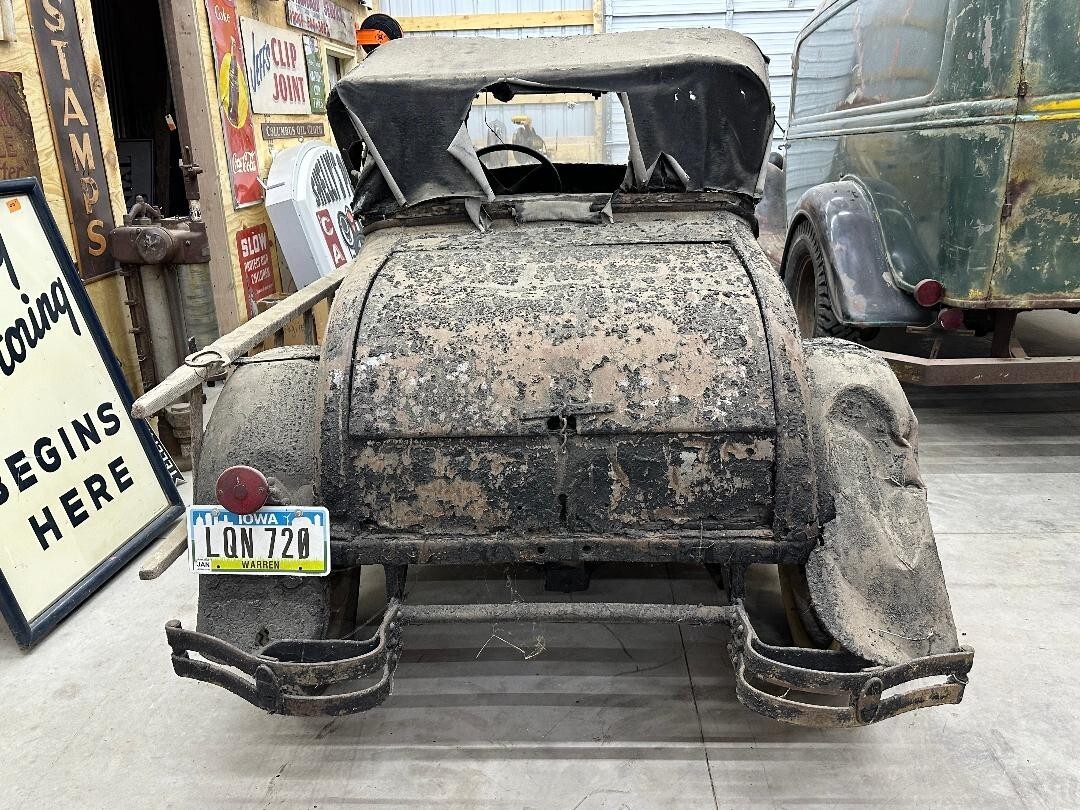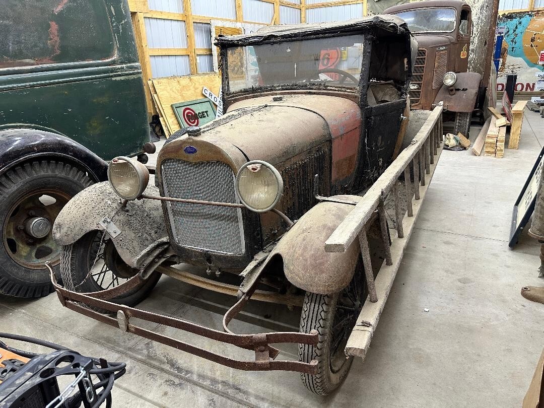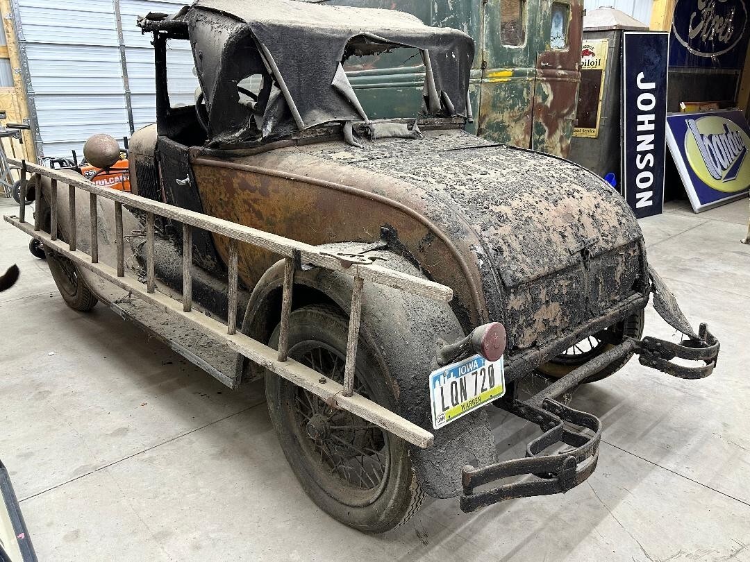 DESCRIPTION 1929 Ford Model A Roadster. In February 1929 Ford Motor Company had sold one million Model A's. Five months later the company had sold two million. It may have seemed like everybody had a Model A, this example was purchased by an Iowa car collector because he thought it was a great way to show how people during both the Depression and World War II had to 'make do' and the Model A could handle any task you could throw its direction. This Model A roadster was purchased non-running during the 1960s in rough condition in Alexandria, Virginia. The former owner was a painter by trade, welding brackets on the fenders of the A to hold his ladders, using a screen door hook to keep the door closed, a chain to raise the trunk and tar to seal the windshield. It remains just as he found it. Since I purchased it a few years ago we’ve gotten it running again and installed a new radiator.Runs, drives and stops. We’ve driven it all over my place but have not had it on the road. Has a clear title and is currently registered. Payment due within 5 days of purchase. Local pickup in Indianola, Iowa by appointment only. Storage available for up to 90 days. Any questions just ask. THANK YOU! |