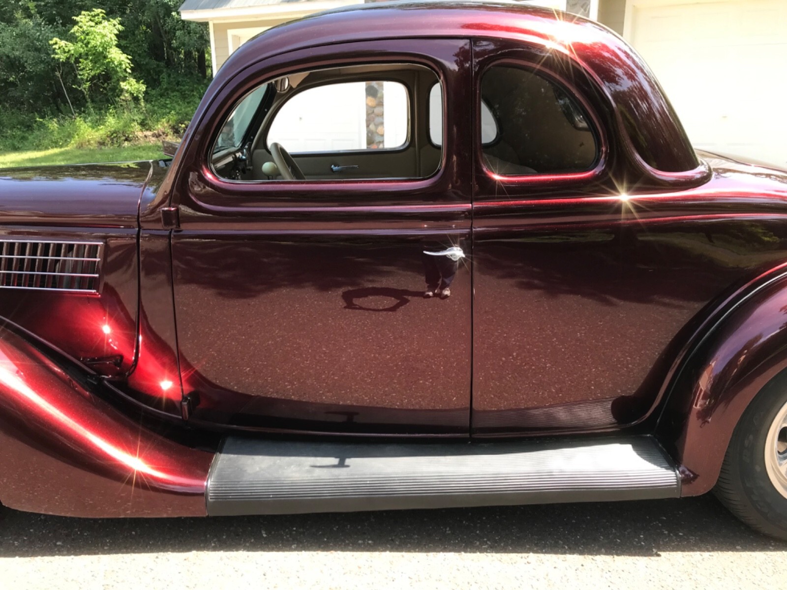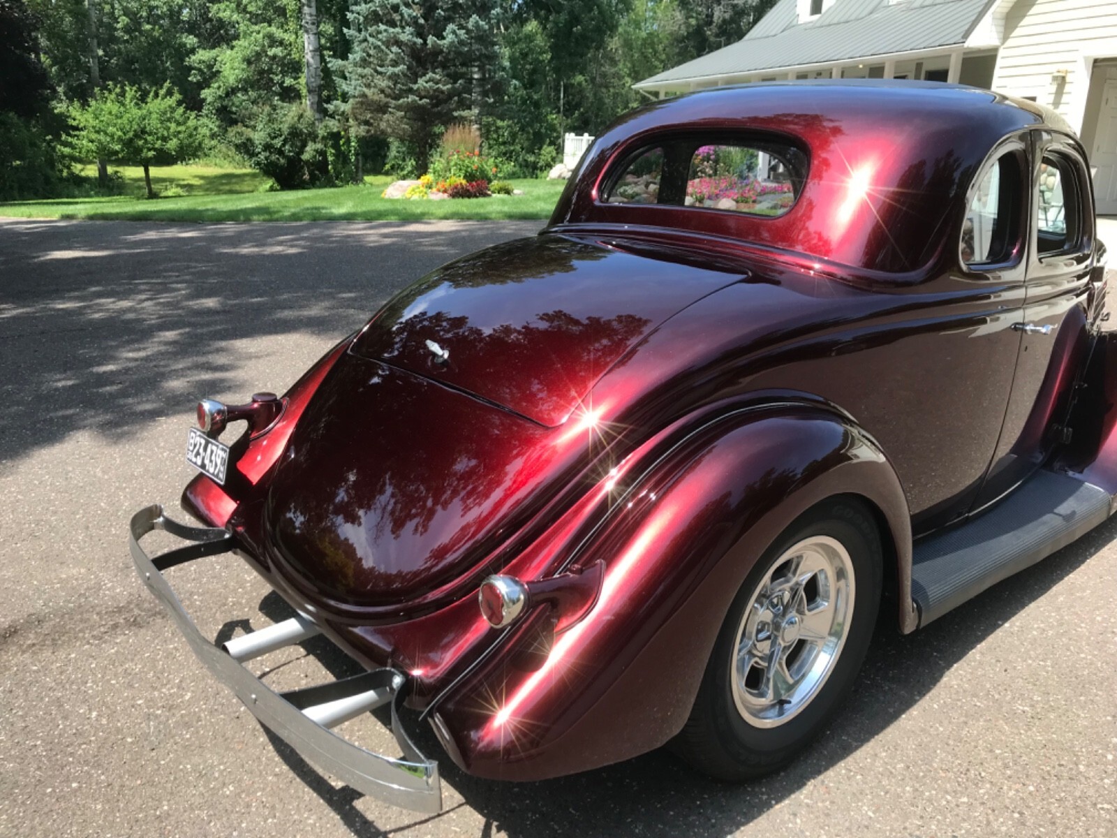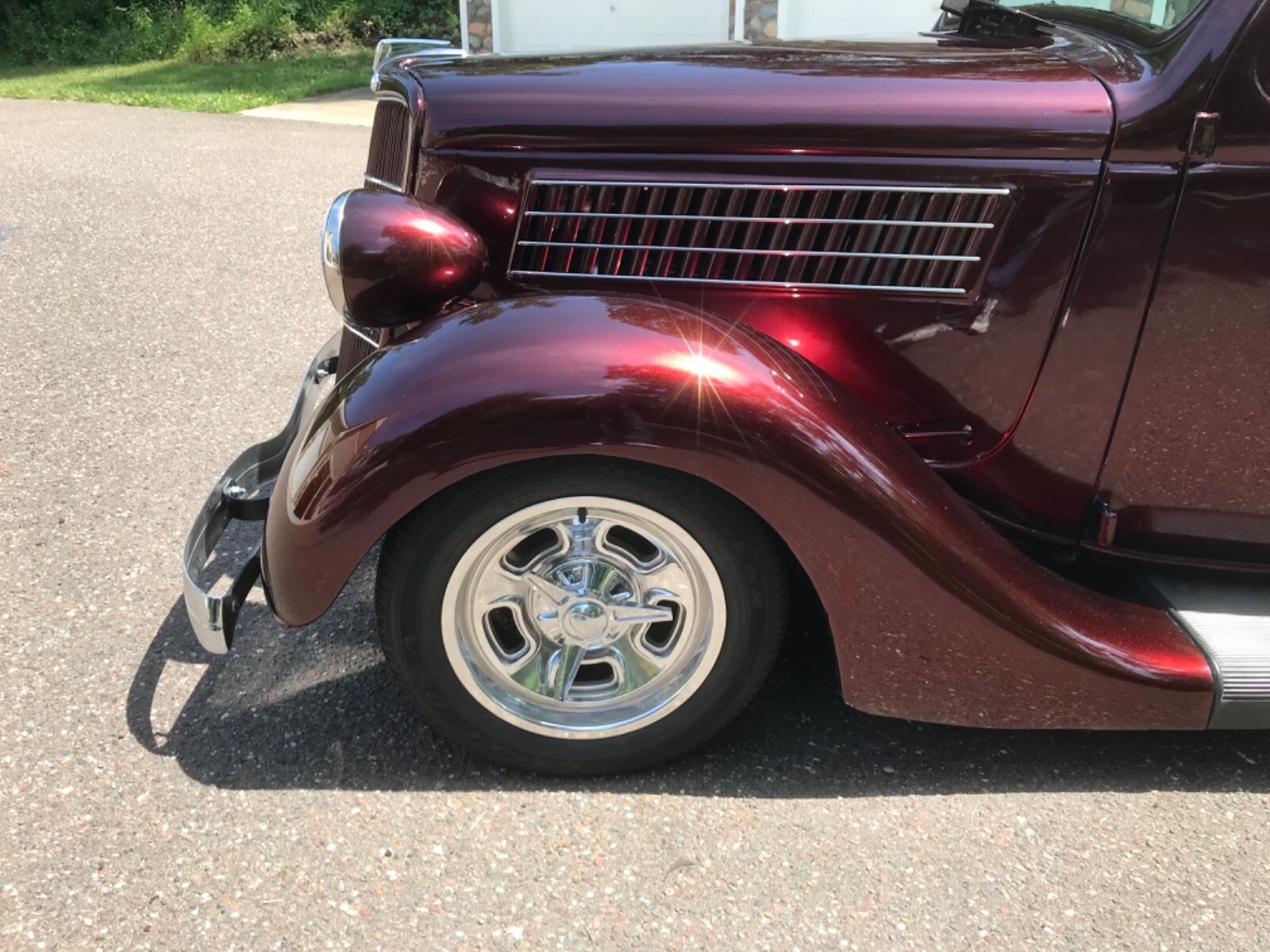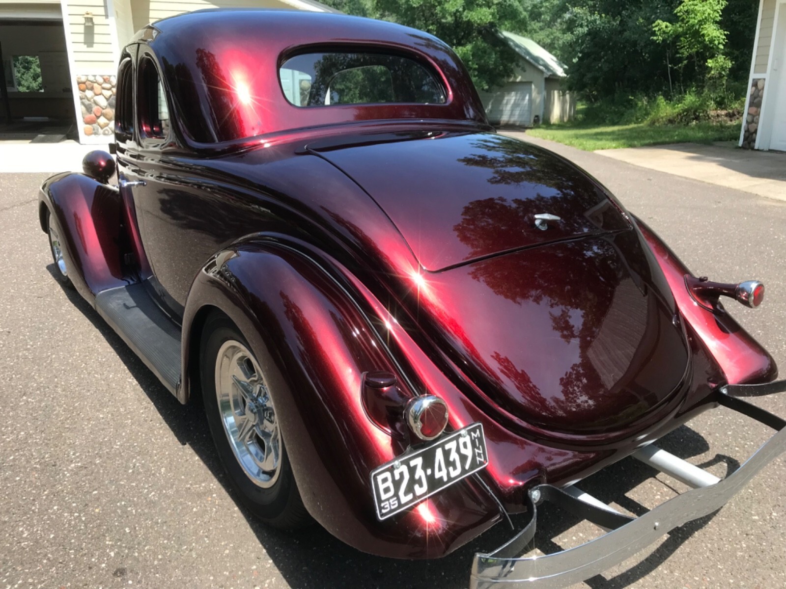 1935 ford 5 window coupeAll original steel body fenders hood trunk grill Engine351 rebuilt w/ roller motor lifters and rockersAluminum heads, aluminum intak, Msd ignition TransmisionC4 automatic w/manual shift valve bodyNot a normal automatic, you have to shift it like a manual transmission, but there’s no clutch RearFord 8 inch rear end with 4 ba, coil overs and disc brakes FrontHeidts independent front InteriorComplete custom leather interiorTouchscreen radio, 8 speaker, subwoofer, amp, power windows, all new gauges, new steering column, new leather wrap steering wheel, dash and all interior moldings have been professionally woodgrainedAll new door handlesTall lowcar shifter Pain, older paint still shows good not great but goodBlack cherryBody and paint are good not great but good has some chips, etc. New Rims and tiresVoss rims 15” front 17” backNew tiresNew gas tankAll new wiringNew exhaustAll new glassPower windows in the doorsFront and rear windows can open but not advisable. They’re very hard to get closed againHas a vintage air heat and air unit installed under the dash heat is working air conditioning needs to be finished Four-wheel disc brakes New bumpers, front and rear This was a stalled project we took on. Somebody started at 25 years ago. He got pretty far and quit, we took over on it and got it this far. We have a couple hundred miles on itruns and drives good.We are thinking he intended on building a street/drag car considering the big motor manual shift valve bodyWe have a couple hundred miles on this car and it seems to run out very wel, body and paint are only OK. More of a driver quality. Radio sounds excellent. very comfortable interior.Again, this is a driver quality car. The pictures may show that it looks perfect. It is very nice however not perfect.