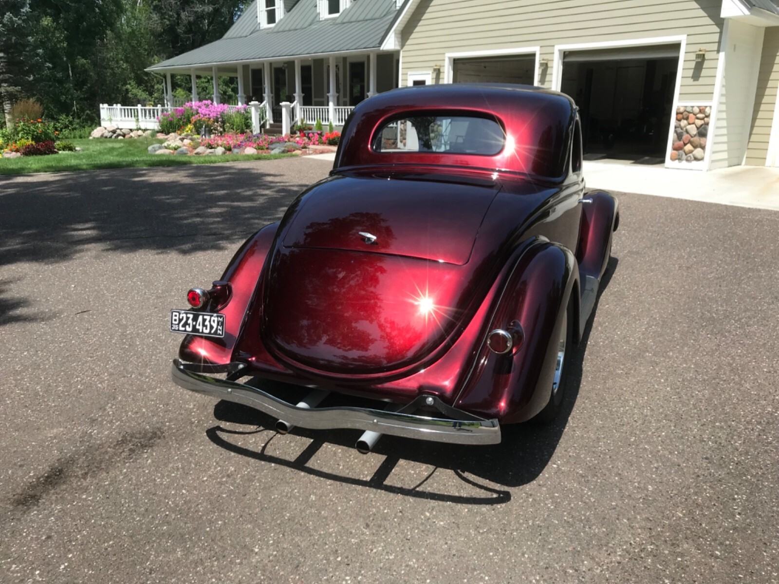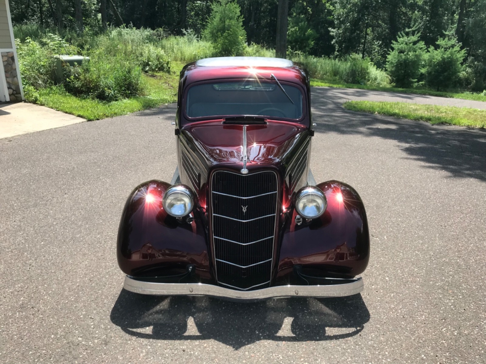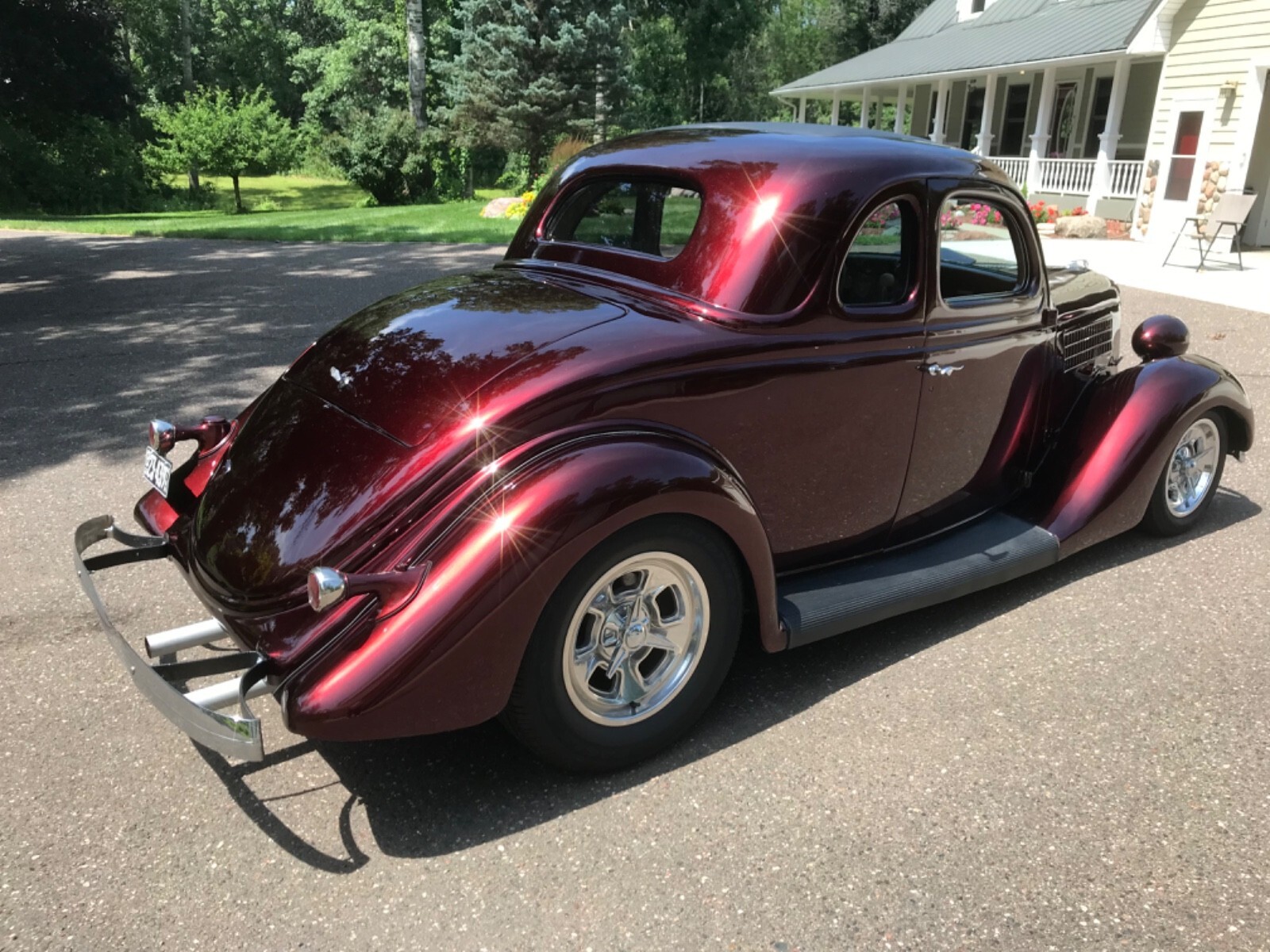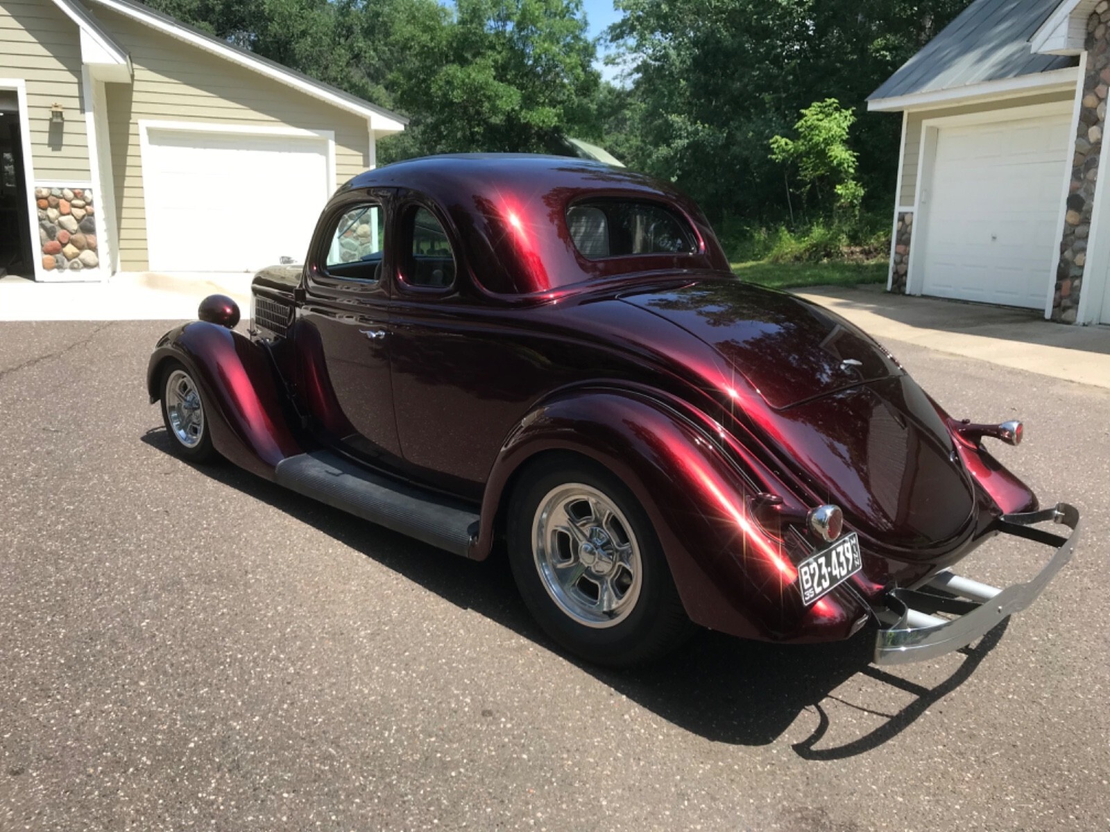 1935 ford 5 window coupeAll original steel body fenders hood trunk grill Engine351 rebuilt w/ roller motor lifters and rockersAluminum heads, aluminum intak, Msd ignition TransmisionC4 automatic w/manual shift valve bodyNot a normal automatic, you have to shift it like a manual transmission, but there’s no clutch RearFord 8 inch rear end with 4 ba, coil overs and disc brakes FrontHeidts independent front InteriorComplete custom leather interiorTouchscreen radio, 8 speaker, subwoofer, amp, power windows, all new gauges, new steering column, new leather wrap steering wheel, dash and all interior moldings have been professionally woodgrainedAll new door handlesTall lowcar shifter Pain, older paint still shows good not great but goodBlack cherryBody and paint are good not great but good has some chips, etc. New Rims and tiresVoss rims 15” front 17” backNew tiresNew gas tankAll new wiringNew exhaustAll new glassPower windows in the doorsFront and rear windows can open but not advisable. They’re very hard to get closed againHas a vintage air heat and air unit installed under the dash heat is working air conditioning needs to be finished Four-wheel disc brakes New bumpers, front and rear This was a stalled project we took on. Somebody started at 25 years ago. He got pretty far and quit, we took over on it and got it this far. We have a couple hundred miles on itruns and drives good.We are thinking he intended on building a street/drag car considering the big motor manual shift valve bodyWe have a couple hundred miles on this car and it seems to run out very wel, body and paint are only OK. More of a driver quality. Radio sounds excellent. very comfortable interior.Again, this is a driver quality car. The pictures may show that it looks perfect. It is very nice however not perfect.