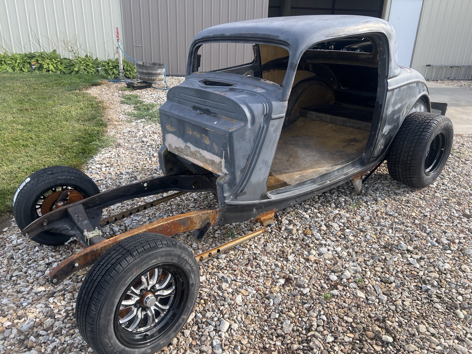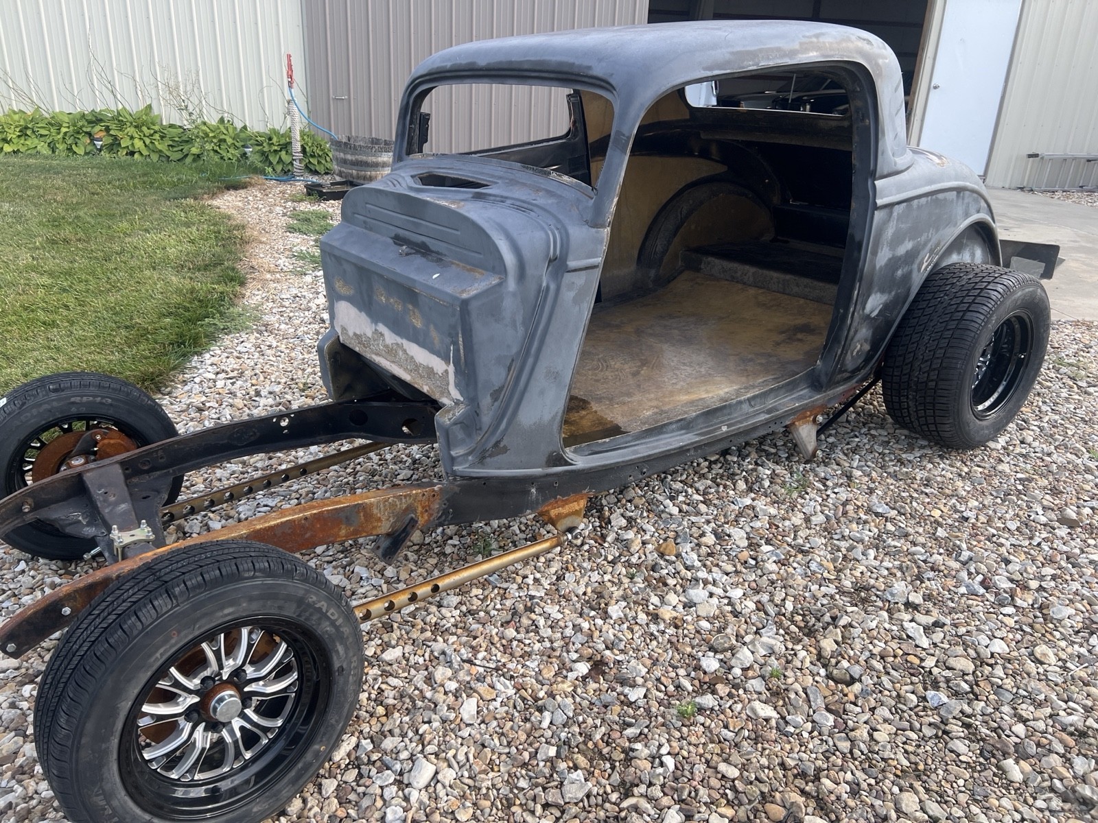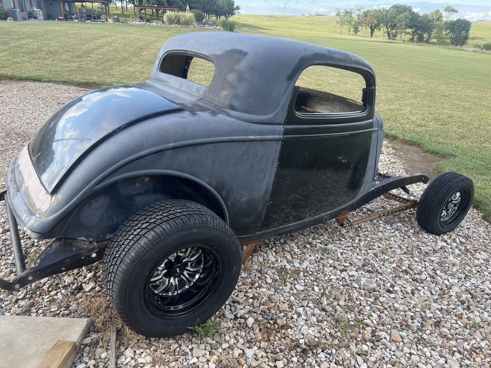 1933 Ford coupe roller Vehicle Details What you see here in the pictures is what I have. Fiberglass body new front suspension and brakes new tires wheels 10 bolt rear end. I do have the rear fenders and – as shown in picture. |