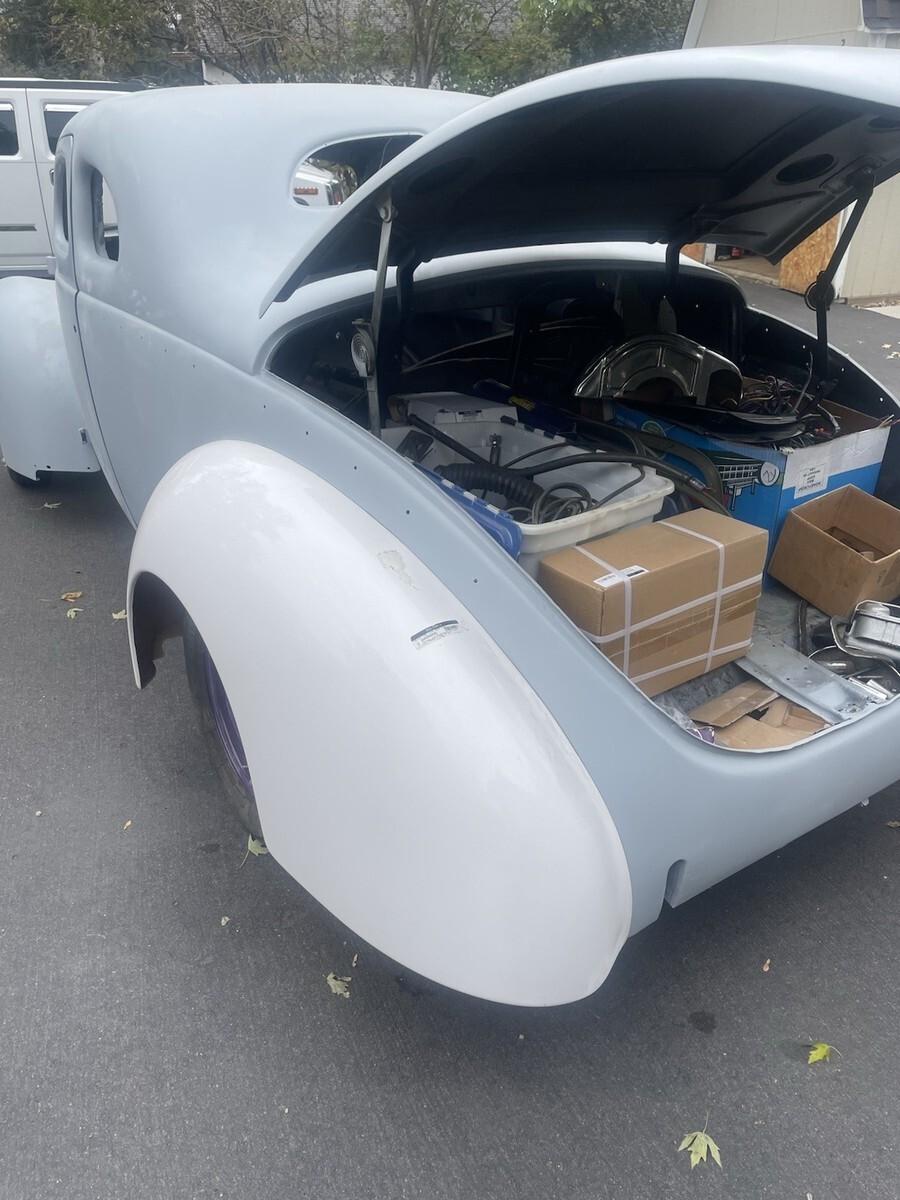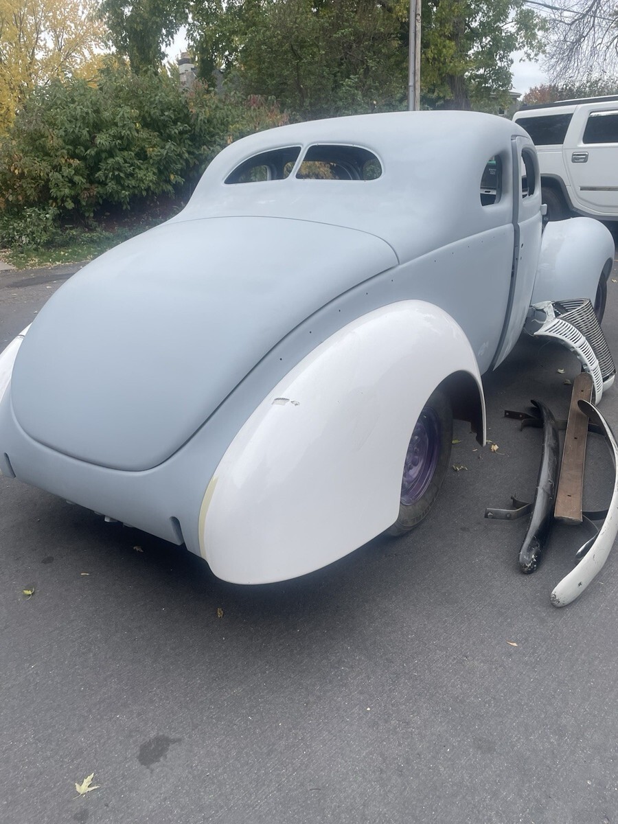 For Sale! This is an incredible opportunity to own a steel body 1940 Ford Deluxe Coupe. A ton of the hard work has been done. It’s in the perfect stage of finishing the project with your own vision. The buyer will receive a lot of car, parts etc for this asking price. Don’t pass this up! -The 40 is in final primer-Chopped 3 3/4”-Power windows needs glass-Custom dash with new gauges-Comes with a stock dash-69 Nova sub frame-Comes with brand new disk brake conversion from Speedway.-Has a full front end rebuild kit all new bushings and rod ends-Aluminum radiator-Have a 68 327 with camel back heads for car.-Rear frame rails have some rust so car comes with second stock frame that is very nice and and also comes with bolt in x frame kit from Speedway-GM 10 bolt rear end-Car does not come with a hood. It was going to be built without one due to engine mods. Car has a clean title and located in MN. Car will come with a bill of sale. The car will be sold As Is with no warranty. Feel free to ask questions. Thanks for bidding! Payment will be agreed upon after sale. We accept many forms to better suit our customers.
