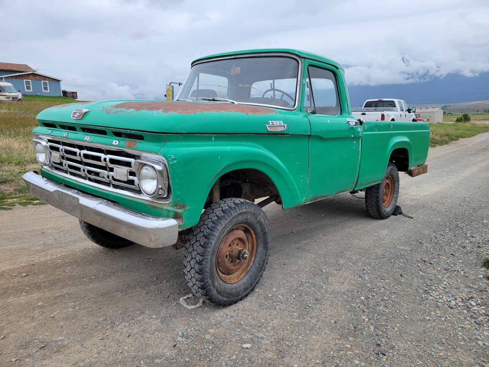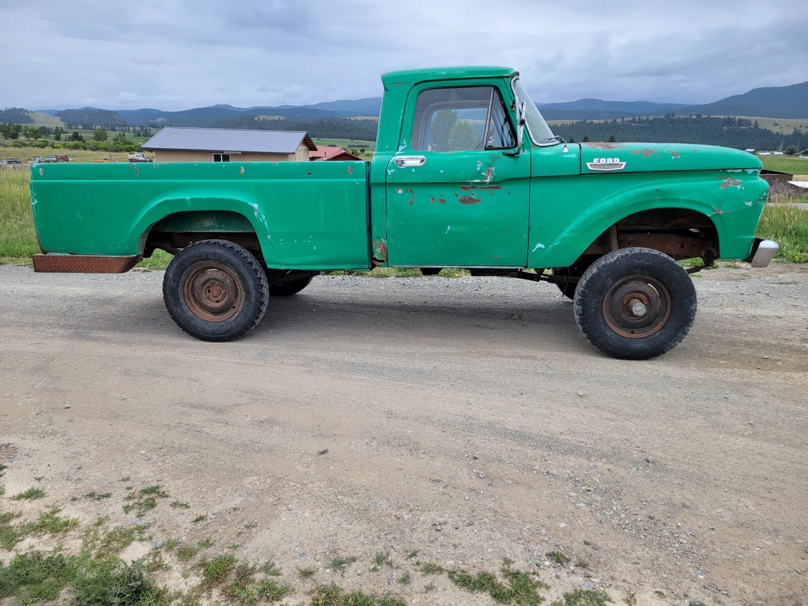 1964 Ford F-100 Custom Cab 4x4 Pickup Truck. Solid body, classic highboy style