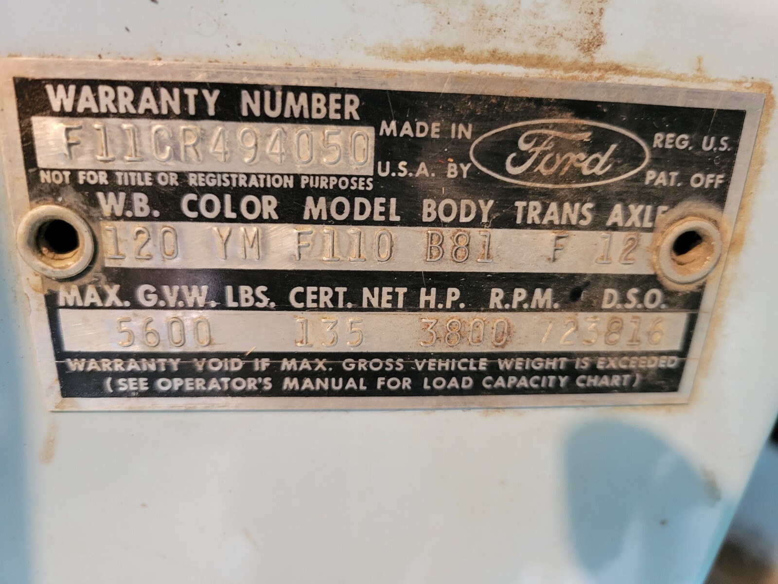 1964 FORD F100 4X4This is a solid truck to build, or just do some work and drive it as is. It is solid and has little rust. This isn't a highboy, as in the traditional slang used to describe a 1967-1977 8-lug ford 4x4's. This does sit higher than the other ford 1/2 tons from 1967 on. This has era correct 16" wheels that are one piece. They take the "innie" style hubcaps. The truck would look cool with coker superlug tires on it. I have full undercarriage/underbody pictures I can send. I can help arrange shipping if needed. I can talk on the phone also if you'd like. I can sell it on or off ebay. Thank you. This pickup does not have an engine. I have decoded the VIN, and it originally had a 292 V8. The bellhousing, transmission, transfer case, and drivelines are all still in this. For those who don't know, this has the divorced transfer case like the '67-'77 highboys. The wheels are the original style 16" skinnies. It rolls and steers fine for loading. BODY The body is really solid for the year. It has minor rust in each floorboard. Easy to repair. The drivers side cab tower has a little rust. It is still solid and not sagging. Easy to repair without jacking the cab up. The rear cab corners will need replaced if your restoring it. They are pretty easy to do too. Minor rust in the bed floor. It will be easy to patch if you decide to. It is still solid and usable. They sell bed floor replacement panels. INTERIOR The interior needs work. If your going low budget, you'll need a seat cover and floor mat. The dash pad needs to be replaced. I'm sure it could use door and window seals. The pics tell the story. This classic ford is sold as-is. I can help arrange shipping if needed. After payment is received, the title will be sent priority mail. |