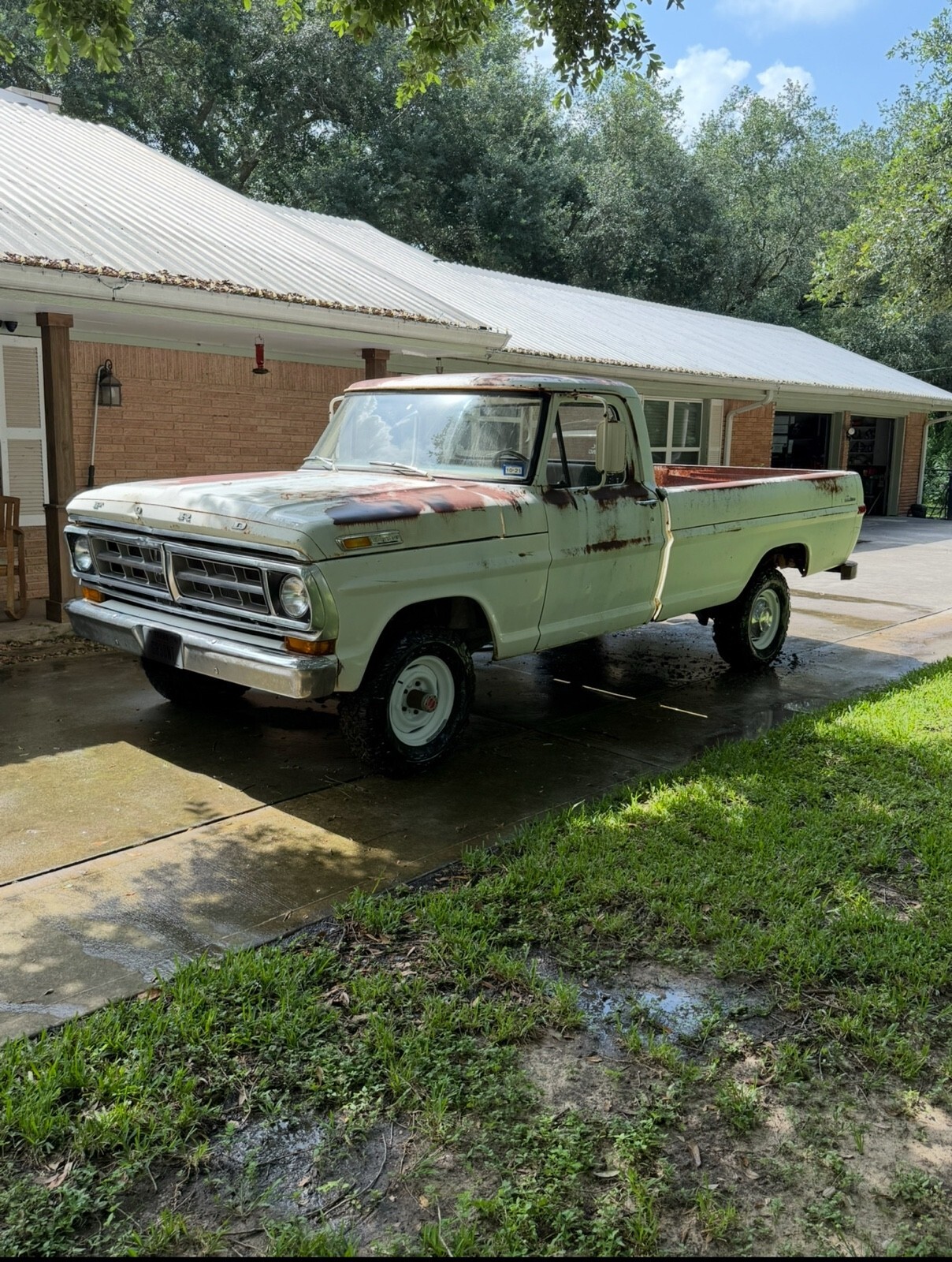 This 1971 Ford F100 is a restomod that has been in the owner's possession for 5 years. The vehicle is drivable and is primarily used for weekend drives. It features a clean white color, making it a stylish and versatile option for leisurely outings. With its classic design and modern upgrades, this Ford F100 offers a comfortable and enjoyable driving experience for its owner. Vehicle Details 1971 F100 4x4. FE 360. 4 Speed. |