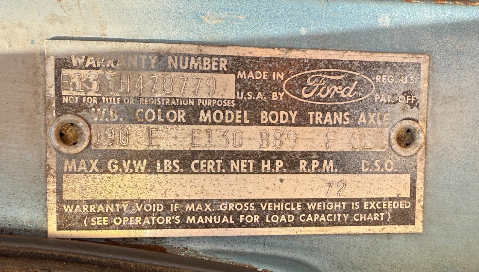 - Color: Viking Blue/Medium Blue Metallic, Ford M1448 (color code E)