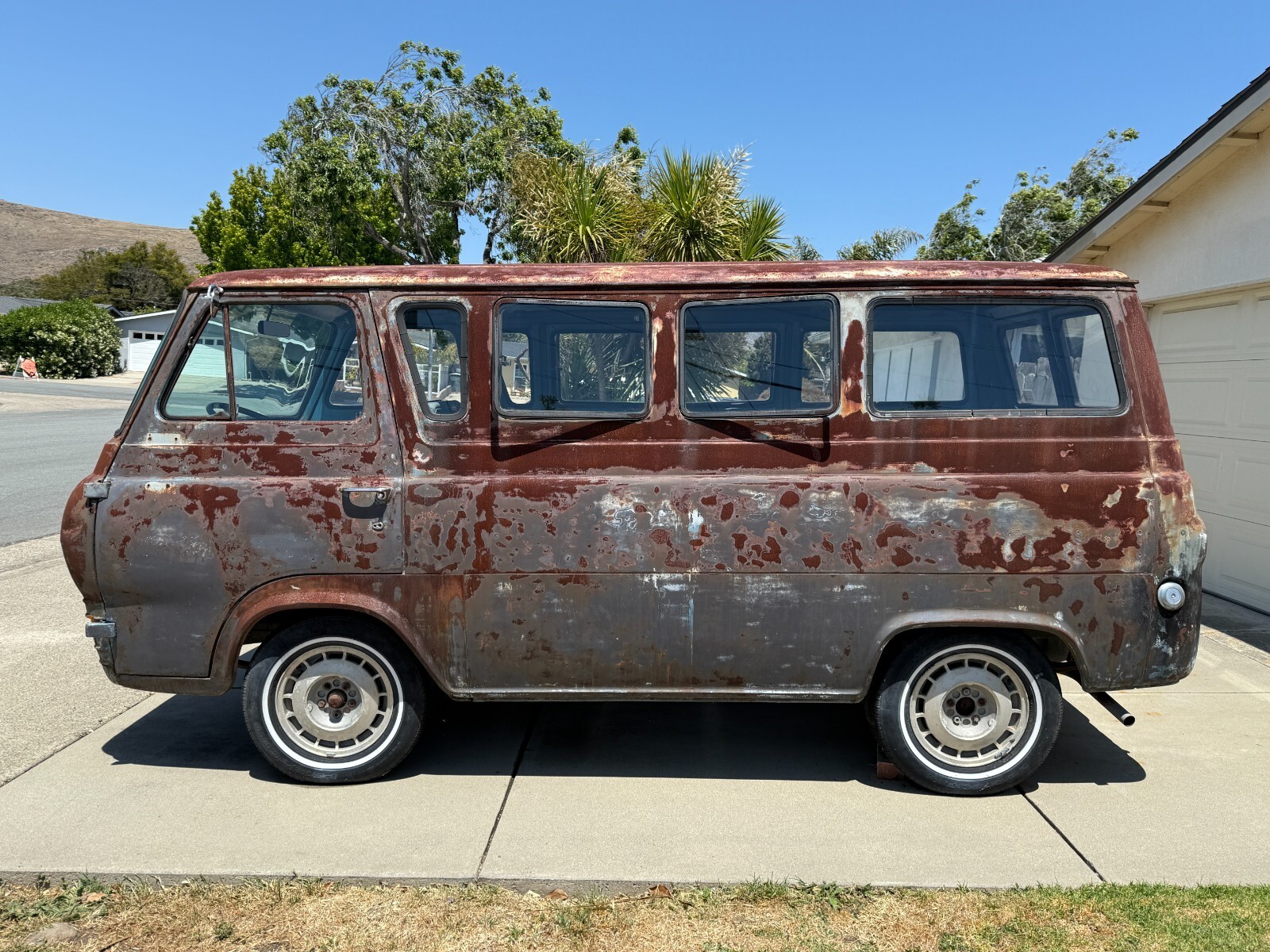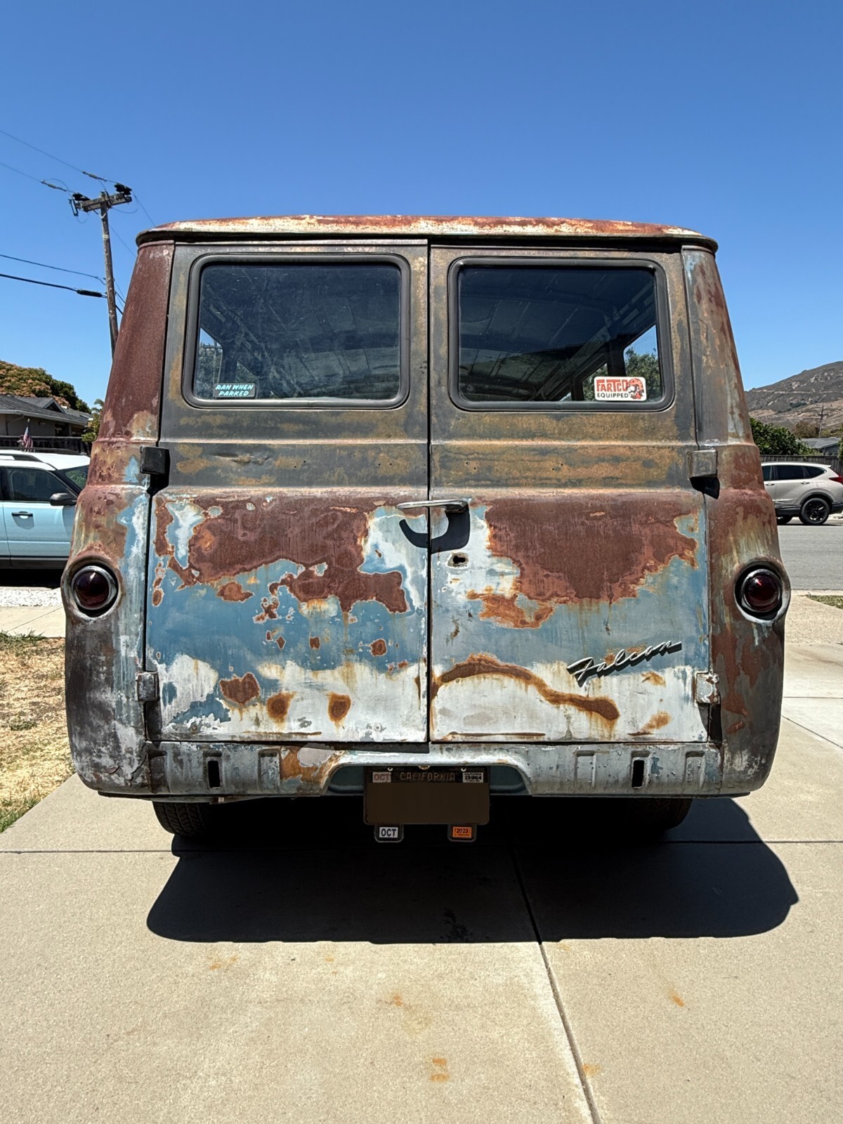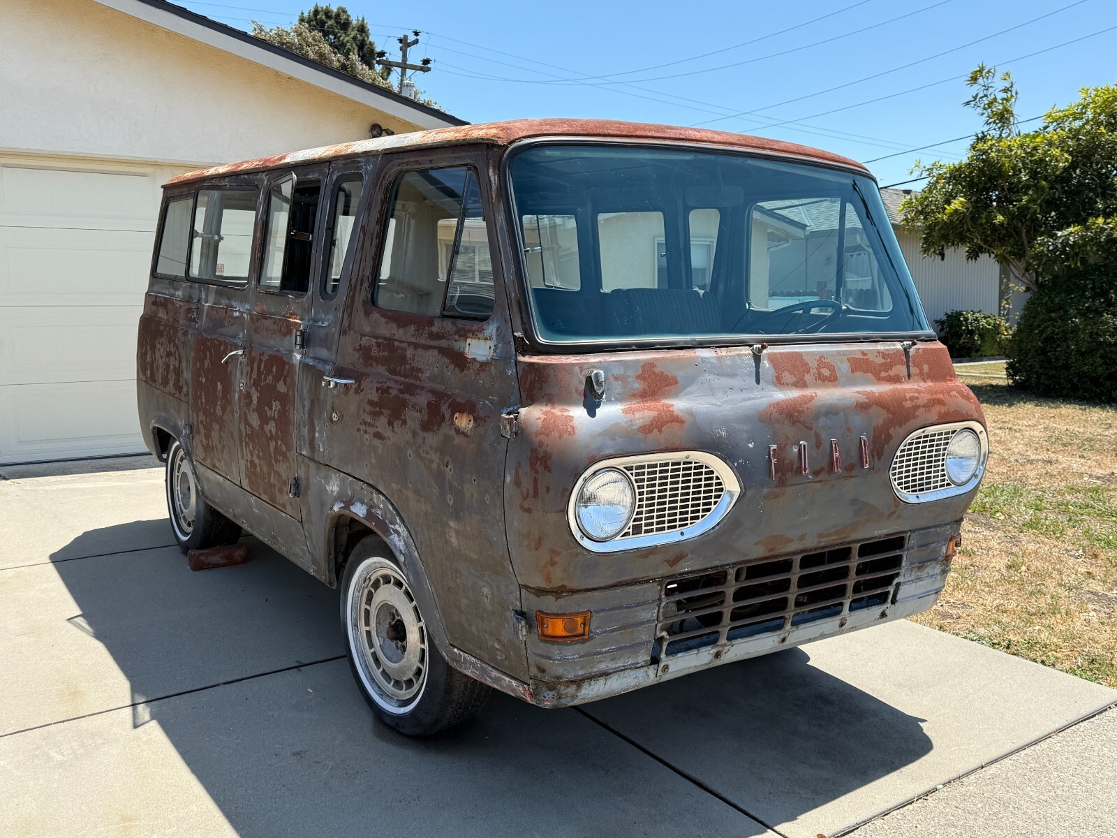 1964 Ford Econoline Falcon Deluxe Club Wagon. Clean salvage California title in my name, YOM plates, last registered in 2023. Original California van. Ford 200 six cylinder engine with professionally machined and rebuilt head (zero miles on it, never run). Block has poor compression on cylinder #6 so the build was stopped. Engine rod and main bearings look good, checked with plastigage and turns over nicely. Compression issue likely broken piston ring on #6 cylinder. Have receipts for cylinder head machining/rebuild (see photo). Rebuilt radiator (over $500), rebuilt generator, new water pump & thermostat, new fuel pump, professionally rebuilt harmonic balancer, rebuilt distributor, headers with new dual exhaust, mustang gas tank, and much more. 3 speed synchro transmission with new transmission seals, newer clutch. Transmission shifts perfectly. Includes original belly pan (not shown) and original bumpers not installed. All lights work. Matching VIN numbers on ID tag, and stamped in at least two locations on the body. Located in San Luis Obispo, California. The bad: New head but block needs work (no compression on #6 cylinder). Salvage title (no major body or frame damage). Rusty and will need repairs and patch panels, mostly at the bottom of the windshield and at one door hinge. Was a regular driver before old engine spun a bearing and this 200 was swapped in. Details from the VIN plate: - Build date: November 1963
