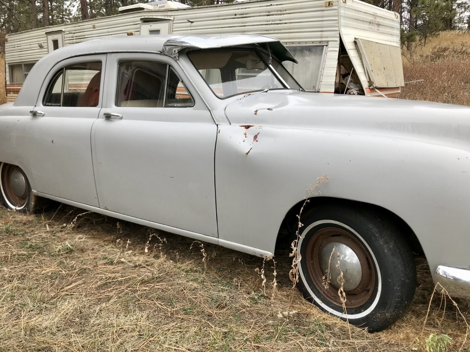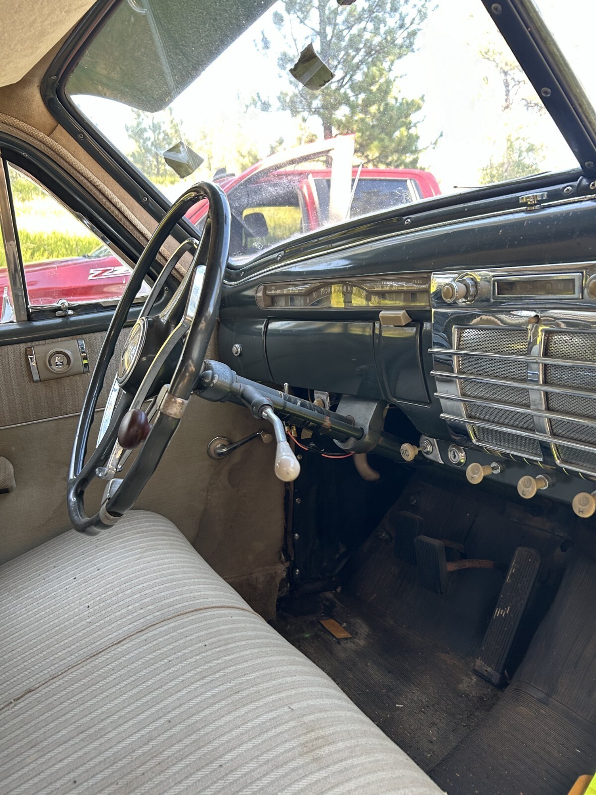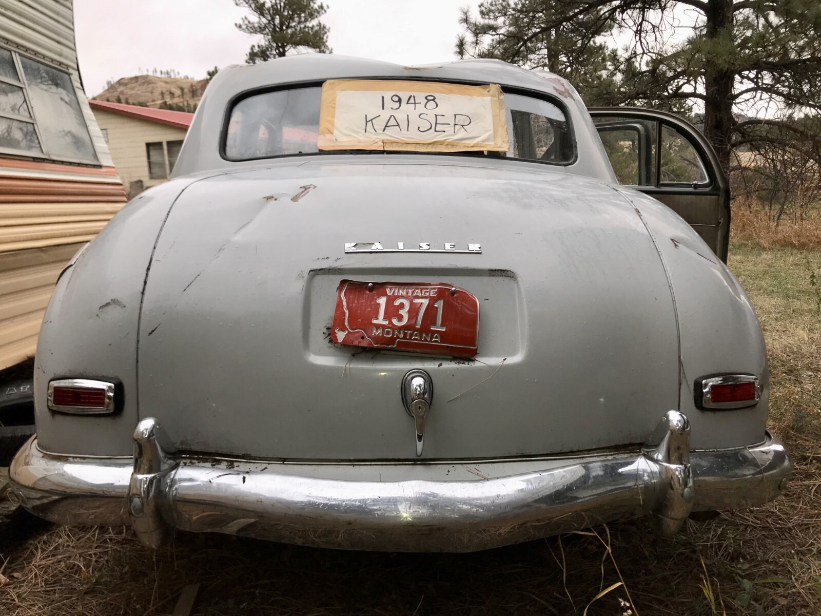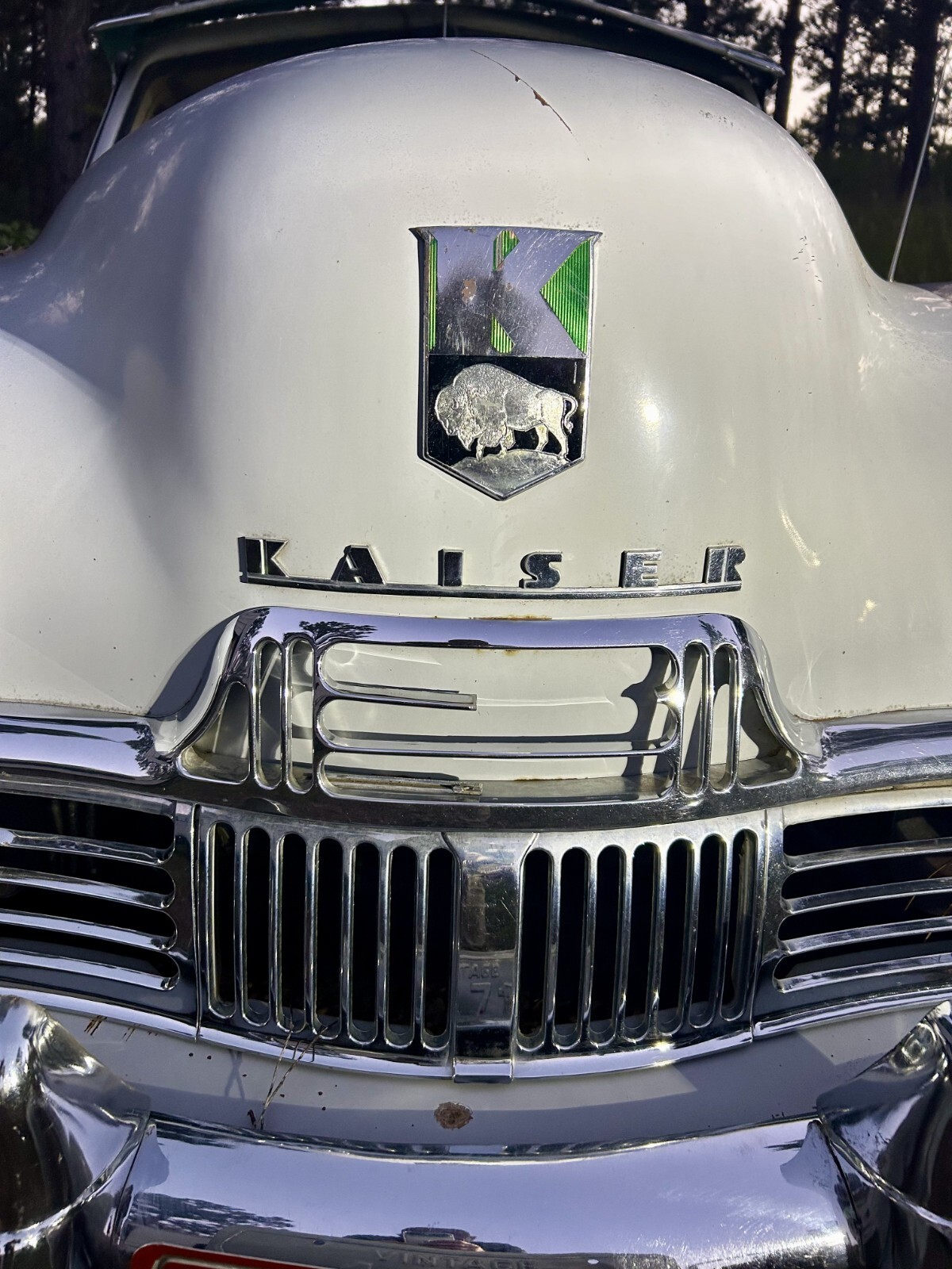 The 1948 Ford Kaiser is a classic sedan with a gray exterior and interior. It has a 3-speed manual transmission, 6 cylinders, and 2WD drive type. This vintage vehicle has a mileage of approximately 23,500 miles and has had 1 previous owner. It features climate control, air conditioning (note, Kaiser called it one of the original "air conditioning" but it does not compare to the modern versions of air conditioning), cloth seats, and power steering, making it a comfortable and stylish choice for collectors and enthusiasts of classic cars. Made in the United States, this Ford Kaiser is a unique and sought-after piece for adding to any vintage car collection.We have been driving it around this summer. It was one of our show/parade cars until the big barn roof collapsed from snow weight, and beams bent parts of the body. This is a family favorite, but my bodywork days are done, and it needs to go to a new home where it can be put back and appreciated. It has all the chrome and parts. Tires are fair. It has all the original dash and interior. Some of the upholstery needs help but most is in great original shape.. Glad to take serious buyer on a road trip. Feel free to bring your mechanic and/or body man.