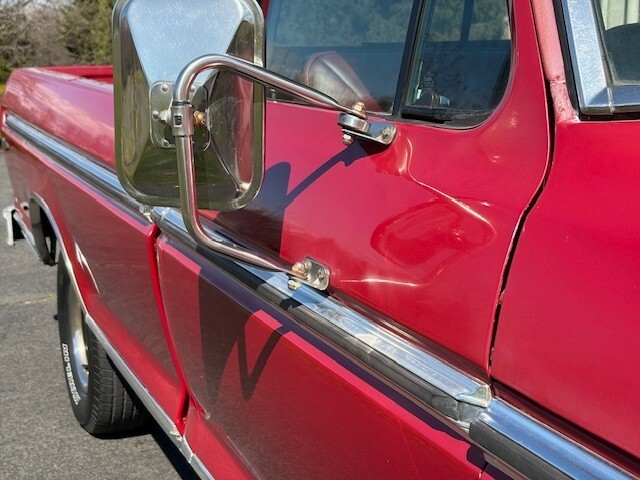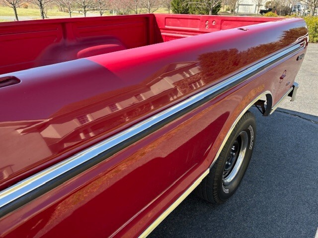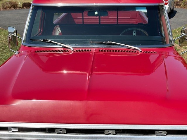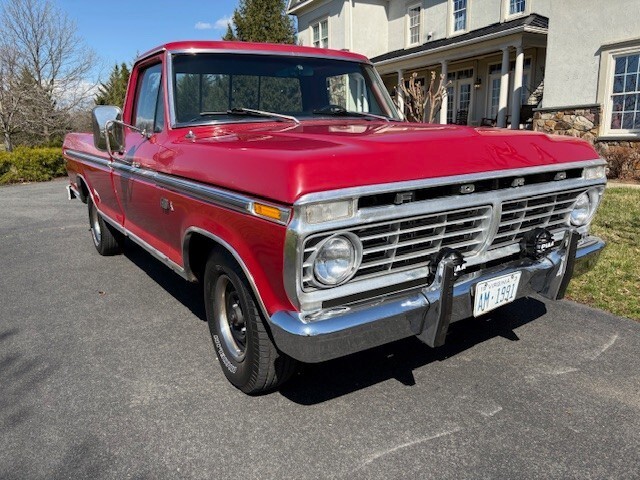 Beautiful 1973 Ford F-100 Pickup - Same owner for first 40 years! 1973 -2013 Now's your chance to own a beautiful classic Ford F-100. First year of the new body-style (1973-1979); designed for ease of driving and versatility. This beautiful truck starts, drives and stops as it should. I have owned and loved this truck for 6 years, during which time I have needed to do very little to maintain it and its great condition. The truck was purchased from its original owner in 2013 (at 110,000 miles) and underwent a comprehensive restoration/refreshing over the next few years. The truck currently has 121,361 original miles. Fortunately, it was born and raised in North Carolina and was garaged since new, so it never saw snow or salt and suffered from no rust. The renovation included a new tranny, rebuild of the original 360 motor, new long tube headers and a Holley carburetor. The original 3 spd cruise-o-matic trans was replaced with a new C-6 trans. All original sheet metal - no accidents or rust. Original steering wheel and a ton of documentation included. - 360 - V8, very strong and smooth; burns no oil; C-6 Auto trans- Ford Candyapple Red- Fleetside; Ranger package- Cold A/C- Power Steering- Power Brakes (front disk; rear drum)- Perfect interior- Original AM radio- Chrome Swing Mirrors- Rear step bumper- Aftermarket accessory gauges (tach does not convey_- Aftermarket PIAA driving lights- Looks and runs great. Just used in 4th of July parade - Full restoration in 2013 - Original 360 rebuilt (per prior owner but I don't have receipt for rebuild)