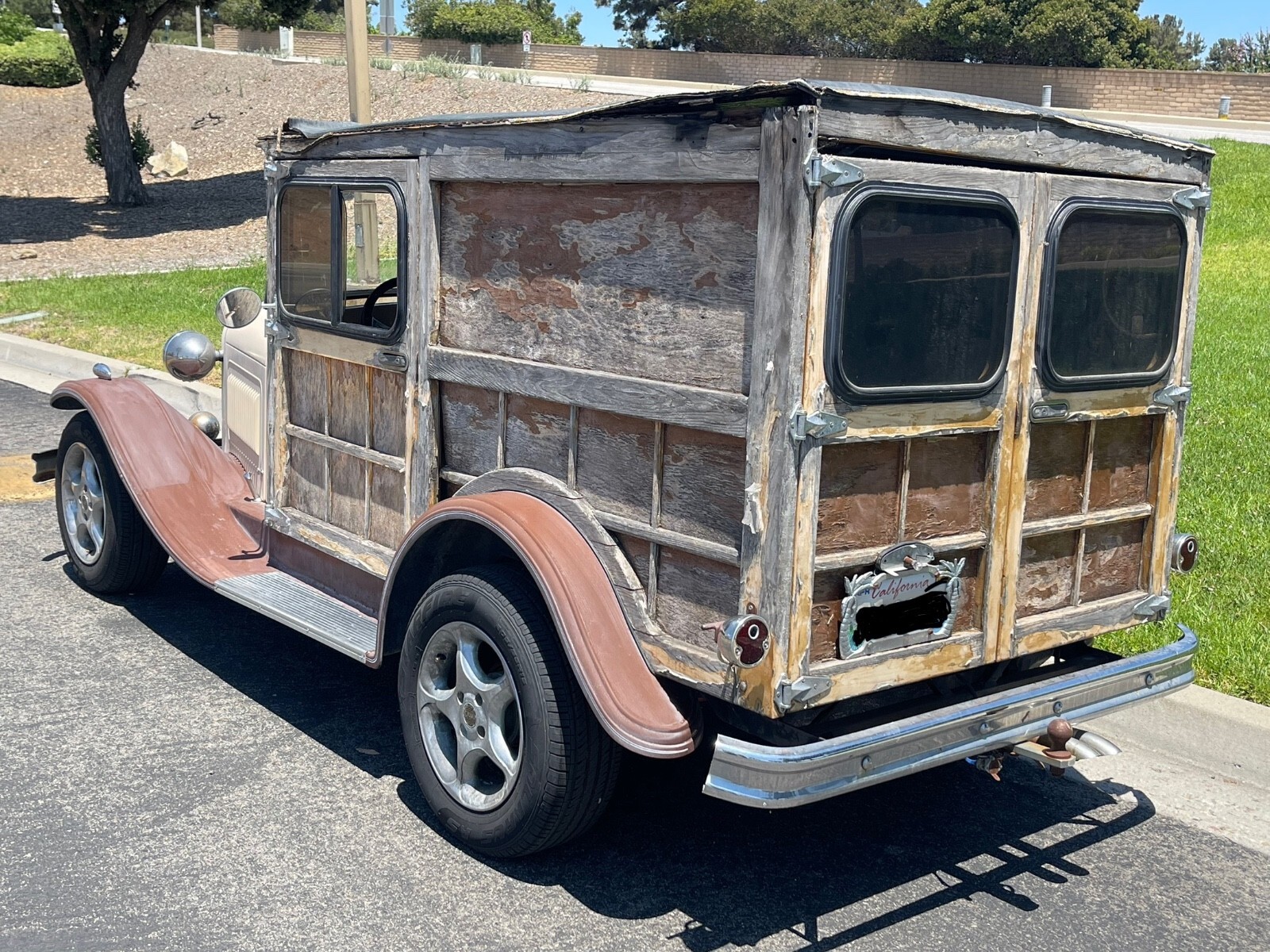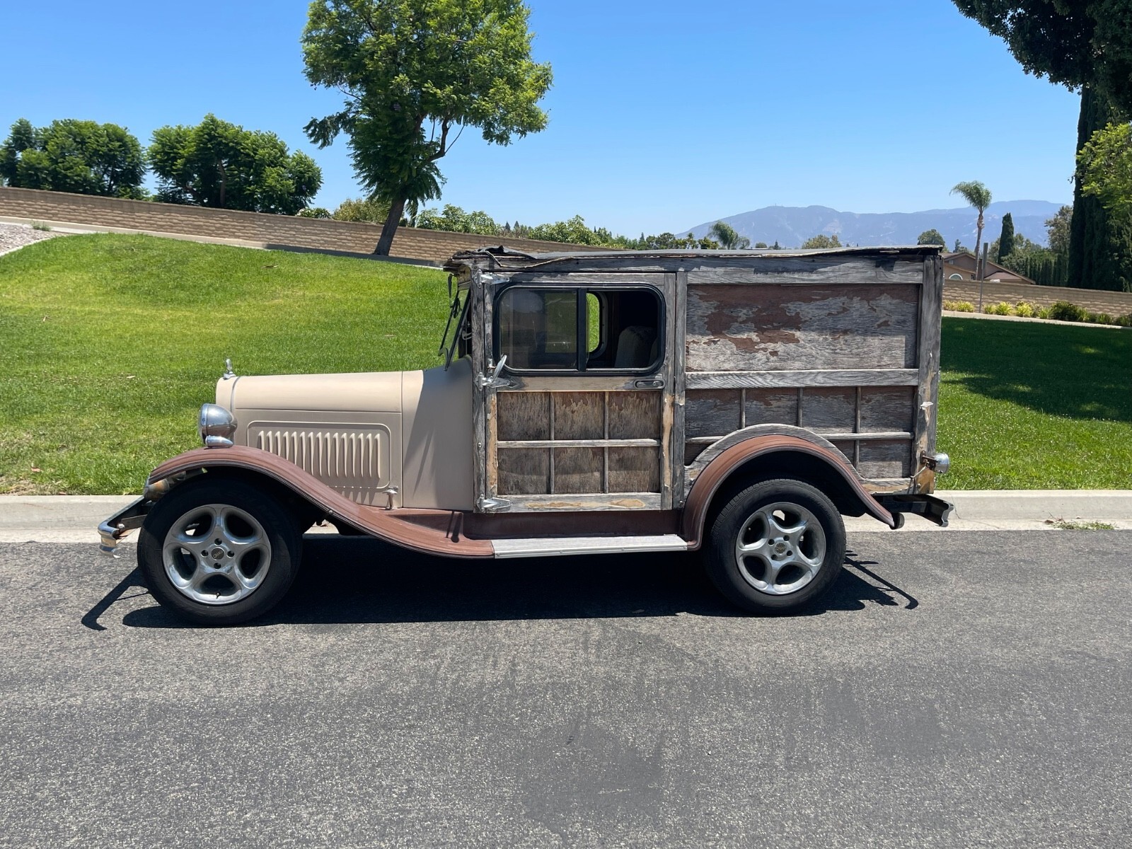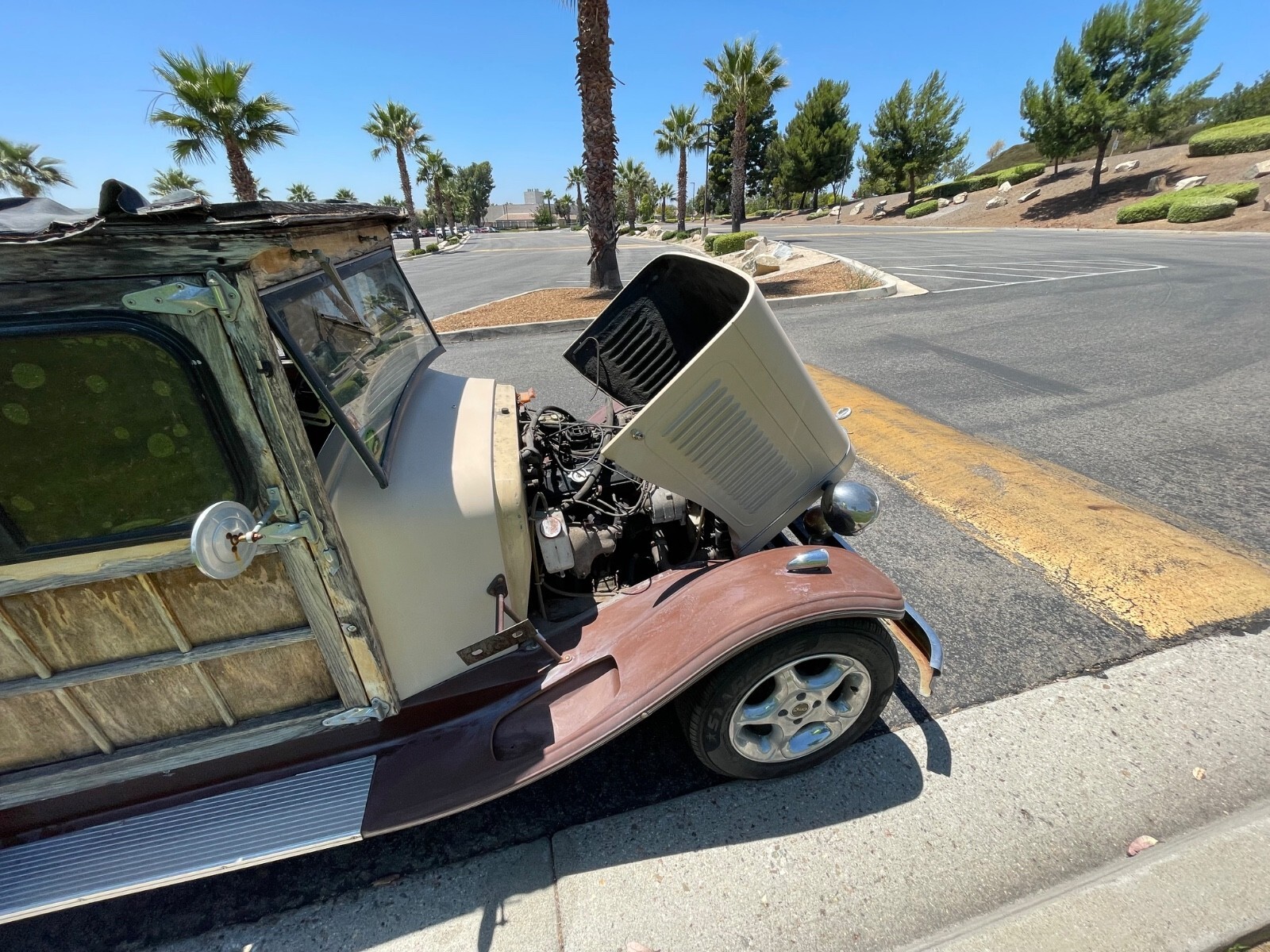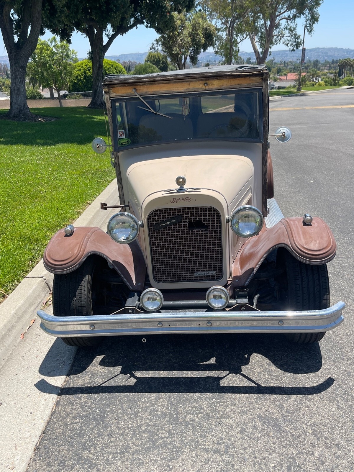 Cool easy project for you Running drivingLocated in Southern California 15 minutes north east of Disneyland 1929 ford style hot rod woody wagonThis was a kit style car built back east in the 80s by a company called splinter auto WorksIt has 1980s Chevrolet Chevette drivetrainFeaturing a four-cylinder overhead valve 1.6 L engineFor speed manual transmissionRack and pinion steeringIndependent front suspensionFour wheel coil spring suspensionFeaturing cruise control, air conditioning, heating wipers and stereoIt is a fiberglass car with fiberglass cowl, fiberglass, one piece, tilt up hood, fiberglass fenders, fiberglass, running boards.Most of the wood looks like it is Oak or Ash It is California registered as a special construction vehicle as a 1929 The title does say 0000Carr has 26,000 miles we believe that to be original to the drivetrain from the donor car when the car was builtThe car will not come with the personalized plates There is a matching trailer that was stored inside since it was builtIt is in really nice shapeAnd can come with the carThere is also the spare tire for the car in the trailer and a spare tire for the trailer inside the trailer along with surf racks to haul your surfboards Unfortunately, the owner got sick and the caretakers forgot about the car outside under the car cover and that’s where it sat for the last 10 years, with the car cover blowing off and disintegrating, and the car getting wet during our mild so cal winters We have recently put a new starter in, new battery, new tires flush, the tank fixed the ignition switch in the wiring So now it starts up runs and drives and you can go down the roadIt still needs a break and headlight to check as we haven’t had time to do that All the varnish is peeling off most of its gone, and more comes off if you hit it with I have pressure garden hoseThis would be an easy project for a cabinet maker or wood boat guy, or someone who wants to take on that style project By removing the rest of the varnish, cleaning the wood with a cleaner, and then treating the wood with a brightener, and then lightly sanding everything down it would be ready for stain and varnish to look pretty again There are some water damaged areas and some wood that is warped It will need new roof material If you’re brave enough, you could fly in and drive this thing home, but keep in mind it has been sitting for 10 years outside, partially covered at timesMost of the hoses and everything look nice and soft, still not hard and cracked The carburetor did have a flat spot in it when we first started it up, but it seems to be going away and running smoother and better every day Today 7/28/25 the headlights have been fixed along with brake lights, turn signals will work, but there’s a part missing inside the column I am listing this for the Neighbors