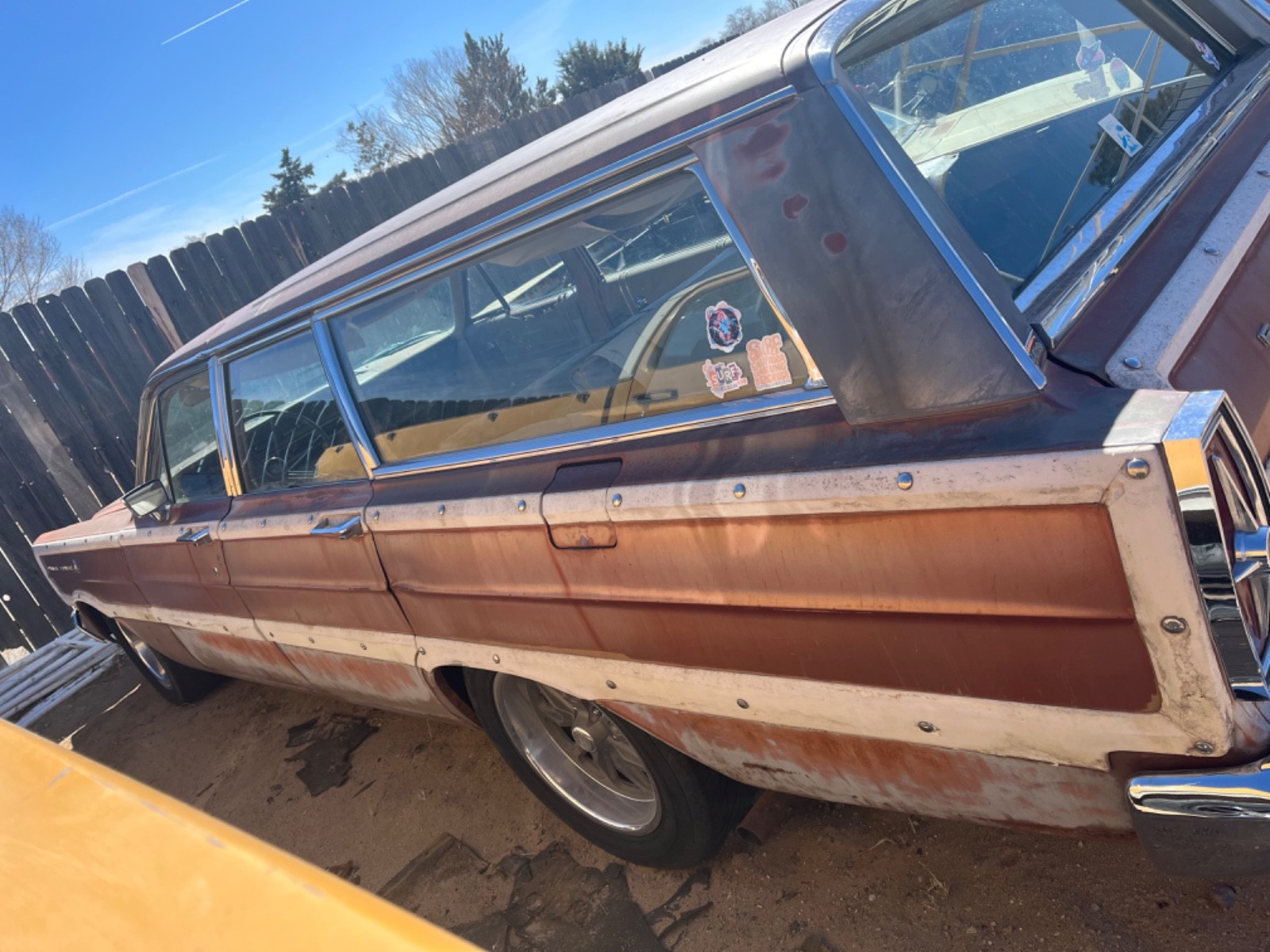 Up for grabs is one 1965 Ford Country Squire station wagon 98% rust free, floors are like new never any rust I installed killmat sound deadener and new carpet kit. It’s been converted to 4 wheel disc brakes and it has brand new US mags 18”-8 in the front and 18”-9’s in the rear . I have a new headliner for it it will need to be installed. It had a 352ci automatic I took that out and bought a bb ford C-6 HD transmission for it but it will need an engine I was setting it up for a 429 or a 460 power plant. Clean title in my name . Really cool wagon that I will never get to it so my loss your gain type thing . I will be adding more pictures as soon as I can. I will entertain 5000 without wheels and tires And also the surfboards do not come with the car. I was going to build it like the picture with the rendering . I already slammed it but not to low it has a very nice stance . Oh and I do have the roof rack and it’s complete and nice condition
