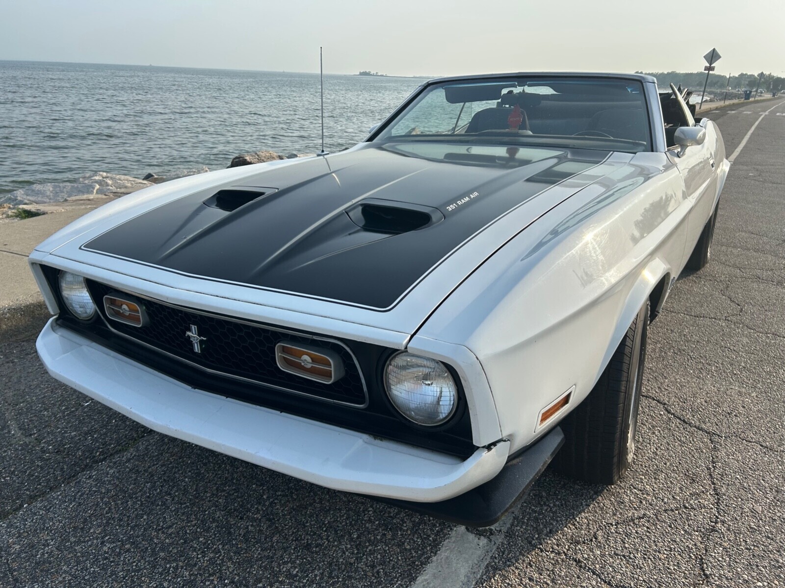 1973 Ford Mustang Convertible 351 Cleveland Q code V8 auto daily driver 5000 miles on new 351 Cleveland engine upgraded to Q code, 3 speed FMX automatic tranny, 109,000 on whole car. Runs and drives great; daily driver. Active Ram air plenum hood. New floors, cowl, radiator support, windshield, front frame rails, carpet, American Racing wheels, tires, radiator, belts, 650 Holley carb, ignition. No radio, original radio bracket is still intact, seats have rips but have nice covers. The dash pad has some cracks in it. Paint / body has some minor imperfections. Roof does not leak. My feedback is 100% positive so buy with confidence. Title status is clean, last registered in Maine, which does not issue a title for cars 25 years or older, so you will receive a bill of sale only. Pickup in Bridgeport, CT. Bring a dealer plate and drive home. Delivery may be arranged to places within 4 hours of Bridgeport, CT for an additional fee. For an additional fee I can pick you up from many airports close to NYC (JFK, LGA, BDL, HVN, etc) andyou can drive home with a dealer plate.