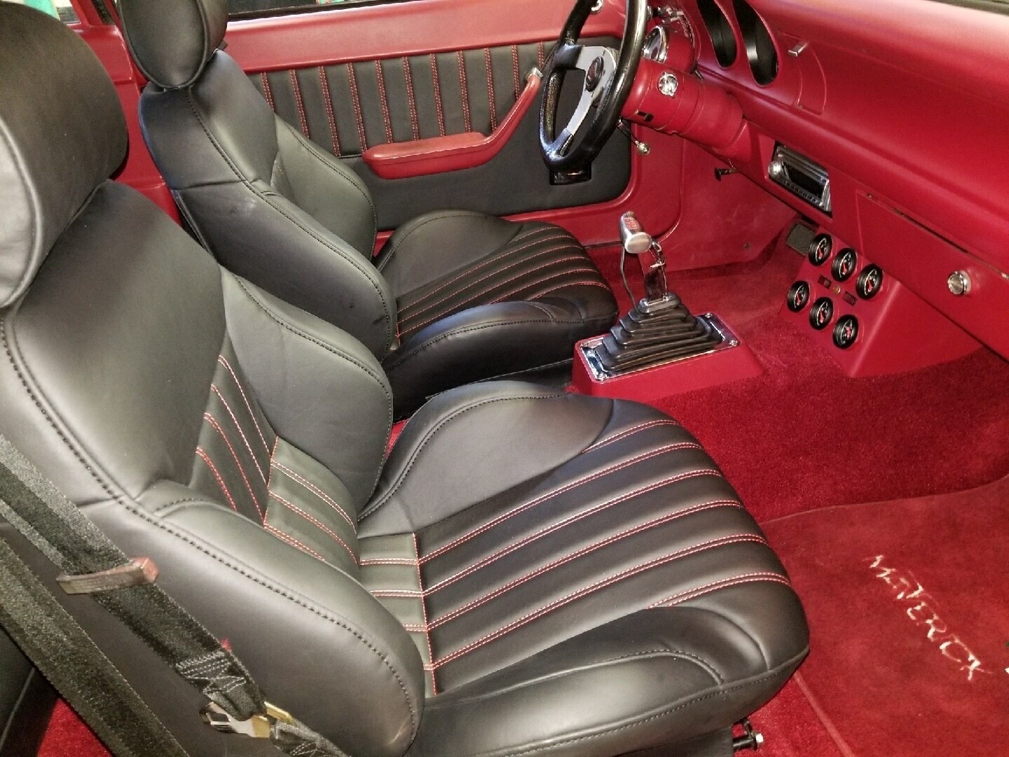 I have owned vehicle foe approximately 7 year and during that time it has been used for weekend drives and occasional care shows and cruise ins. Vehicle Details 1977 Ford Maverick 302 V8, Edlebrock Intake with Demon 4 Barrel, Full Length Headers with 2 1/2” Exhaust, Ford AOD (Overdrive)trans Ford 9” Differential 3.89 Ratio, Cruises at 2,200 RPM at Interstate Speeds. Car has 25 pounds oil pressure at idle and 50 pounds at 2,000 RPM when warmed up. Aluminum Radiator with Electric Fan with adjustable Thermostat Control Temperature and Manual Over Ride Switch, This car never overheats even in the heaviest traffic. Also has remote Oil Filter under hood with manual oil pressure gauge. Truck mounted battery with custom battery box and main power disconnect. Mustang II Front Suspension, Cal Track Traction Bars and Springs, Subframe Connectors. Ride is firm. Wilwood Master Cylinder and Front Disc Brakes, Ford Rear Disc Brakes, Nitto tires front and back, back oversized. Less then 3,000 miles on tires. Power Steering, Manual Disc Brakes. Very Nice Interior, looks like leather but is marine grade vinyl ultra leather. Reupholstered ProCar Rally Bucket Seats Front and Stock Maverick back seat reupholstered that matches pattern of buckets. Interior was installed approximately 5 years ago. All new carpet was installed at same time with with Maverick logo carpet floor mats front and rear. Headliner looks like new. Car has Tach, Oil Pressure, Oil Temp, Water Temp, Volt Meter, Trans Temp, Vacuum Gauge, which all work. All other original dash gauges and lights work properly. AM/FM/CD Stereo. The car was built approximately 13 years ago or so taken down to shell, no rust however does have some paint blistering but still looks great. Color is Ford. Matador Red. Mustang Taillights, New Mustang Gas Tank when built. AOD Trans has a slight howl when shifts to overdrive and has been that way since 2017 when I bought car. Transmission doesn’t overheat stays at approximately 150F. However I have a rebuilt AOD built for 600 HP that goes with the car and is included in price. Car comes with a complete (4) set of manuals and box of miscellaneous receipts and information. Two (2) sets of keys. Asking $ would be happy to provide addition details (251) 232-8500. Dennis Sent from my iPad |