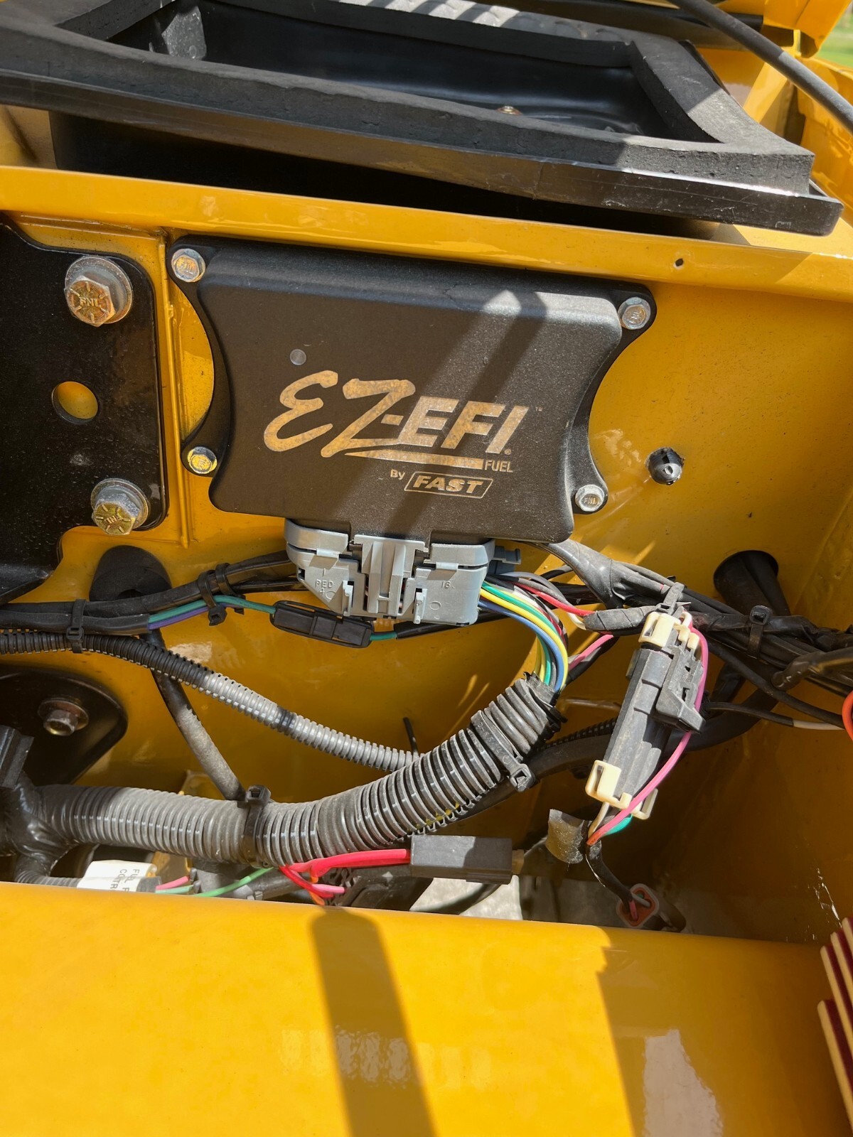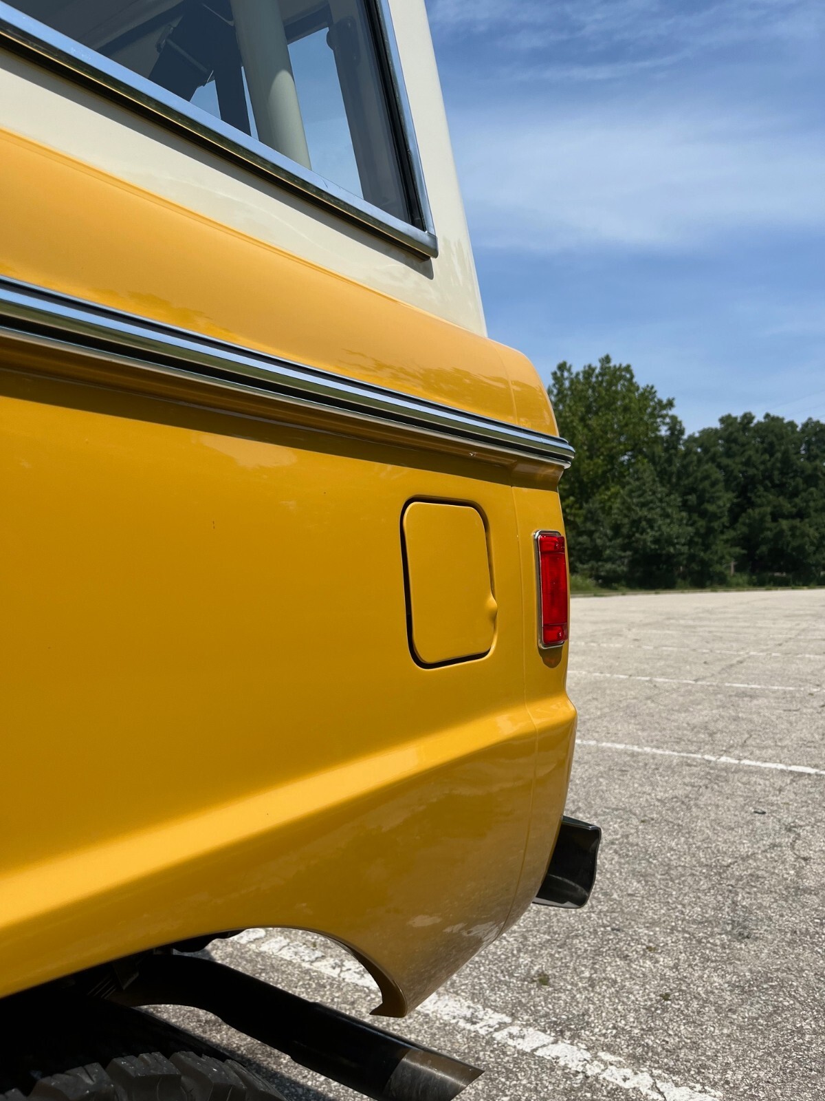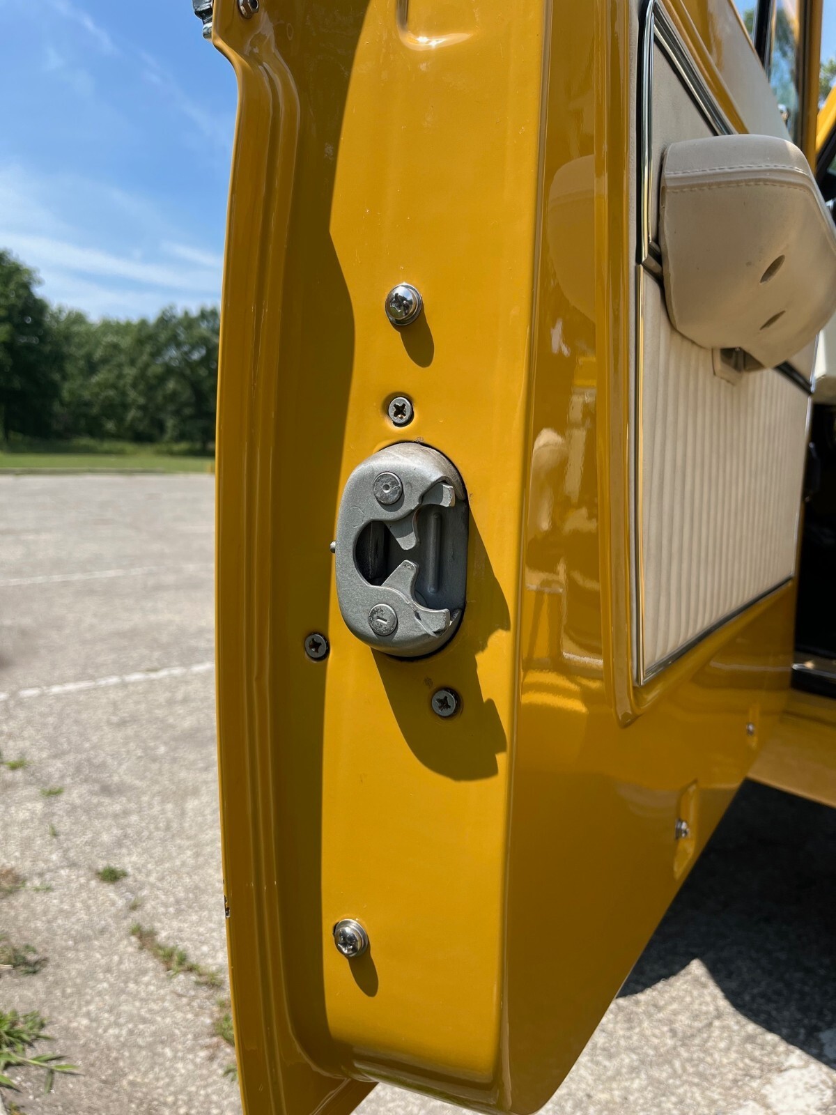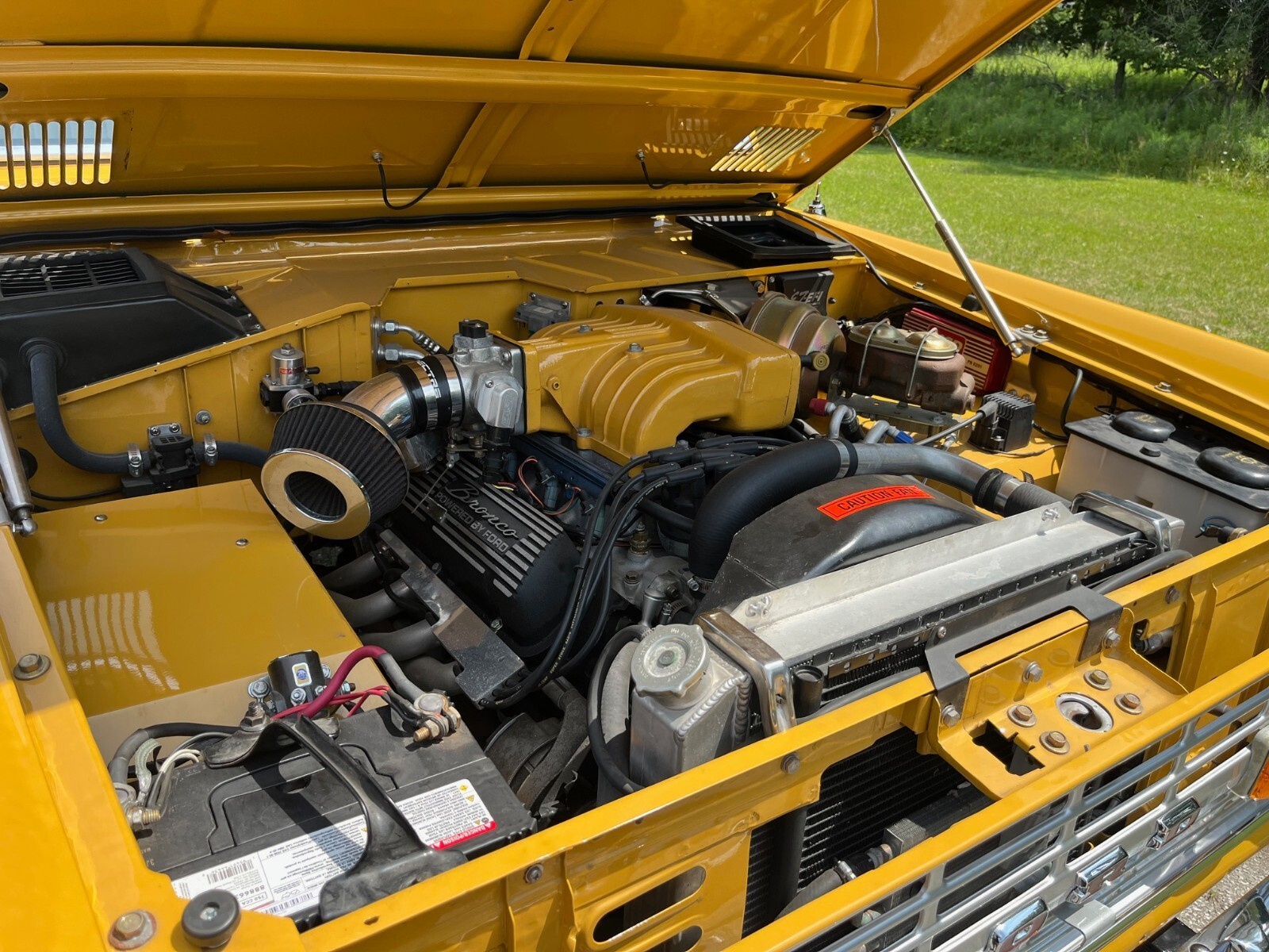 1969 Ford Bronco paintedfactory Ford Prairie Yellow. Grille insert was painted factoryFord Argent Silver.The hardtop was painted Ford Wimbledon White. Afull, frameoff, rotisserie restoration was completed in 2014 by Early Bronco specialist, Bronco Connection of Norfolk, Nebraska. Ford 15" wheels received original style hubcaps and ride on 31 x 10.50 x 15" BF Goodrich All-Terrain T/A radial tires. A full size spare is provided on the swing out tire carrier. The windshield and hardtop windows received factory stainless trim accents, the body has the factory Sport beltline trim, the bumpers are factory chrome with front bumperettes. The hardtop has never been removed since the restoration. Vehicle is powered by a rebuilt 302ci V8 crate engine. The 120 mph instrument cluster and odometer shows just over 3,500 miles since rebuild. Fast fuel injection system provides efficient fuel delivery. A single 24 gallon B.C. Broncosfuel tank replaces the original dual tanks. Enginecompartment upper intake is paint matched in Prairie Yellow. Engine is mated to a rebuilt Ford AOD automatic transmission and a twin-stick two-speed Dana 20 transfer case. The 2.5 lift suspension system includes high pressure shocks, long travel radius arms along with a 1" body lift. Truck has power steering, power front and rear disk brakes. The truck has the factory Dana 30 and 9" rear. An underdash Vintage Air A/C system keeps the interior cool. A Retrosound bluetooth receiver provides entertainment through a custom audio system (custom kick panel speakers up front and 6" x 9" speakers in the rear). A tilt steering column with 15" Mahogany steering wheel with billet Ford script horn cap wereadded. Engine and accessory wiring harnesses were completely replaced with modern units by American Autowire. The manually adjustable front bucket and bench seats were restored and recovered in factory Parchment covers. A full family roll cage keeps occupants safe with 4 point seat belts. Close-up photos of the bodywork, lenses, and trim are provided in the image gallery below. The seller did recently note a minor engine oil leak on bottomof the transmission bellhousing. The battery was just replaced this past month and the A/C was freshly charged. The Bronco's Original VIN is U15GLF93965. This vehicle is being sold by a private party with a clean Illinois title in the owner's name. A $2,000 deposit is due within 24 hours of auction close. Shipping and transport to be paid and arranged by buyer. Final payment required within 7 days of listing close through bank wire transfer. |