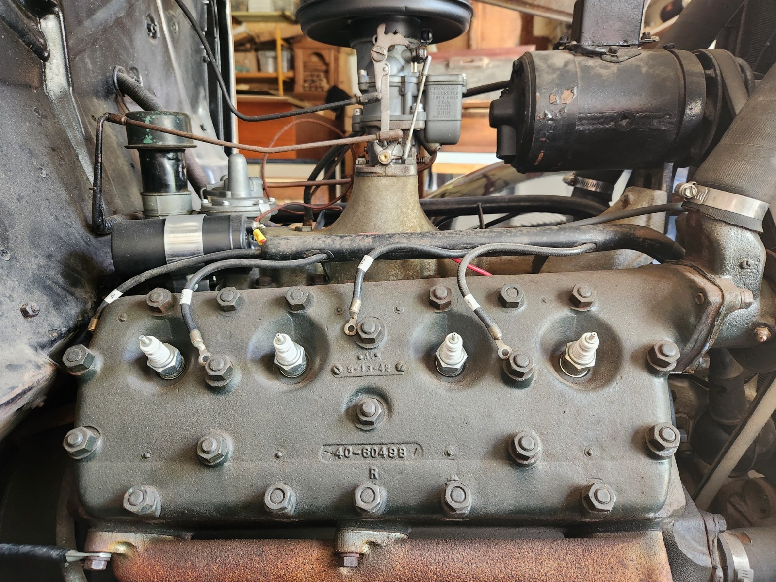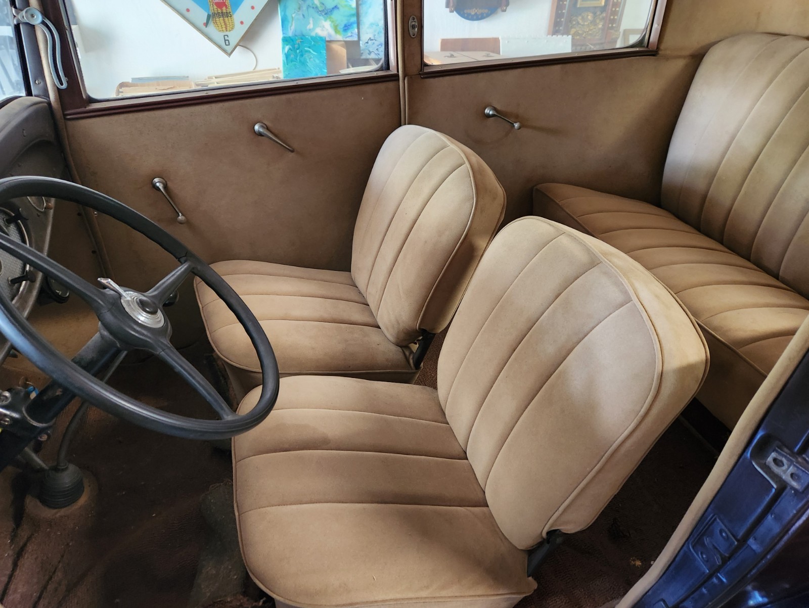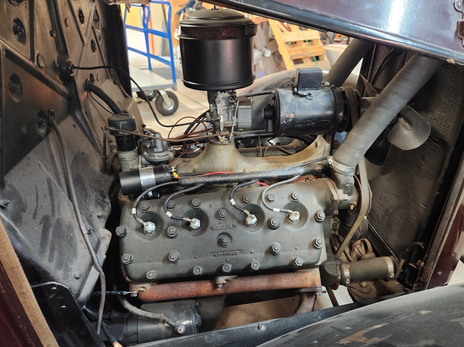 Warehouse find 1932 Ford tudor sedan. Body is above average. It was painted 40 years ago and always warehoused, so it is showing some age. It's a model 18 as stamped into the frame, factory V8, BUT the engine is a 1934 to 1936 model with a 2 bbl carb. I have a vin verification and Georgia conditional title. I can also supply an affidavit saying there are no liens on the car. I will also supply a bill of sale and if you need it, a current registration. There should be no problem transferring the title. Check with your DMV (with someone who knows what they're doing!). The car was in a collection and hasn't been registered for the 40 years the previous owner had it. It last ran about 6 years ago when it was rented by Disney for the newer Lady and the Tramp movie. I haven't seen the movie so I don't know if it made the cut. I pulled the plugs and put Marvel Mystery Oil in all cylinders as a precaution. As I said before, it was warehoused all the time so the motor should be fine. Gas tank was replaced about 8 years ago. It has 5 18 inch wheels. The tires hold air but are cracked from sitting. People in the old days used to sit on the front fenders and the fender beads would crack. A common fix was to weld round bar up under the bead and work the cracks. The front fenders have this "fix". There is a fine coat of bondo on the pass. fender and some cracks are showing as pictured. The cracks are from stress as there is no rust under the fenders. A real good body man could bring the front fenders back. So the front fenders need some work but the rest of the body and rear fenders are way above average with a few small dings here and there. This car has the 25 louver hood, which as you know is very de$ireable. The grille insert is awesome. The shell has a ding. The interior is mohair and in overall good shape. There is a small tear on the back of the drivers seat and a stain on the bottom of same seat. I don't believe the clock is original to the car but it is a Ford clock. I have new exterior door handles that go with the car. Glass is all good but the mechanisms will need to be fiddled with. If you want to see the car or send someone to check it out, that's a great idea. Let me know. The car is for pick up only in Savannah, Ga. High bidder to put $500 down within 24 hours of auction close with balance in cash or bank transfer. Full payment to be made within 7 days. Let me know if you have any questions or need any more pictures. This is an above average car for the age. If you don't want the hood, I'll keep it and take $1500 off the final price.