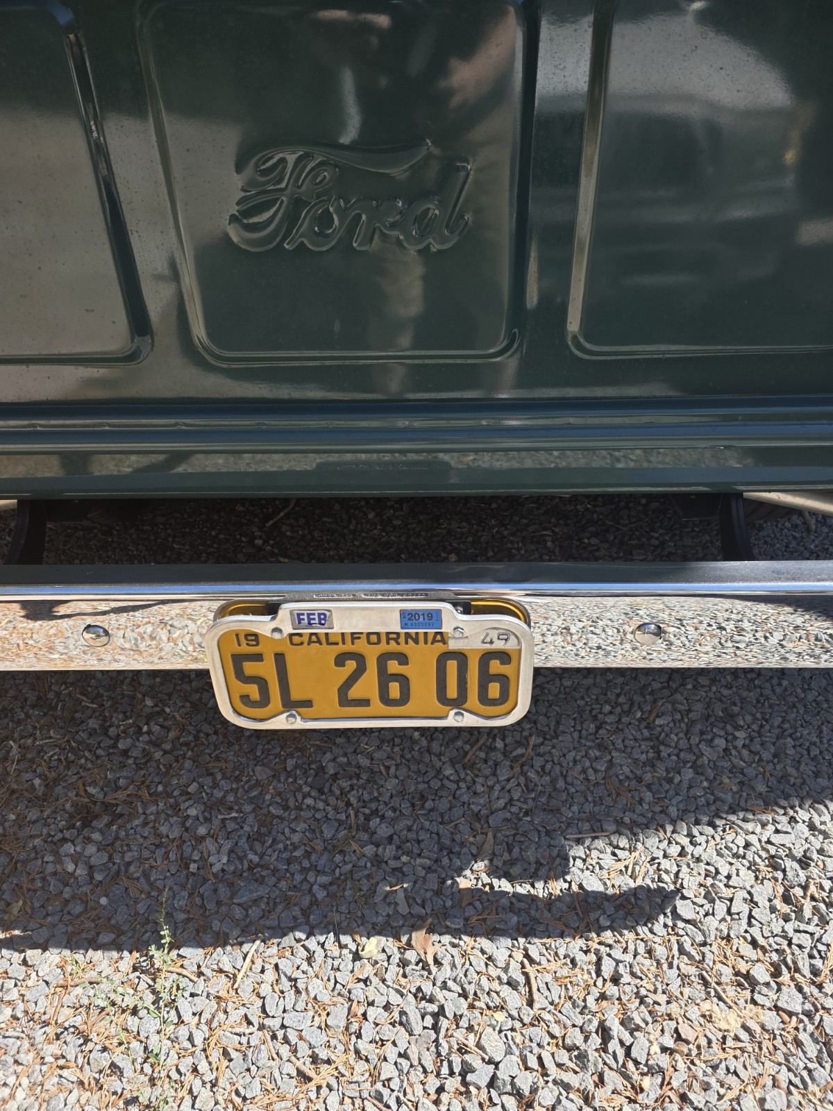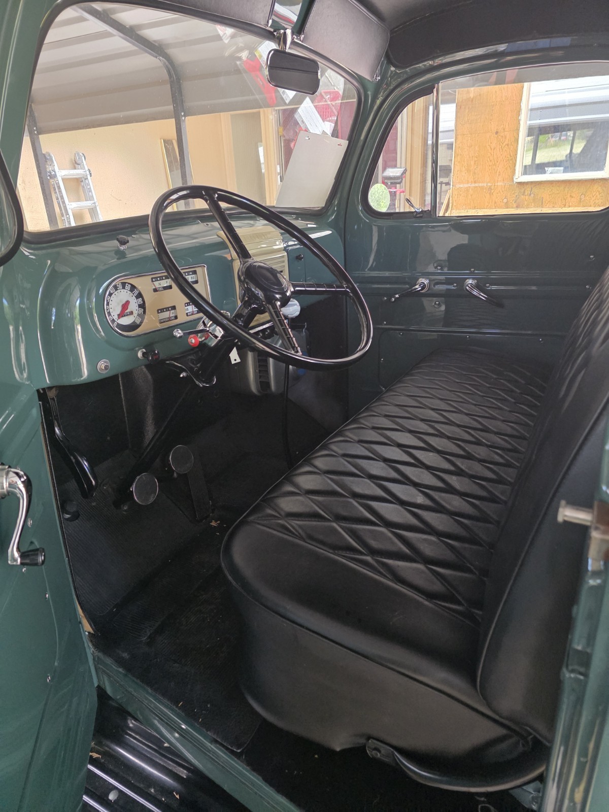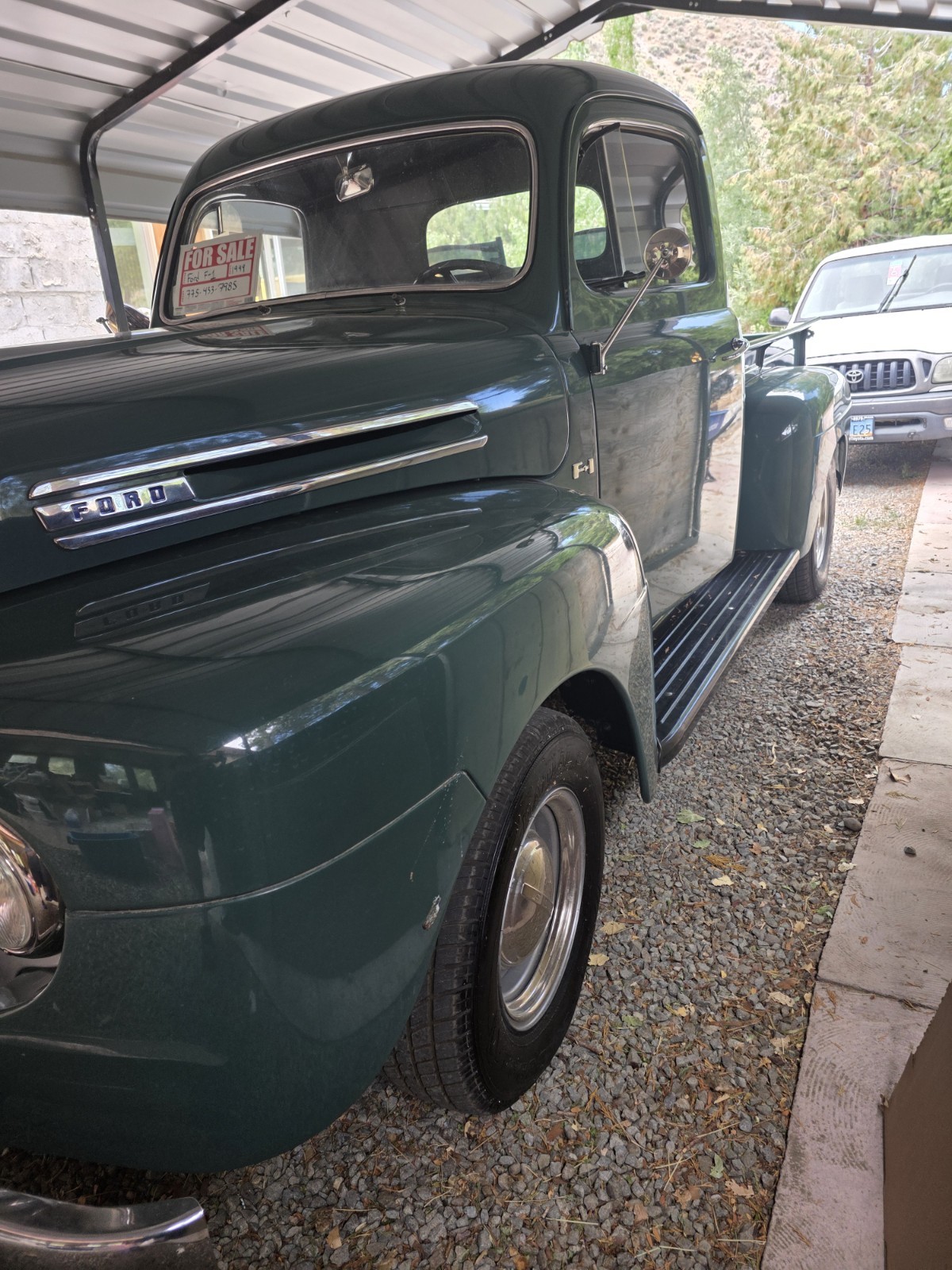 1949 Ford F-1 frame off restoration. Period correct restoration except for transmission (5sp T5), rear end (Explorer 8.8, limited slip with rear disc brakes), upgraded steering box, and bolt on front disc brake kit. Wheels are slightly wider than stock but with period correct dust covers. Original look but very drivable on today's roads and freeways. Engine: Original Ford Flathead V-8, rebuilt by H&H Flatheads, La Crescenta, California, https://handhflatheads.com/ The engine now puts out a little under 300hp from 95hp stock. As shown in the pictures, it now has triple Stromberg chrome carburetors. Old school flathead growl with deep modified flathead v8 sound. Transmission: Manual 5-speed (T5) replaced the stock 3 speed. Rear end: Ford Explorer 8.8. Limited slip with disc brakes. Front end also has bolt on disc brake kit making this old school hotrod truck road worthy with 4 wheel disc brakes. Steering box: Strong upgraded steering box with new steering rod and joint for ease of operation. Horn: Not installed. Comes with three (3) period correct horns. One set of trumpet horns from a Ford F3, a period correct snail horn popular in cars of that era, and also a frequently used in Ford Model A type horn. All three are unrestored. At the time, horns, and turn signals were dealer or aftermarket add on parts. The new period correct braided wiring harness is wired and ready to install whatever horn the new owner wants. Period correct '47 California "Black" license plates, that are titled with the Truck. New bear claw door hinges installed: The original door latches had a flaw where they would fly open. The new door latches need adjustment. Restored Gauge/Instrument Cluster from the original stock gauge/instrument cluster. All new internals. Odometer read 101 miles. Not original miles. Odometer was reset after restoration. Over $90,000 invested in this project. Medical condition has forced me to part with it. $50,000 FIRM.