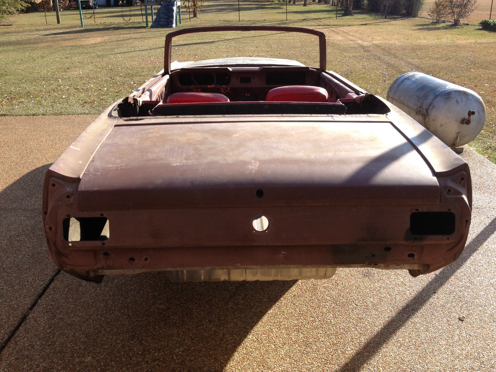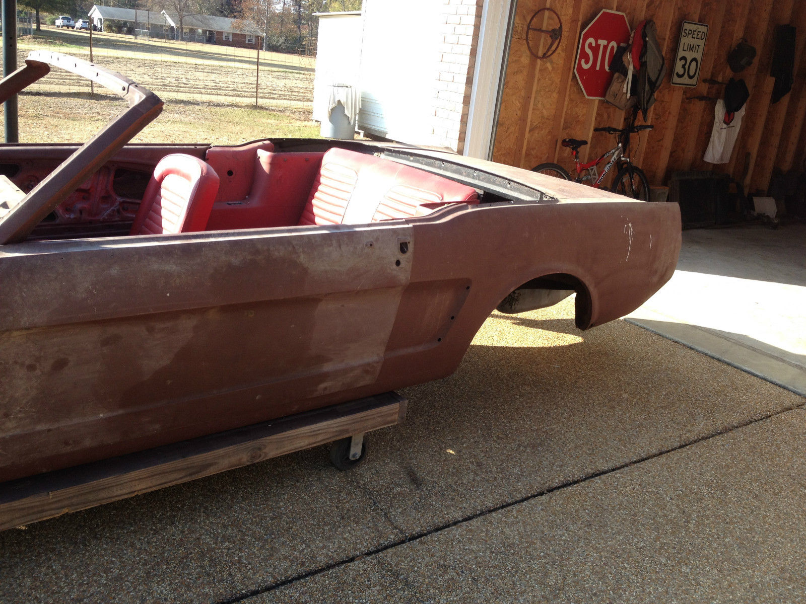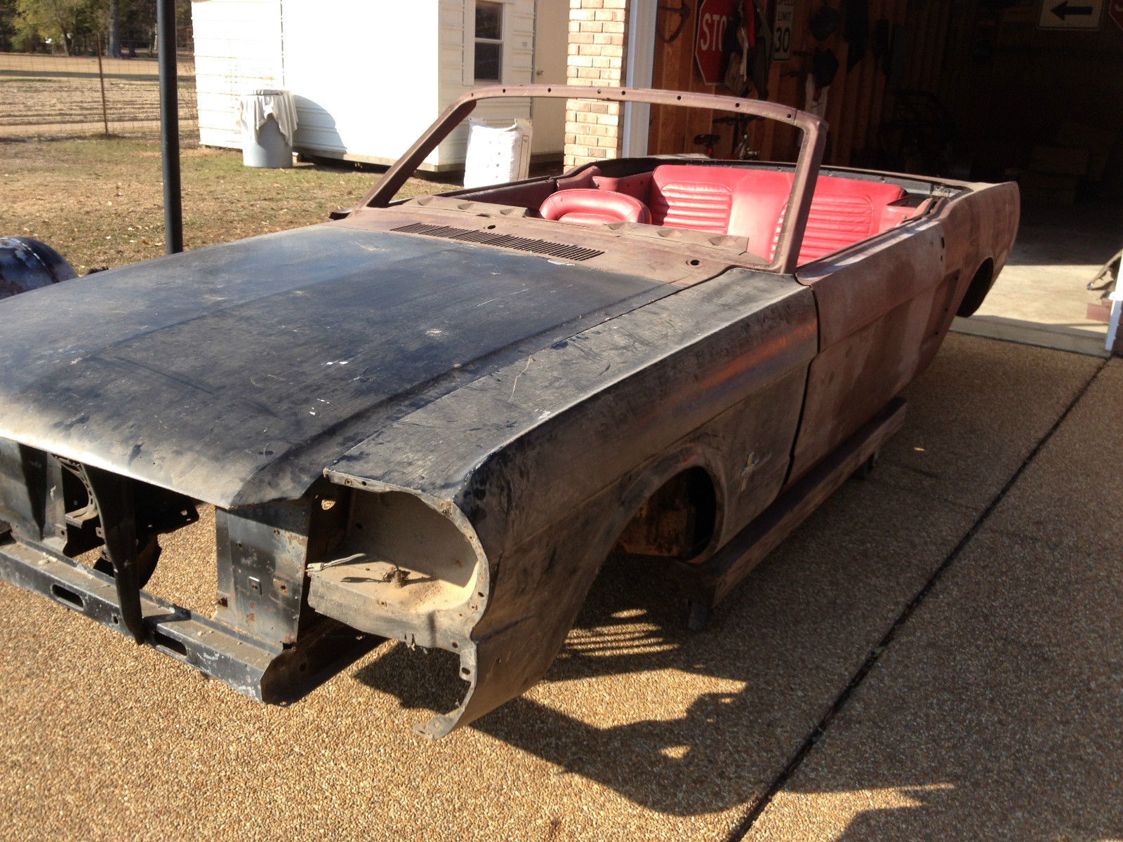 | This listing is for a 1964 1/2 Convertible Mustang. the first year Mustang's were made. This is a project car. It comes in pieces. Included is the hull which is in really good shape for a convertible. Only the floor pans need replacing. There are some other small holes behind the rear fender wells. one small spot above the trunk by the rear glass and a spot by the battery box. The trunk and frame rails are solid as a rock. Also included is doors. trunk. hood. driver's side fender (no passenger fender). window glass (no windshield). convertible top mechanism. seats. straight six 200 engine with 3 speed (the engine is not numbers matching). the rear axle. front spindles with drum brakes and several boxes of miscellaneous parts and pieces. It comes with the correct '64 1/2 hood which is a little different from '65 and '66. This has a clean title. There is no warranty and this is a pick-up only. This would be great project for a Mustang enthusiast since it was the first year Mustangs were made. I have too many projects and need to let something go. |