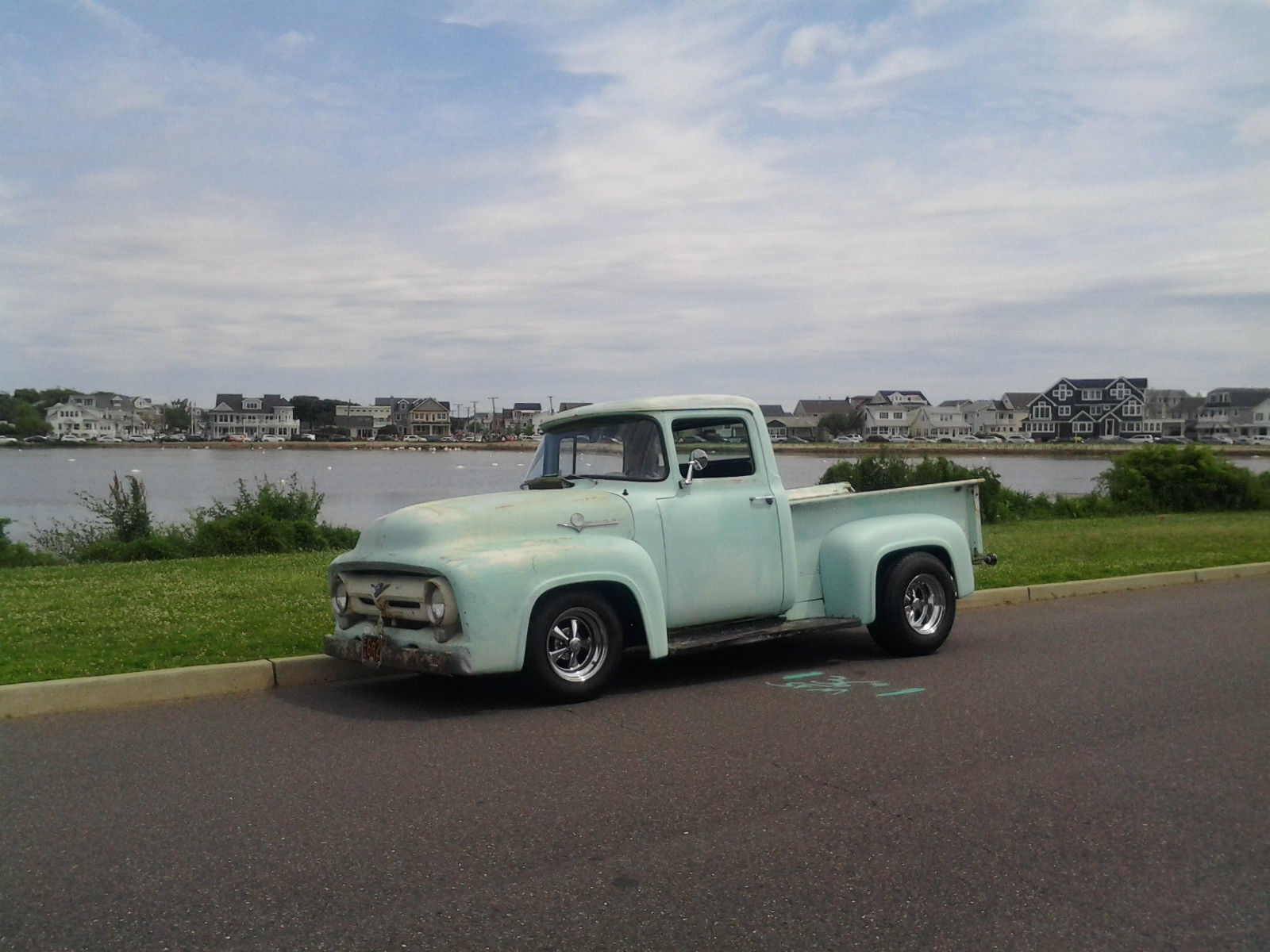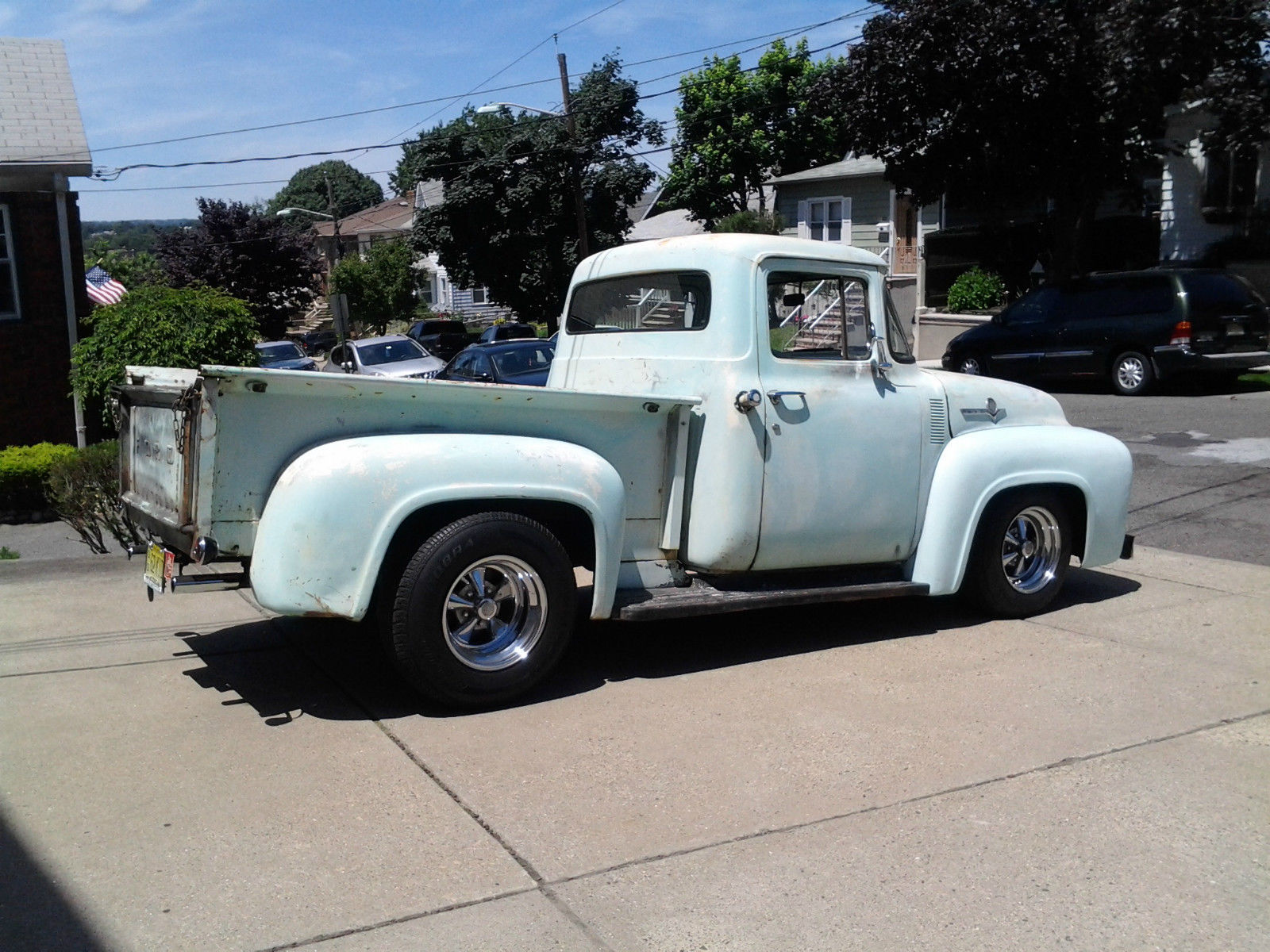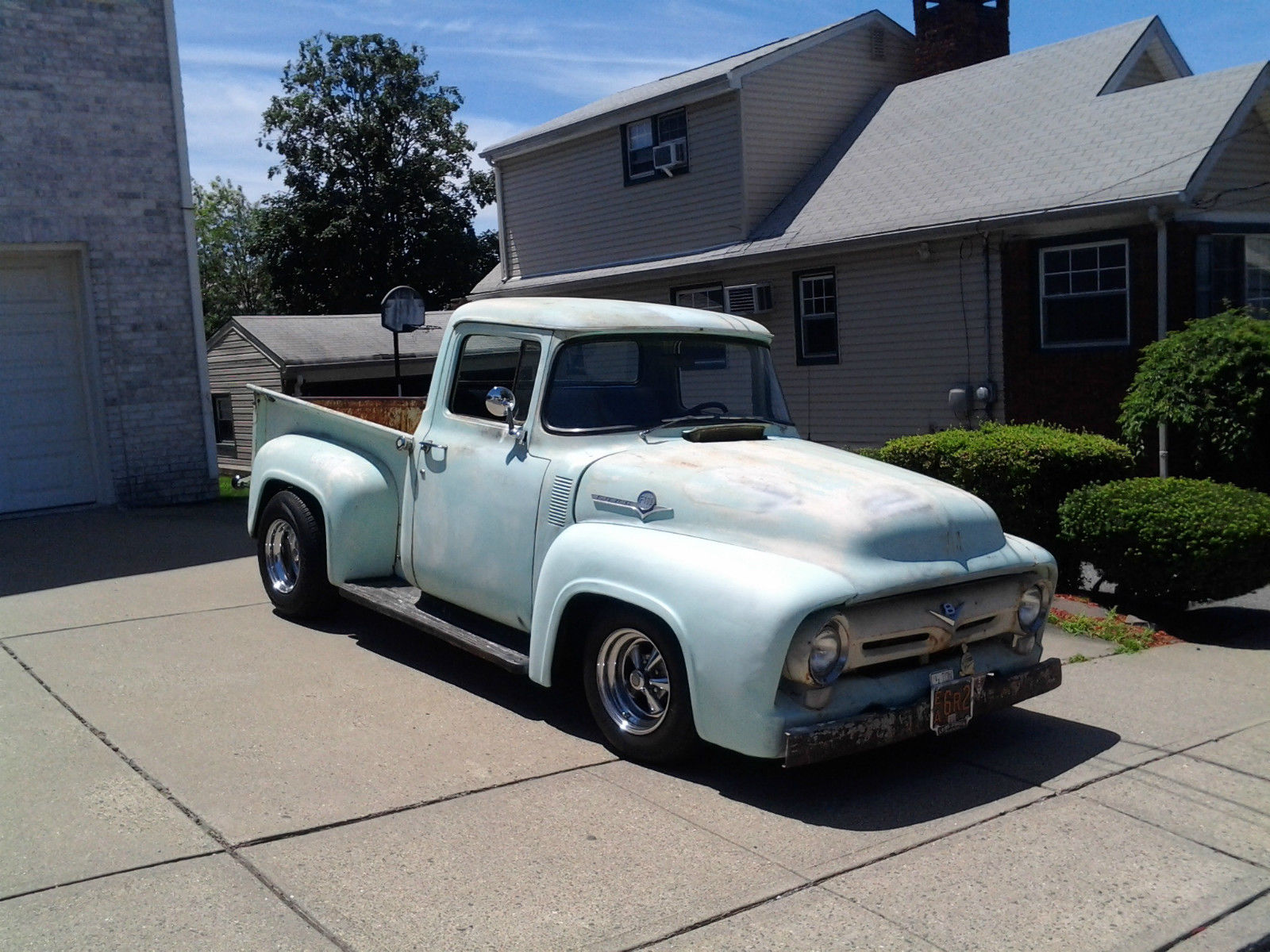 | 1956 F100 Pickup from CA 100% rust free. 350/350 with an automatic. 4 wheel power disc brakes and power steering. Early 70s Camaro subframe done right. Posi with 4 link rear suspension. Cadillac tilt/tele steering column. Black interior with new classic gauges. Everything works except wipers. New 1 piece windows in doors. new weatherstripping and 3 seatbelts. Runs and drives excellent around town and on the highway. This truck has real patina and is very fast. not for the faint of heart. The truck will smoke the tires for blocks without opening up the secondaries. Any questions please call me. Steve 551-580-2236 |