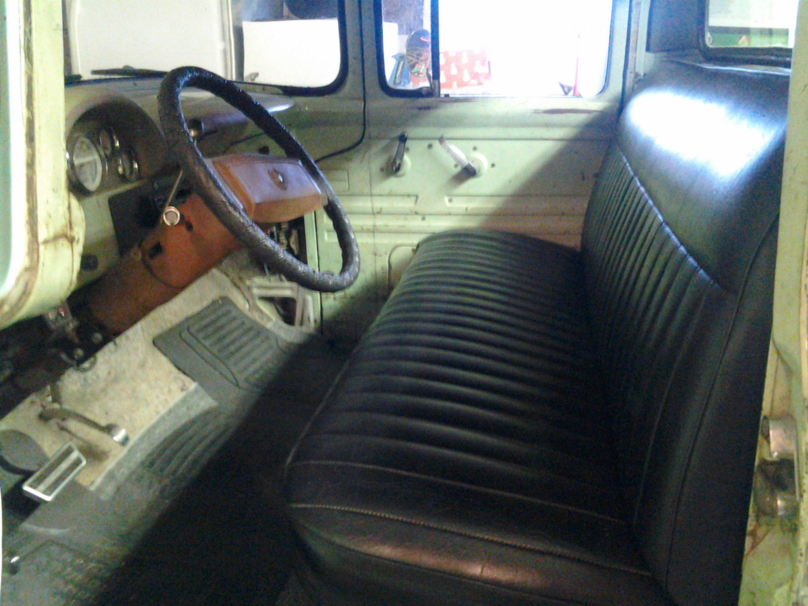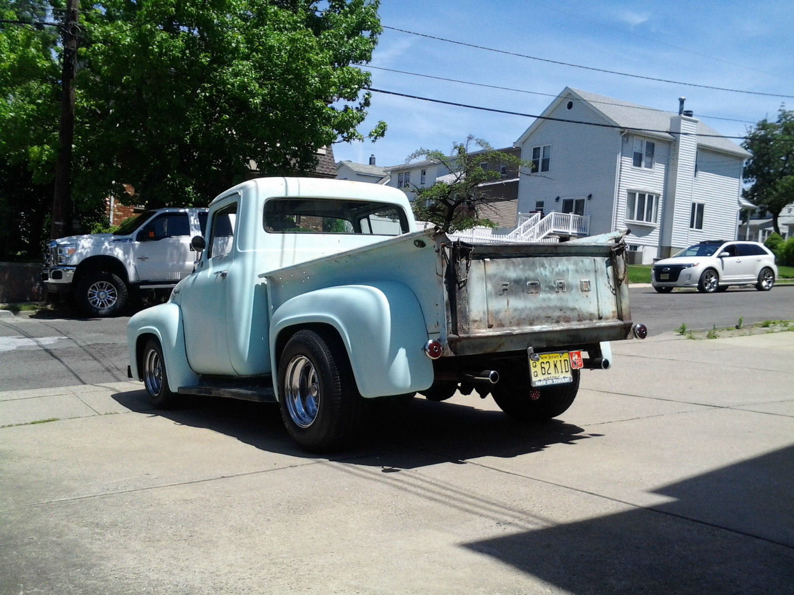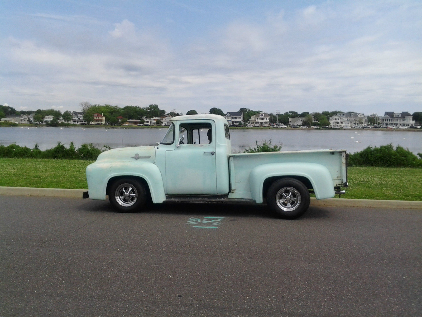 | 1956 F100 Pickup from CA 100% rust free. 350/350 with an automatic. 4 wheel power disc brakes and power steering. Early 70s Camaro subframe done right. Posi with 4 link rear suspension. Cadillac tilt/tele steering column. Black interior with new classic gauges. Everything works except wipers. New 1 piece windows in doors. new weatherstripping and 3 seatbelts. Runs and drives excellent around town and on the highway. This truck has real patina and is very fast. not for the faint of heart. The truck will smoke the tires for blocks without opening up the secondaries. Any questions please call me. Steve 551-580-2236 |