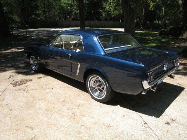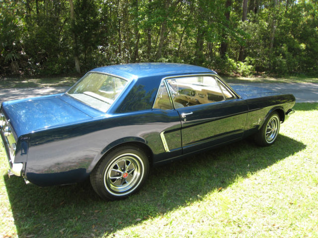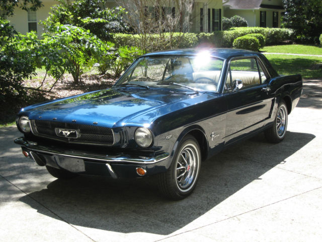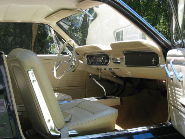 | For sale is one 1965 Ford Mustang coupe. The paint is a beautiful dark blue metallic and it has a gorgeous contrasting cream colored interior. It is an original engine 289 C code car upgraded with a four barrel carb connected to a 4 speed manual transmission with console. The current owner is the second owner of the car and did a full restoration in 1993 including a complete rebuild of the engine and transmission. It has only been driven 4. 00 miles since that time. Another restoration was done in 2015 to bring the car back to show quality condition. This includes complete new front suspension. front and rear springs. gas tank. shocks. fuel and brake lines. brake system. new tires. and complete new exhaust system. I have a complete A/C system which is not currently in the car. The car was detailed inside. outside and underneath. It is as clean underneath as it is on top. It is a stunning rust free car. Included is the original warranty plate. owners manual. sales contract. and a large folder of receipts. This Mustang runs and drives excellent. Overall it is far superior to your average 1965 Mustang. Selling to purchase a 2007-8 Shelby GT500. |