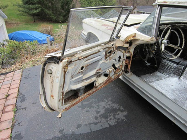 | 2 1959 T Birds for sale . both do not run & both need restored . White one good starting base. red one good parts & dash. Red one did run & lot drive 2 years ago. when parked. Buyer responsible for shipping. $500. 00 deposit due after auction ends. balance due on pickup. |